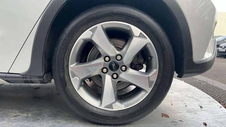 Bluetooth system, Digital clock, Easy fuel capless refuelling system, Eco mode, Ford pass connect, Ford SYNC 3 nav system with DAB radio, 8" colour touch screen, voice control, app link, Apple car play/Android auto and 4.2" TFT coloured cluster, Intelligent speed assist, Lane keeping aid with lane departure warning, PAS, Selectable drive modes with slippery and trail mode, Trip computer, Raised ride height (30mm higher than standard), Aux input, 'Quickclear' heated windscreen/heated washer jets, Active branded scuff plates, Active front and rear bumper with unique upper and lower grille, Auto headlamps (on/off), Black painted roof and mirror caps, Black roof rails, Body coloured bumpers, Body coloured door handles, Electrically operated and heated door mirrors with side indicators, Electrically operated front and rear windows with one touch opening and closing, Front variable intermittent wipers with electric wash, Halogen reflector headlamps, Heated rear window, LED daytime running lamp, LED front fog lamps with cornering function, Rear privacy glass, Tailgate wash/wipe, Twin exhaust tailpipes, Unique skid plates and side rocker mouldings, 3 spoke leather trimmed steering wheel with integrated audio controls, 60/40 split back and cushion rear seats with 2 height adjustable headrests, Centre console with armrest, Cloth upholstery with blue stitching, Driver's lumbar support, Front floor mats, Gear lever gaiter ring with blue stitching, Height adjustable front headrests, Isofix child seat preparation, Leather gear knob, Manual air conditioning, Reach + rake adjustable steering column, Rear centre headrest, ABS+Electronic Brake force Distribution, Auto hold function, Driver airbag, Electronic parking brake, Electronic stability control, Front and rear seatbelt reminder, Front inertia reel height adjustable seatbelts with pre-tensioners, Front passenger airbag, Front side airbags, Hill start assist, Passenger airbag deactivate switch, Post collision braking, Pre collision assist with autonomous emergency braking and pedestrian/cyclist detection, Side curtain airbags, Three rear inertia reel lap/diagonal seatbelts, Tyre pressure monitoring system, Keyless start with 'Ford Power' starter button, MyKey system, Remote central locking & engine immobiliser, Thatcham category 1 alarm, 17" 5 spoke foundry black machined painted finish alloy wheels, Mini steel spare wheel,