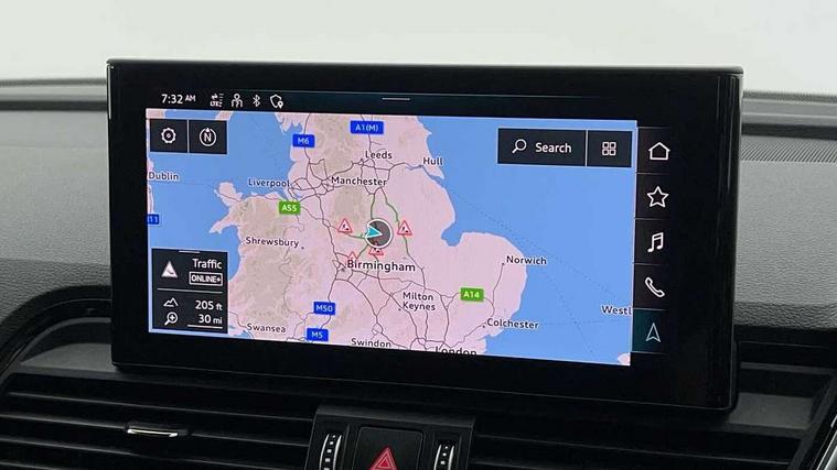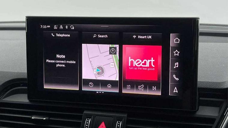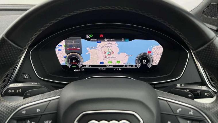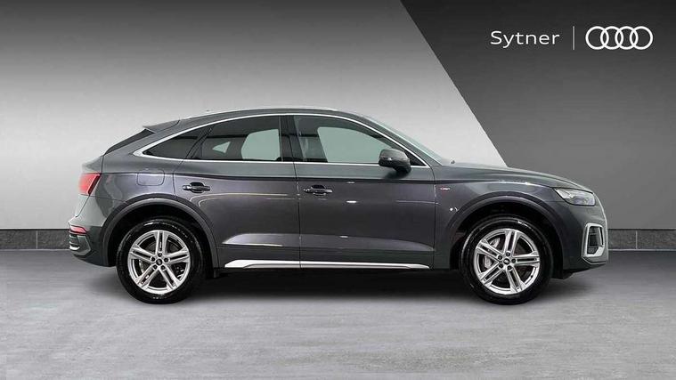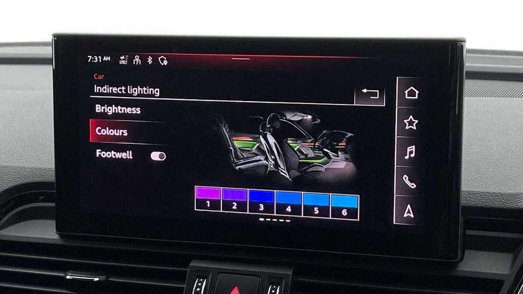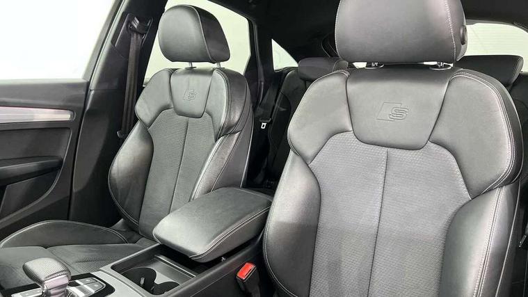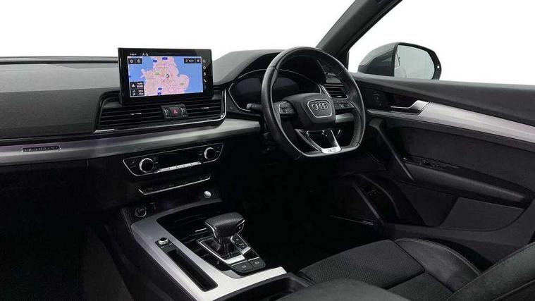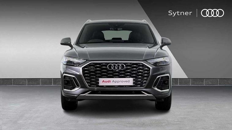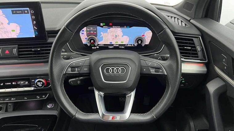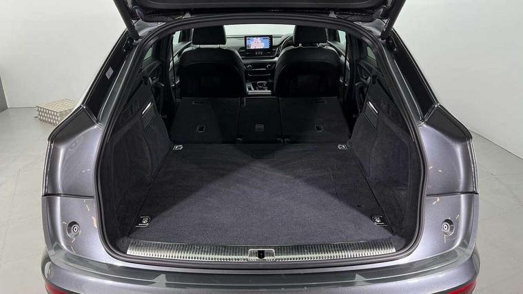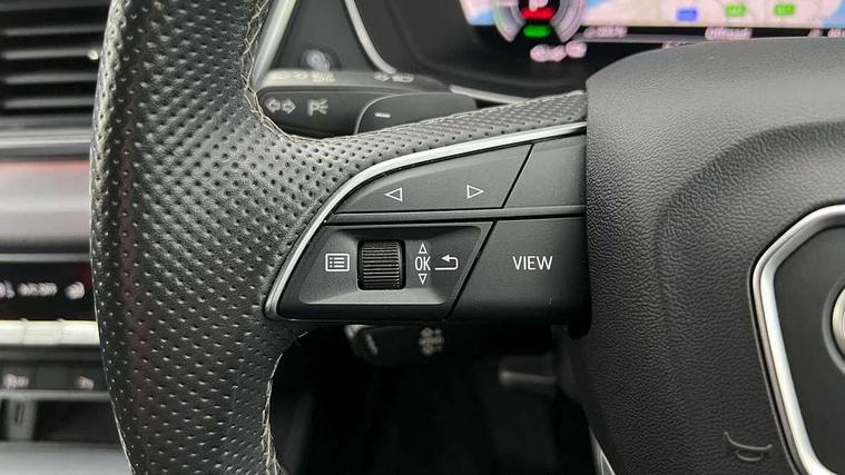Audi connect safety and service (e-call), Audi connect with Amazon Alexa Integration, Audi drive select, Audi virtual cockpit plus with 12.3" screen and three different layout designs, Audi wireless smartphone interface, Automatic start-stop system with coasting functionality and efficiency programme, Bluetooth interface, Electro - mechanical power assisted steering, MMI navigation plus with 10.1" touch screen, Power tailgate, Reversing camera, Service interval indicator, Voice control system with Audi hotword activation "Hey Audi", 3 pin 10 amp domestic charging cable, Dynamic suspension, Quattro on demand, Type 2 mode 3 22kW 32 amp charging cable, Type 2 socket for AC charging, DAB Digital radio, Acoustic windscreen, Aluminium roof rails, Audi matrix LED headlights with dynamic front and rear indicators, Auto dimming door mirrors, Auto dimming rear view mirror, Automatic headlights and windscreen wipers, Body colour bumpers, Body colour door mirrors, Body colour rear diffuser with matt aluminium silver surrounds, Body colour underbody protection, Chrome plated exhaust trims, Daytime running lights, Door sills in Selenite silver, Electric adjustable/heated/folding door mirrors, Front air inlet surrounds in aluminium, Front and rear electric windows, Front radiator grille in honeycomb design, Headlight washers, High level LED brake light, Lower bumpers painted in contrast Manhattan grey, Rear chrome trim strip below lights, Rear privacy glass and rear side windows, Rear side wing doors, Rear spoiler, Rear wiper, Roof bars, S Line badges on the front wings, S Line front and rear bumpers, S Line side skirts, 2 x USB charging port with aux input socket, 3 rear headrests, 40:20:40 split folding 3 rear bench seat in 2nd row with rear centre armrest, Black cloth headlining, Comfort front centre armrest, Contrast stitching on seats, steering wheel and gear lever gaiter, Deluxe 3 zone electronic climate control, Front/rear floor mats, Gear lever in black leather, Heated front seats, Height adjustable front head restraints, Height/reach adjustable steering column, Illuminated door sill trims with S logo, ISOFIX child seat mounting and top tether, Manual seat adjustment with 4-way electric lumbar support, Rear seat bench plus, Single front passenger seat, Sunvisors with vanity mirrors, Tool kit, Trunk roller cover, High gloss pack - Q5, LED interior light pack - Q5, 3 point seatbelts on all seats, 6 airbags - Driver, front passenger, curtain and side airbags, Electrically operated child locks on rear doors, Electromechanical parking brake, Electronic stabilisation control including ABS, ASR and EDL, Front passenger airbag deactivation, Hill descent control, Hill hold assist, Multi collision brake assist, Pop-up bonnet for pedestrian protection, Pre sense city, Seat belt force limiter, Seatbelt monitoring, Tyre pressure warning, Warning triangle and first aid kit, Anti theft alarm, Anti-theft wheel bolts, Keyless Go access/ignition system, Remote central locking, Matt brushed aluminium inlays, Tyre repair kit,