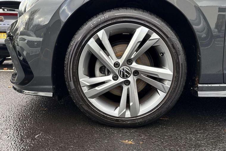 Adaptive cruise control (ACC) with speed limiter and front assist (reacting to vehicles pedestrians and cyclists), Car2X communication, Digital cockpit pro - 10.25" high resolution TFT dash display screen with customizable menus and information, Driver alert system, Dynamic road sign display, eCall - Emergency call service for SOS calls to emergency response, Lane assist, Mobile phone interface with wireless inductive charging function, Multifunction camera for distance control, PAS, Speedo, rev counter, electronic odometer, trip, service interval display, exterior temperature and fuel gauge, Start/Stop function, USB-C ports in the front and rear centre console with increased charging performance, Warning buzzer and light for front seatbelts unfastened, Wireless app connect, Petrol Particulate Filter, XDS electronic differential lock for improved traction and handling, Premium USB cable in choice of either Apple or Android smartphone compatibility, Auto dimming rear view mirror, Automatic headlamp activation with Coming home and Leaving home feature, Automatic headlights, Body colour door handles, Body colour door mirrors with integrated indicators, Body colour rear roof spoiler, Electrically heated and adjustable door mirrors with memory feature, Front and rear electric windows, Heat insulating glass windscreen, Heated rear windscreen, High level 3rd brake light, Highway light, LED License plate illumination, R Line body coloured bumpers, Rain sensor, Rear fog light on one side and reversing lights on both sides, Rear lights incorporating LED technology, Rear side wing doors, Rear tinted glass 65% light absorbing from B pillar backwards, Rear windscreen washer and wiper with interval delay, Welcome light, 12V socket in front centre console, 12V socket in luggage compartment, 3 rear head restraints, 3 seat bench in 2nd row, Ambient lighting - Customisable 30 colour ambient lighting, Ambient lighting, exterior illuminated styling elements at the sides, Black roof lining, Brushed stainless steel pedals, Chrome plated surround to electric mirror button, window switch and air vent surrounds, Drivers and front passengers sun visors with vanity mirrors, Front + rear carpet mats, Front centre armrest with storage compartment, Front cupholders x 2, Front passenger seat, Front reading lights x 2 incorporating LED technology, Front seat lumbar support adjuster, Front sports seats, Glovebox, Height adjustable front seats, Height and reach adjustable steering wheel, Isofix child seat preparation for 2 rear child seats and front passenger seat, Luggage compartment lighting, R Line door and side trim panel, R Line front seats integrated head restraints, R-Line leather wrapped multi function sports heated steering wheel, Removable luggage compartment cover, Sardegna cloth upholstery with front and outer rear seats Art Velour inner sides of bolsters, Split folding backrest with centre armrest and unsplit rear seat bench, Titanium black instrument panel, Woven fabric storage compartments in front and rear doors, 3 point height adj front seatbelts + pretensioners, 3 rear three point seatbelts, ABS, Child locks on rear doors, Driver and front passenger airbag with front passenger airbag deactivation, Drivers and front passengers safety optimised head restraints, Electronic parking brake with auto hold, ESC (Electronic Stability Control), Extended pedestrian protection measures, Front and rear passengers curtain airbag system including front side airbags, Front centre airbag, Front disc brakes, Front side airbags with curtain airbags, Rear disc brakes, Two tone horn, Tyre pressure monitoring system, Alarm with interior protection and deactivation via infotainment system, Electronic engine immobiliser, Carbon grey decorative inserts in dash and front door trim panels, High gloss black centre console,