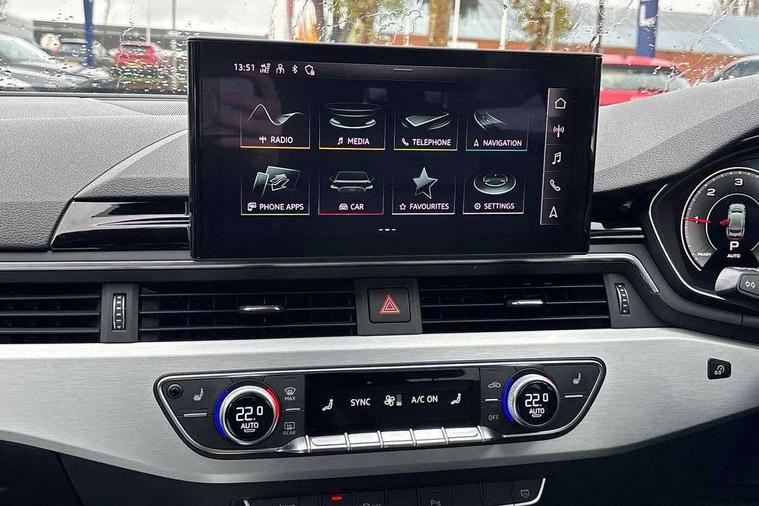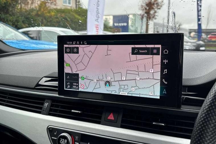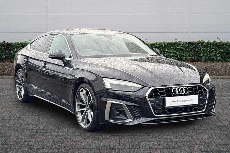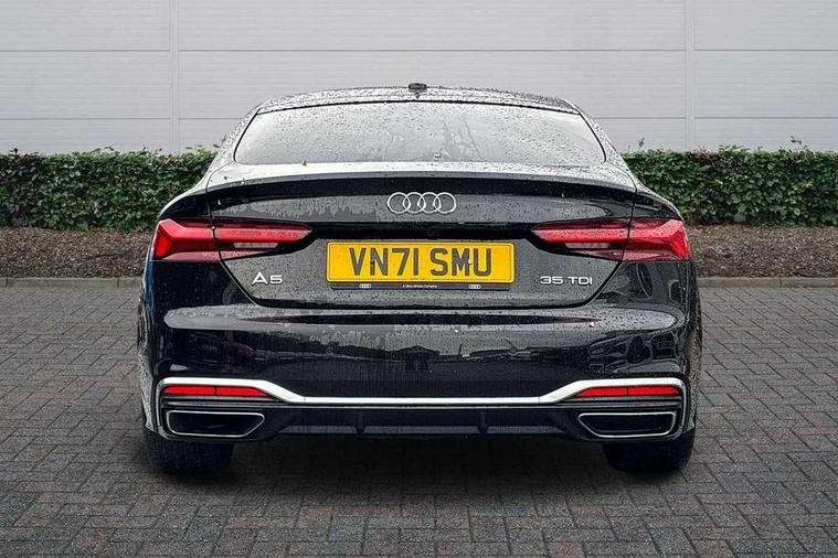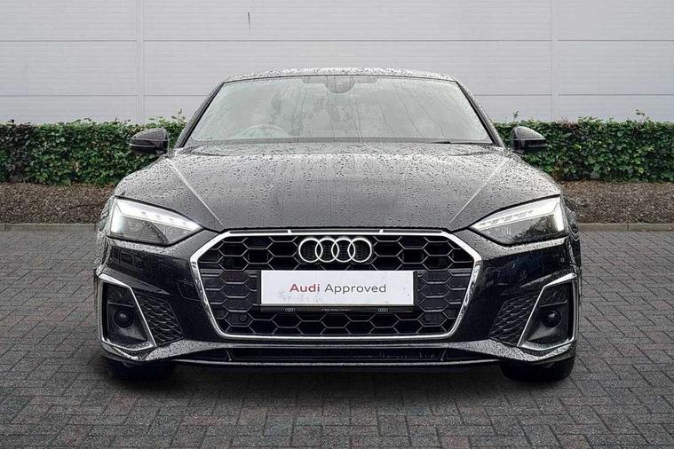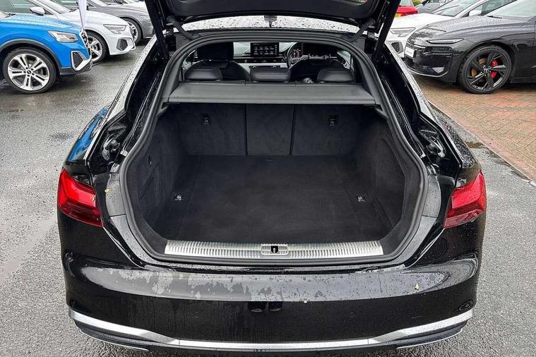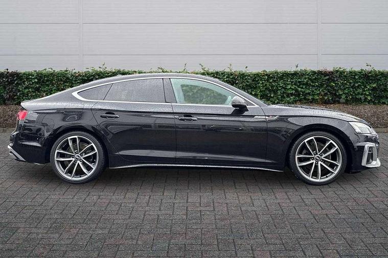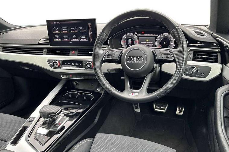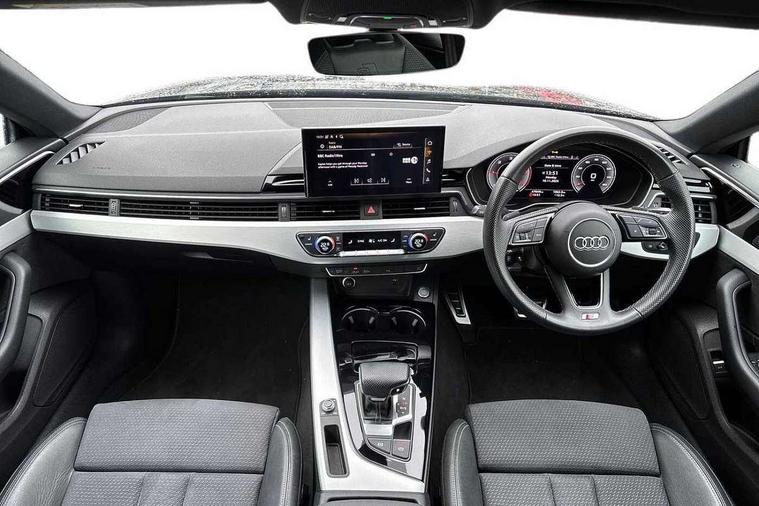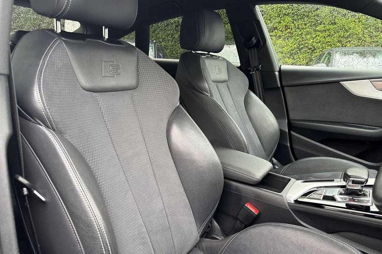 Audi connect safety and service (e-call), Audi connect with Amazon Alexa Integration, Audi drive select (Auto, Comfort, Dynamic, Efficiency and Individual), Audi parking system plus with front and rear sensors, Audi smartphone interface, Audi virtual cockpit - 12.3" full colour digital instrument cluster, vehicle/engine speed, Radio/media information+Driver assistance systems, Automatic start-stop system with coasting functionality and efficiency programme, Bluetooth interface, Electro-mechanical power steering, Email, calendar and text messages displayed via MMI, MMI nav+ with MMI touch - 10.1" high resolution MMI display, touch sensitive, 3D map, route/country info, dynamic route guide, personal route assist, Power operated tailgate, Rear view camera, Service interval indicator, Voice control system, Diesel particulate filter, Sports suspension lowered by 23mm, 8 passive loudspeakers, CD player, DAB digital radio reception, Two additional USB ports for rear passenger in rear centre console, Two SDXC card slots, Audi matrix LED headlights with LED rear lights + dynamic front and rear indicators, Auto dimming rear view mirror, Body colour bumpers, Body colour door handles, Body colour front spoiler lip, Body colour side sill trim, Body coloured door mirrors, Electric adjustable heated door mirrors, Electric folding door mirrors, Electric front windows, Front fog lights, Honeycomb structure radiator grille in grained matt black, LED daytime running lights, Matt aluminium silver tailpipe trim, Privacy glass, Rain and light sensors, S line badges on front wings, S line front and rear bumpers with side skirts, S Line rear diffuser in matt titanium black with trim strip in matt aluminium silver, Side air inlets in grained matt black with matt aluminium silver inlay, Windscreen with acoustic glazing, 4 way electric lumbar support for driver and front passenger, 40/20/40 split folding 3 seater rear bench seat, Adjustable steering column, Black cloth headlining, Black perforated leather gearknob, Contrast stitching on seats, steering wheel and gear lever gaiter, Deluxe 3 zone electronic climate control, Front centre armrest, Front head restraints, Front/rear floor mats, Heated front seats, Illuminated door sill trim with S logo, ISOFIX child seat mounting and top tether, Luggage compartment mat, Manual seat adjustment, Rear headrests, Stainless steel pedals, Sunvisors with vanity mirrors, Tool kit, LED interior light pack - A5/RS5, 3x3 point rear seatbelts, 6 airbags - Driver, front passenger, curtain and side airbags, Electromechanical parking brake, Electronic Stabilisation Control (ESC) including ABS, ASR and EDL, Front passenger airbag deactivation, Height adjustable front seatbelts, Hill hold assist, Multi collision brake assist, Pop-up bonnet for pedestrian protection, Pre sense city, Seatbelt monitoring, Tyre pressure warning, Variable restraint system, Warning triangle and first aid kit, Anti theft alarm system, Anti theft wheel bolts, Immobiliser, Keyless Go, Remote central locking, Matt brushed aluminium inlays, Tyre repair kit,