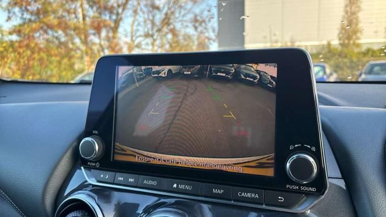 7" full colour TFT screen combimeter, 8" infotainment colour display with touch screen, Apple CarPlay and Google Android auto, Drive modes select (Eco, normal and sport), Emergency and breakdown call, Front parking sensor, Idle start/stop system, Intelligent lane intervention, Lane departure warning system, Nissan connect nav with TomTom traffic, Nissan connect services and Wifi connection, Outside temperature sensor, Power Steering, Rear parking sensor, Traffic sign recognition, Trip computer, Gasoline particulate filter, 6 speakers, Bluetooth system, USB, Aux-in and 12V socket, DAB Digital radio, Rear console USB port, Auto dimming interior rear view mirror, Automatic hazard signal with emergency stop signal, Body colour bumpers, Body colour door handles, Electrically adjustable door mirrors with integrated indicators, Follow me home headlights, Front and rear electric window with one touch driver and passenger window, Heated and auto folding door mirrors, High beam assist, LED daytime running lights, LED front fog lights, LED headlamps, LED rear fog lamp, LED rear lamps, Rain sensor windscreen wipers, Rear privacy glass, Rear spoiler, Rear wiper, Three blink turn signal, 3 height adjustable rear headrests, 60/40 split folding rear seat, Automatic climate control, Card holder on driver sunvisor, Cloth upholstery, Door ambient lighting, Driver and passenger sliding and reclining seats, Driver seat back pocket, Driver side rear coat hanger, Driver/passenger sunvisors and illuminated vanity mirrors, Front and rear cabin lights, Front armrest, Front door pockets with bottle holders, Front head restraints, Front/rear passenger grab handles, Gear console ambient circle lighting, Grey synthetic leather kneepad, Height adjustable driver's seat, Internal chrome door handles, Leather gearshift knob, Leather steering wheel, Luggage board, Luggage space lighting, Monoform sporty seats, Multifunction steering wheel, Passenger seat back pocket, Rear door bottle holders, Telescopic steering wheel adjustment, Two cupholders in front centre console, Two rear isofix child seat anchorage points with top tether, Voice recognition switch on steering wheel, Welcome light and console tray ambient lighting, ABS with EBD and brake assist, Active ride control, Active Trace Control, Driver and passenger airbags, Driver and passenger side airbags, Electric handbrake with auto hold function, Electronic Stability Programme (ESP), Front and rear curtain airbags, Height adjustable seatbelts, Hill start assist, Intelligent emergency braking with pedestrian and cyclist recognition, Seatbelt reminder for driver/front passenger and rear seats, Single tone horn, Three 3 point rear seatbelts, Traction control, Tyre pressure monitoring system, VDC Dynamic Vehicle Control, Ventilated rear brake discs, Alarm, Immobiliser, Intelligent Key with push button starter, Remote central locking,