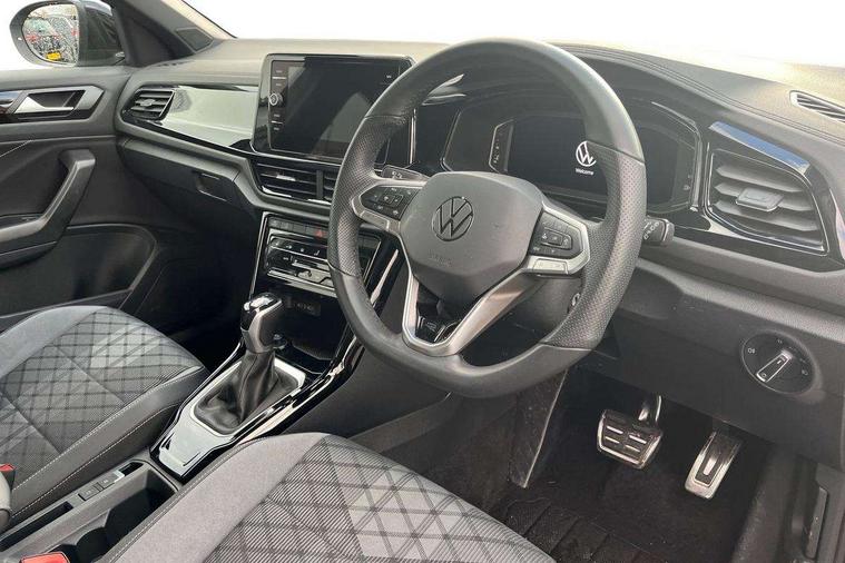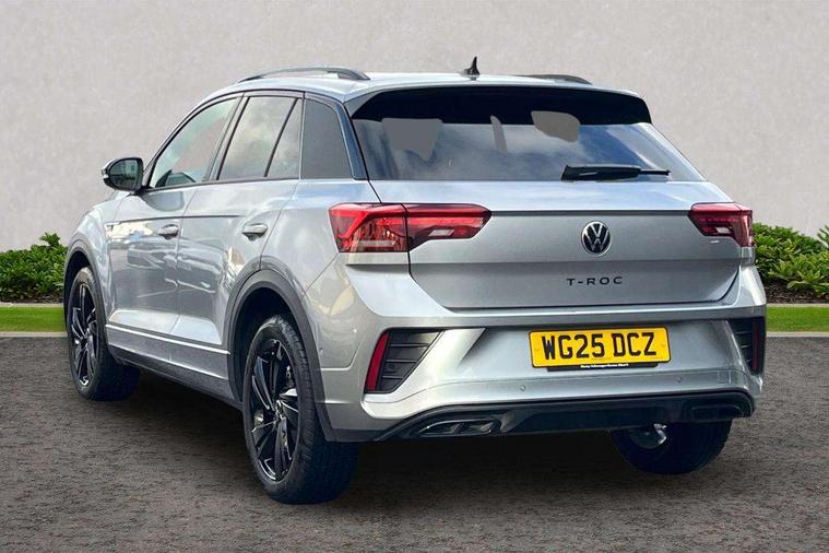 10.25" Digital cockpit pro, Advanced driver attention and drowsiness monitor, Emergency call service, Lane keeping system Lane Assist, Mobile phone interface, Modified key software - reduce switch off time for key status change to Long no motion, Online services, Park assist including front and rear parking sensors, Service interval indicator, Tailgate/trunk lid release from outside, Think blue trainer driver tips and journey analysis, Warning sound and light for front seatbelts unfastened, Wireless app connect, Battery regeneration during braking, Start/stop function with battery regeneration, DAB Digital radio, Diversity antenna for FM reception, Front and rear 6 speakers, Music playback - MP3, WMA and AAC files, Premium USB cable in choice of either Apple or Android smartphone compatibility, SD card slot, Simultaneous pairing of 2 compatible mobile devices, Title and cover art display, We Connect and We Connect Plus functionality, Auto dimming interior rear view mirror, Automatic hazard lights activation under emergency braking, Automatic headlight control with LED separate daytime running lights with coming/leaving home function, Body coloured exterior mirror housings and door handles, Electrically adjustable and heated door mirrors, Extended roof spoiler, Exterior mirrors aspherical on driver side, convex on front passenger side, External USB type C socket and charging sockets, Front windscreen wiper with intermittent wipe and 4 position delay, Heated rear window, LED 3rd brake light, LED rear combination lamps, LED rear number plate lights, Power windows with comfort operation and circuit breaker, Privacy glass for rear side windows and rear window, R-Line design body coloured bumpers, Rain sensor, Rear exhaust tailpipe, Rear fog light on one side and reversing lights on both sides, Rear side wing doors, Rear wash/wipe with intermittent wipe setting, Remote electrically foldable door mirrors, puddle lights and reverse activated passenger's door mirror, 12V power socket in centre console, 3 rear head restraints, 3 seat bench in 2nd row, 4 load lashing points in luggage compartment, Air care climatronic air conditoning system with active combination filter and 2-zone temperature control, Black roof lining, Chrome plated decorative trims, Chrome plated radiator grille inserts, air vent surrounds and light switch surrounds, Door and side trim panel with leatherette insert, Front + rear carpet mats, Front centre armrest, Front cupholders x 2, Front footwell illumination, Front reading light, Front scuff plates with R Line logo, Front seat back storage pockets, Glove compartment door with light, Instrument lighting, white adjustable panel illumination, Interior ambient lighting and surround lighting, Interior light delay, Isofix child seat preparation, Leather gearshift handle, Load-through provision with cup holder when folded down ('Unsplit rear seat bench, split folding backrest, with centre armrest), Luggage compartment lighting, Single front passenger seat, Stainless steel pedals, Storage compartment in left and right luggage area, Storage compartment in rear doors, Storage compartments in driver and front passenger doors, Sunvisors with illuminated vanity mirrors, Variable boot floor, height adjustable and removable, Driver assistance pack without proactive passenger protection - T-Roc, 3 point height adj front seatbelts + pretensioners, 3 point seatbelts in outer rear with ECE label, ABS, Child locks on rear doors, City emergency braking and pedestrian monitoring, Driver and front passenger airbag with front passenger airbag deactivation, Driver and front passenger safety-optimised head restraints, Drivers seatbelt reminder, Electronic parking brake, Electronic Stability Control (ESC) inc EDL (Electronic Differential Lock) and ASR (Traction Control), Front and rear passengers curtain airbag system including front side airbags, Hill start assist, Predictive pedestrian protection, Rear disc brakes, Two tone horn, Tyre pressure loss indicator, Volkswagen roadside assistance, Piano black decorative inserts in dashboard and front door trim panels, Trims for alloy wheels,