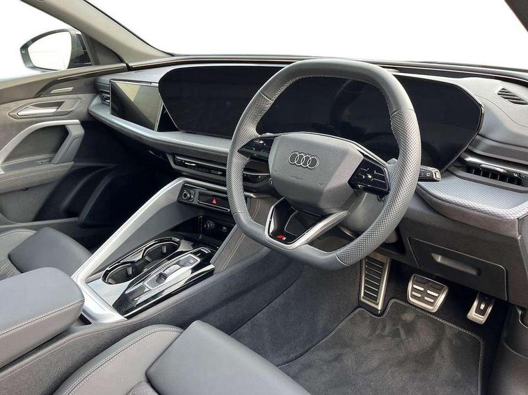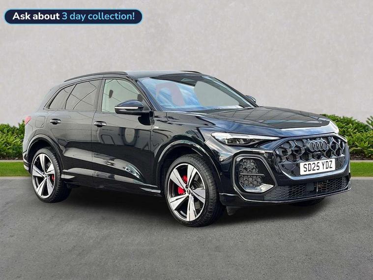 Adaptive cruise control, Advanced driver attention alert, Audi application store, Audi connect emergency call and service, Audi drive select, Audi smartphone interface, Audi virtual cockpit plus with 11.9" OLED colour display, Camera based traffic sign recognition, Fatigue monitor, Front cross traffic intersection assist, Lane change assistant with exit warning system, rear cross traffic alert and rear turn assist, Lane departure warning with emergency assist, MMI 10.9" front passenger touch display, MMI navigation plus with high resolution 14.5" OLED touchscreen colour display, Park assist plus, Parking system plus with 360 display, PAS, Reversing camera, Swerve assist and turn assist, Top view camera, Traffic sign based speed limiter, 2 USB-C ports in both the front and rear, Audi sound system impressive sound with 10 loudspeakers including centre speaker and subwoofer, 6-channel amplifier with a total output of 180 watts, DAB Digital radio, Smartphone compartment with wireless charging, Active digital light signatures - Six additional combinations of active daytime running light signature, Auto dimming rear view mirror, Black roof rails, Coming/leaving home lighting function, Electrically adjustable heated and folding + automatically dimming exterior mirrors, Exhaust tailpipes in dark chrome, Front and rear electric windows, Front door sill trims with aluminium inlays, illuminated with 'S' logo, Full body paint finish, Headlight cleaning system, Heated rear window, High beam assist, High gloss window surrounds, Inlay and front air inlets in matt anthracite chrome, LED rear lights pro incl. dynamic rear indicators and illuminated light strip with animated coming and leaving home function, Logo projection light in exterior mirrors, Matrix LED headlights, Memory function for door mirrors, Privacy glass, Projection light for rear window, Radiator grille in phantom black, Rear and side windows with heat insulating glass, Rear honeycombe grille in matt black with inlay in matt anthracite chrome, Rear side wing doors, Rear wash/wipe, S Line badge on the front wings, Towbar preparation, Windscreen with acoustic glazing, 3 rear head restraints, 3 seat bench in 2nd row, 3 spoke leather steering wheel with multi-function buttons with touch control, flattened on top and bottom, with S badging and contrast stitching, 4 way electric lumbar support for driver and front passenger, 40:20:40 split folding rear seat bench with centre armrest and cup holders, Comfort centre armrest, Deluxe 3 zone electronic climate control, Dinamica microfiber/leather upholstery, Electrically adjustable front seats with memory function for driver's side, Front and rear floor mats, Front sport seats with integrated head reastrains, Headlining in black cloth, Heated front seats, i-Size child seat mounting on the front passenger side and outer rear seats, i-Size and top tether on the outer rear seats, Interior trim in aluminium look, Luggage compartment lid, electrically opening and closing, Manual steering column adjustment, Single front passenger seat, Softwrap in Dinamica, Stainless steel pedals and footrest, Steering wheel grips in perforated leather and shift paddles, Ambient lighting package plus - Q5, Black styling package plus - Q5, Storage and luggage compartment pack - Q5, 3x3 point rear seatbelts, ABS, Acoustic vehicle alerting system, Convenience key with safelock, Driver and front passenger airbag with passenger airbag deactivation, Electric child safety locks, First aid kit with warning triangle and high visibility vests, Front emergency brake assist, Front side airbags with head airbag system and front interaction airbag, Hill hold assist, Occupant detection in rear seat area, Proactive passenger protection system for front, sides and rear, Red brake calipers, Side airbags in front and rear with head airbag system and front interaction airbag, Tyre pressure loss indicator, Anti theft alarm, Anti-theft wheel bolts, Remote control key with SAFELOCK and keyless go, Accent surfaces and control buttons in gloss black, Black dashboard with contrast stitching, Steel grey seat stitching, Upper and lower interior elements in dinamica microfiber, Tyre repair kit,