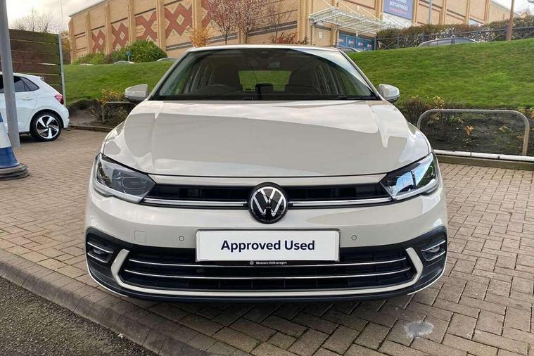 Adaptive cruise control without follow-to-stop and speed limiter, Bluetooth mobile phone interface, Digital Cockpit Pro with 10.25" Display, Driver alert system, Dynamic road sign display, Emergency call service, Power assisted speed sensitive steering, Preparation for We connect and We connect plus, Speedo and rev counter, electronic odometer, trip, service interval display and fuel gauge, Standard rear axle, Travel Assist - Lane keeping system and traffic jam assist, Travel assist including emergency assist, Trip computer, Warning signal and warning light for front and rear seatbelts not fastened, Washer fluid level indicator, Wireless app connect, Front wheel drive, Rear shock absorpion, Start-stop system with battery regeneration (recuperation - energy recovery during braking), DAB Digital radio, Diversity antenna for FM reception, Front and rear 6 speakers, Automatic dimming interior rear view mirror, Automatic headlights, Body colour door handles, Body coloured bumpers and radiator grille with chrome trims, Electric front windows, Heat insulating darkened glass in side and rear windows, Heat insulating glass windscreen, LED separate daytime running lights with coming/leaving home function, Power folding adjustable/heated exterior mirrors and front passenger exterior mirror lowering function, Rain sensor, Rear electric windows, Rear fog light, Rear side wing doors, Rear windscreen washer and wiper with interval delay, Third brake light, 12V power socket in centre console, 2 USB-C ports in the front, 2 USB-C charging sockets on the center console in the rear, 3 rear head restraints, 60/40 split folding rear seat and rear seat bench not split, Air care climatronic air conditoning system with active combination filter and 2-zone temperature control, Ambient lighting, Ceramique headliner, Chrome plated radiator grille inserts, air vent surrounds and light switch surrounds, Door and side trim panel, Driver and front passenger seat height adjustment, Driver/passenger sunvisors with illuminated vanity mirrors, Front + rear carpet mats, Front centre armrest, Front footwell illumination, Front seat backrest storage pockets, Front sports comfort seats, Handbrake lever handle in leather, Isofix child seat preparation easy-fit (for two outer rear seats, and front passenger seat) compatible with I-size, Leather trimmed gear knob, LED interior light with switch off delay and dimmer, 2 reading lights front and rear, Luggage compartment cover, Luggage compartment floor, Luggage compartment lighting, Lumbar adjustment for front seats, Multifunction steering wheel, Single front passenger seat, Standard pedal cluster, IQ LED matrix headlights pack - Polo, Light and vision pack - Polo, 3 point height adj front seatbelts + pretensioners, 3x3 point rear seatbelts, ABS, Driver and front passenger airbag with front passenger airbag deactivation, Drivers and front passengers safety optimised head restraints, ESC (Electronic stability control) + EDL (Electronic Differntial lock) and ASR (Traction control), Extended and predictive pedestrian/ cyclist protection, Front curtain and side airbags with center airbag, Front disc brakes, Hill hold control, Manual child lock in rear doors, Rear drum brakes, Single tone horn, Tyre pressure loss indicator, Alarm with interior protection, Anti-theft alarm system with interior monitoring, backup horn, and towing protection, Anti-theft wheel bolts, Electronic engine immobiliser, Chrome applications on rotary light, mirror adjustment, window regulator switches, outlet with frame in black, Deep iron gloss decorative inserts in dash and front door panels, Low rolling resistance tyres,