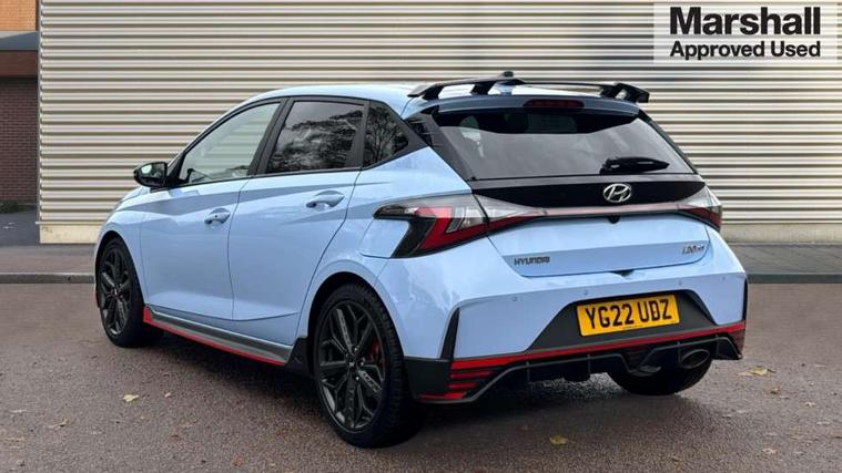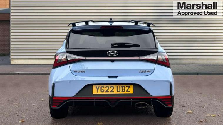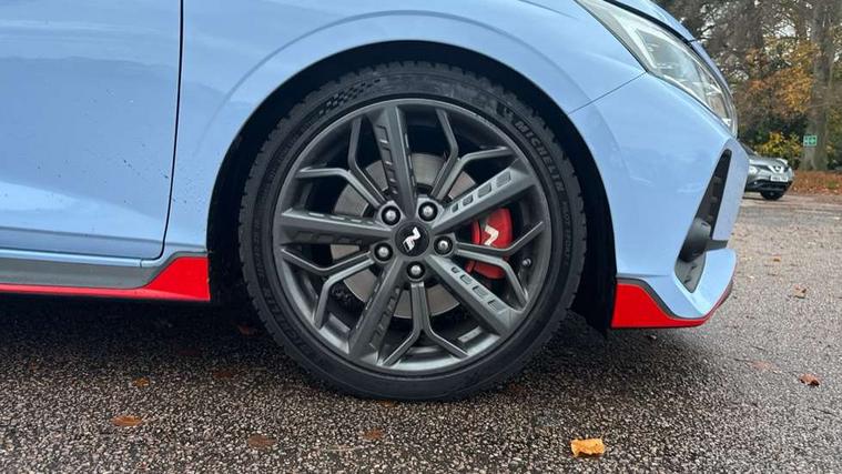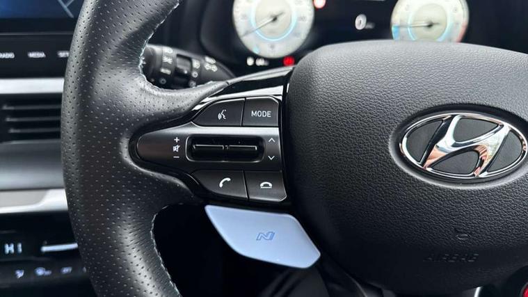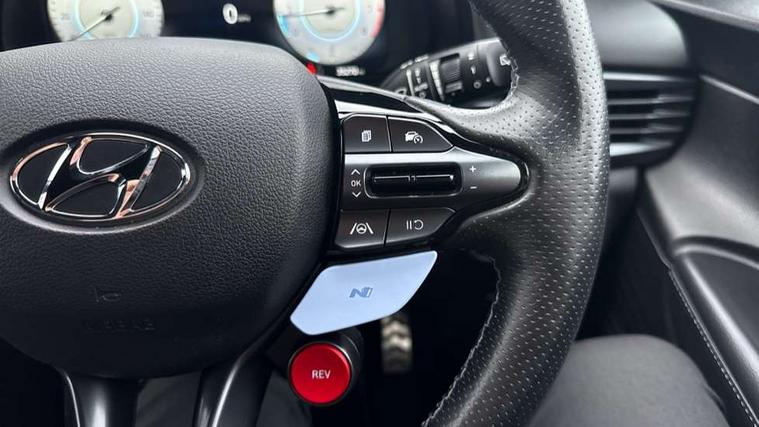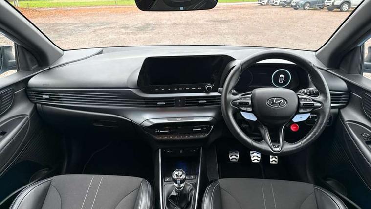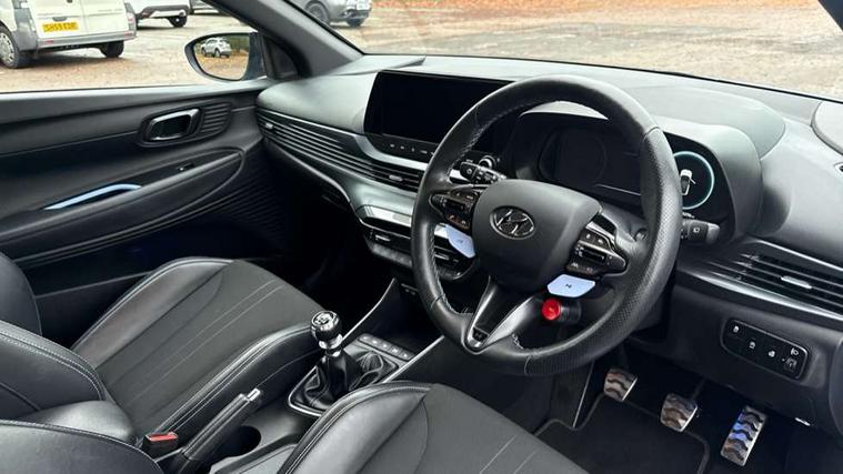 10.25" digital supervision cluster, 10.25" touchscreen centre console display satellite navigation including traffic messaging channel, map care and live services, Apple car play/Android Auto, Bluetooth connectivity with voice recognition, Cruise control + speed limiter, Drive mode selector, Driver alert system, eCall emergency call system, Electric power steering, Emergency stop signalling system, Forward collision assist with pedestrian monitoring and cycle detection, Haptic steering, Intelligent speed limit warning, ISG - automatic start/stop, Lane departure warning system, Lane keep assist, N corner carving differential - mechanical limited slip differential, N custom mode, N grin control system, N Rev matching system, Rear parking sensor, Rear view camera with dynamic limitation singnalling, Trip computer, Wireless charging pad, Launch control, Vehicle Stability Control (VSC), Auxiliary input socket, DAB Digital radio, Steering wheel mounted audio/telephone controls, USB connection, Adjustable intermittent front windscreen wipers with aero wiper blade, Auto dimming rear view mirror, Automatic defog system for front windscreen, Automatic headlights with dusk sensor, Automatic windscreen wipers with rain sensor, Black radiator grille with integrated N logo, Black window surrounds, Body colour exterior door handles, Drivers one touch up/down with anti-trap, Electric adjustable heated door mirrors, Electric folding door mirrors, Electric front windows, Electric rear windows, Front fog lights, Gloss black door mirrors with integrated indicators, High beam assist, LED rear combination lights, MFR - LED headlights, Privacy glass - Rear windows and tailgate, Rear apron with integrated diffuser and red accents, Rear fog lights with N exclusive triangular lamp, Rear roof spoiler with integrated LED brake light, Rear side wing doors, Rear Windscreen Wiper - Intermittent Function, Shark fin antenna, Side skirts with red accents, Signature LED daytime running lights integrated into headlamp, Static Cornering lights, Tinted windows, 12v power outlet - front, 3 seat bench in 2nd row, 60/40 split folding rear seat, Adjustable head restraints, Aluminium sports pedals, Black roof liner, Blue interior mood lighting, Climate control, Driver/passenger sunvisors and illuminated vanity mirrors, Front armrest with storage box, Front map reading lights, Heated front seats, Heated steering wheel, Height adjustable driver's seat, Height/reach adjustable steering column, Isofix rear child seat preparation, Leather wrapped gear knob with N logo, Leather wrapped steering wheel with N logo, Luggage board, Luggage compartment lighting, Map pocket in rear seats, N sport seats in fabric/leather upholstery with performance blue stich detail, Parcel shelf, Satin chrome interior door handles, Single front passenger seat, Sound generator with variable silencer control, 3x3 point rear seatbelts, Anti-lock brake system (ABS), Autonomous emergency braking, Childproof rear door locks, Curtain airbags, Driver/Front Passenger airbags, ESP, Fasten seatbelt reminder, Front seatbelt pretensioners, Front side airbags, Height adjustable front seatbelts, Hill start assist control (HAC), Impact sensing auto door unlocking, Manual handbrake, N performance braking system with red calipers and N logo, Passenger airbag deactivate switch, Tyre pressure monitoring system, Deadlocks, Immobiliser, Locking wheel nuts, Perimeter alarm, Rear occupant alert, Remote central locking, Smart key with keyless entry and engine start/stop button, Speed sensitive auto door locking, Black N exclusive interior trim, 18" Matt grey light alloy wheels, Pirelli P-Zero tyres, Tyre repair kit,
