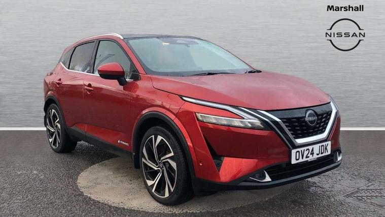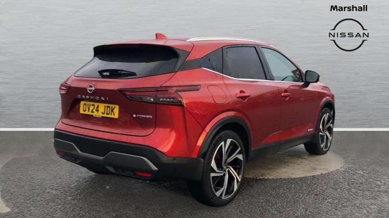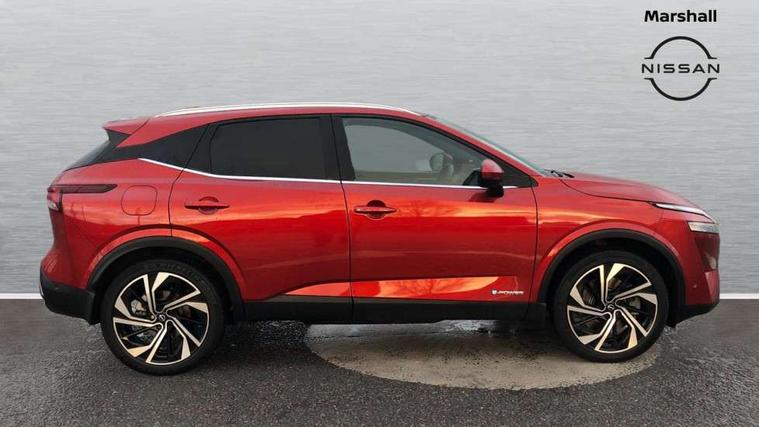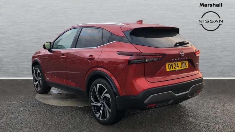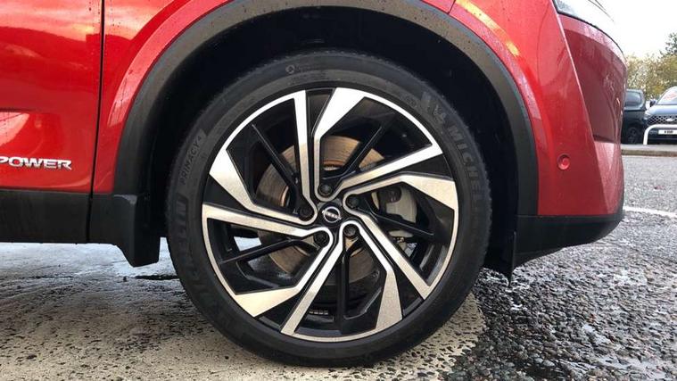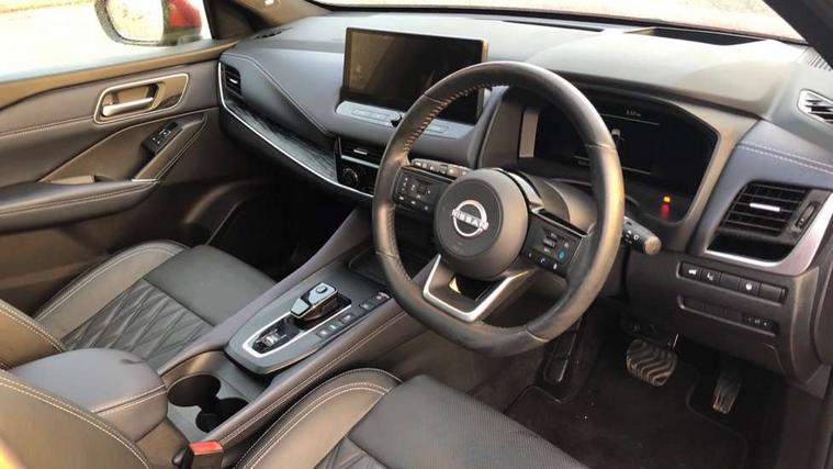 Advanced windscreen head up display, Blind spot warning, Drive modes (sport, normal, eco), e-Pedal step, Electric speed sensitive power steering, Emergency and breakdown call, Front and rear parking sensors, Full Digital 12.3" TFT Digital Combimeter, Google maps services - search, weather, 3D maps and Google street view, Hands free power tailgate, Idle stop/start system, Intelligent around view monitor, Intelligent Cruise control (ICC), Intelligent driver alert system, Intelligent forward collision warning, Intelligent lane intervention, Lane departure prevention, Lane departure warning system, Lane keep assist, Moving object detection, Nissan connect 12.3 inch touchscreen infotainment system, Nissan connect navigation, Pro pilot park assist, Push button starter, Rear cross traffic alert, Rear view camera, Remote control services - door locks, lights, horn and car locator, Telematics - notifications and connectivity services, TomTom live traffic services, Traffic sign recognition with legal speed adjustment, Trip computer, Virtual personal assistant and firmware over the air capability, Wireless Apple CarPlay and wired Android Auto, Wireless charging pad, 10 Bose speakers - 2 tweeters, 6 high and medium frequency door speakers and 2 in subwoofer, AM/FM audio system with DAB, Bluetooth audio streaming, Bose acoustimass bass box, Digital amplifier, Front USB connections (Type-A and Type-C), Rear USB charging only ports (Type-A and Type-C), Auto dimming rear view mirror, Auto rear wiper when reversing, Automatic hazard signal with emergency stop signal, Body colour mirror caps, Body coloured door handles, Bodyside mouldings, Chrome side window finisher, Door handle with button, Door mirror memory, e-POWER badging, Electric auto folding door mirrors, Electrically adjustable and heated door mirrors with LED turn indicator, Follow me home headlights, Front and rear LED turning signals, Headlights auto levelling system, Intelligent auto headlights, LED 3rd brake light, LED daytime running lights, LED front fog lights, LED headlights with adaptive driving beam, LED rear lights, One touch front and rear electric windows with remote opening and closing, Privacy glass, Rear bumper with graphite insert, Rear reversing light (bulb lighting), Rear roof spoiler, Rear side wing doors, Rear styling plate, Reverse tilting door mirrors, Shark fin antenna, Splash free rain sensing wipers, Super UV and infrared cut glass, Thermaclear heated windscreen, Three blink turn signal, 12v power socket in dashboard and luggage, 2x Rear coat hooks, 3 bench rear seats in 2nd row, 3 rear headrests, 4 folding assist grip, 6 Luggage hooks - 4 on floor, 2 on side, 60/40 split folding rear seat bench, Ambient lighting around centre console, Ambient lighting in front doors, Centre console storage tray, Chrome interior door handles, Dark black/blueish PVC wrapping, Dark headlining, Driver and front passenger sunvisors with illuminated vanity mirrors, Driver seat back pocket, Dual zone automatic climate control with pollen filter, e-POWER shifter, Electric 4-way lumbar support for drivers seat, Electric adjustable 4 way lumbar support for passenger seat, Electrically adjustable driver seat with massage and memory functions, Front and rear door storage, Front centre console and armrest, Front cupholders x 2, Front door with bottle holders, Glovebox with light, Hard trunk cover, Heated front seats, Heated steering wheel, Height adjustable driver's seat, Height adjustable front headrests, Height adjustable passenger seat, Leather steering wheel, Luggage board system, Luggage space lighting, Manually adjustable passenger (slide recline + lifter), Multifunction steering wheel, Passenger seat back pocket, Quilted premium leather upholstery, Rear armrest with 2 cupholders, Rear door bottle holders, Single front passenger seat, Soft PVC kneepad, Steering wheel switches, Tilt/telescopic adjustable steering wheel, Two rear isofix child seat anchorage points with top tether, Welcome light and doors with console tray ambient lighting, Glass roof pack with roof rails - Qashqai, 3x3 point rear seatbelt pretensioners + load limiters, ABS with EBD and brake assist, Active brake limited slip, Auto hold function, Child locks on rear doors, Curtain and front side, far side airbags, Driver and passenger airbags, Driver, passenger and 2nd row rear seat belt reminder, Electronic parking brake, Front seatbelt pretensioners + load limiters, Height adjustable front seatbelts, Hill start assist, Intelligent blind spot intervention, Intelligent front emergency braking with pedestrian, cyclist recognition and junction assist, Intelligent rear automatic braking, Tyre pressure monitoring system, Vehicle dynamic control, Advance intelligent key with driver memory storage (seats, mirrors, audio), Capless fuel filler, Engine immobiliser, Remote central door locking with deadlocking, Thatcham Cat.1 alarm, Interior instrumental panel C finisher, 20" Diamond cut alloy wheels, Tyre puncture repair kit,