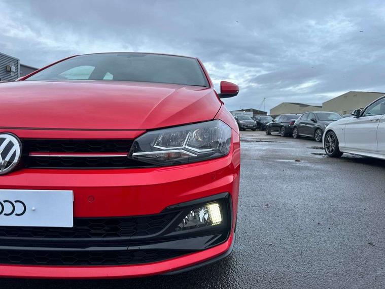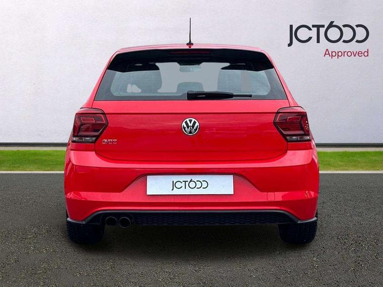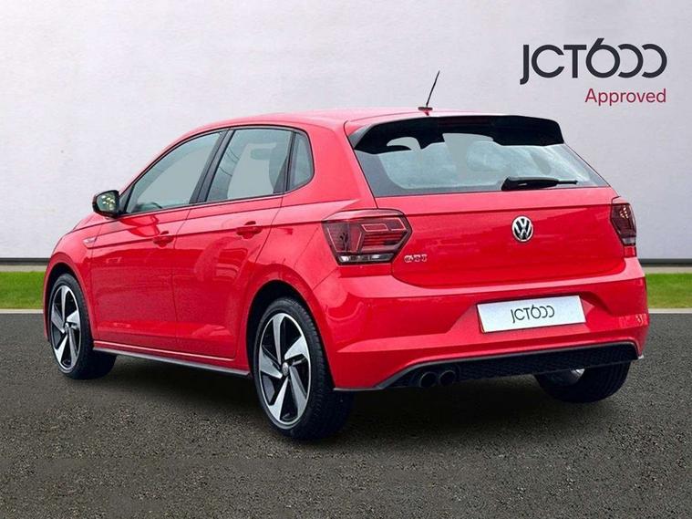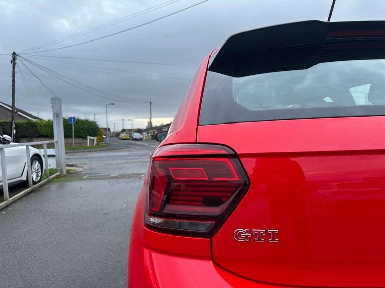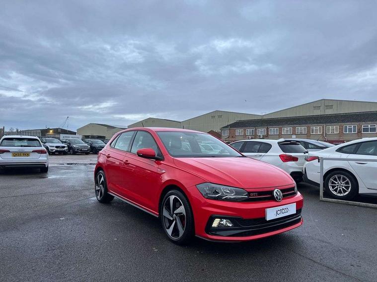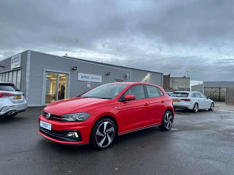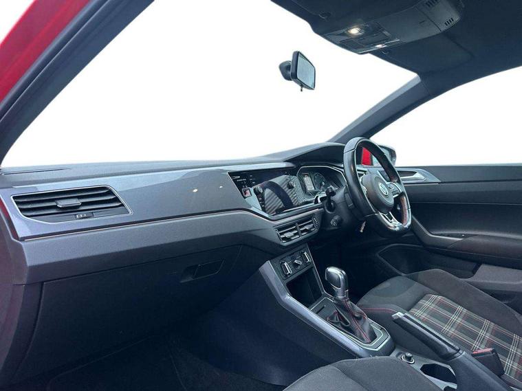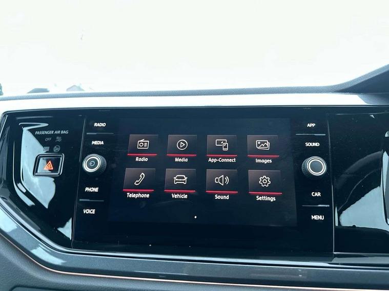 App-Connect, Bluetooth Telephone preparation, Drive mode selector, Driver alert system, Multifunction colour display, PAS - speed related, Service interval indicator, Trip computer, Warning buzzer and light for front seatbelts unfastened, Lowered sports suspension, XDS electronic differential lock, 6 speakers, Composition media system with radio, glovebox mounted CD, colour touch screen, SD card, aux-in, USB, multimedia interface, DAB Digital radio, Automatic headlamp activation, Black grille with chrome surround, Black rear spoiler, Body colour bumpers, Body colour door handles, Body coloured side sills, Chrome trimmed front air intake surrounds, Electric front windows, Electric operated/heated door mirrors, Front wash/wipe with interval delay, Heat insulated tinted glass 65% light absorbing from B pillar back, Heated rear window with auto timer, LED daytime running lights, LED rear number plate lights, LED tail lights, Rear electric windows, Rear windscreen washer and wiper with interval delay, Red radiator grille louvres, Stainless steel door sill protection, Twin chrome exhaust tailpipes, 12V power socket in centre console, 2 bag hooks in luggage compartment, 2 cupholders, 3 rear head restraints, 3 spoke steering wheel, 60/40 split folding rear seat, Ambient lighting, Chrome plated light switch, Driver/front passenger seat height adjustment + underseat drawers, Driver/passenger sunvisors with illuminated vanity mirrors, Dust/pollen filter, Front and rear carpet mats with red stitching, Front seat backrest storage nets, Front seats with lumbar support, Front/rear reading lights, Gearshift paddles, Glovebox, Height/reach adjustable steering column, Interior light with delay, Isofix Preparation 2 Rear child seats, Jack and tool kit, LED footwell lights, Luggage compartment cover, removable, Luggage compartment lighting, Matt chrome gear lever gaiter surround, Multifunction leather steering wheel with leather gear knob/handbrake grip, Stainless steel pedals, Storage compartment in front doors, Storage compartment in rear doors, Storage compartment under front seats, Titanium black headlining, GTI styling pack - Polo, 3 point height adj front seatbelts + pretensioners, 3x3 point rear seatbelts, ABS, Automatic post collision braking, Driver/front passenger airbag, Driver/Passenger whiplash optimised head restraints, ESP with EDL + ASR, Front and rear passengers curtain airbag system including front side airbags, Front passenger airbag deactivation, HBA (Hydraulic Brake Assist), Hill hold control, Red brake calipers, Two tone horn, Tyre pressure monitoring system, Alarm with remote central locking and interior protection, Anti-theft wheel bolts, Electronic engine immobiliser, Air vents in Matt chrome, Black high gloss trim, Space saver spare wheel,