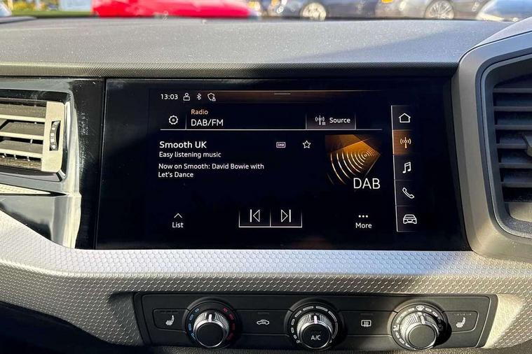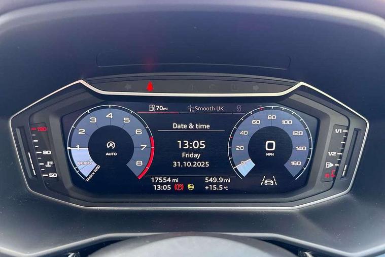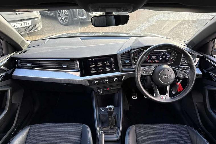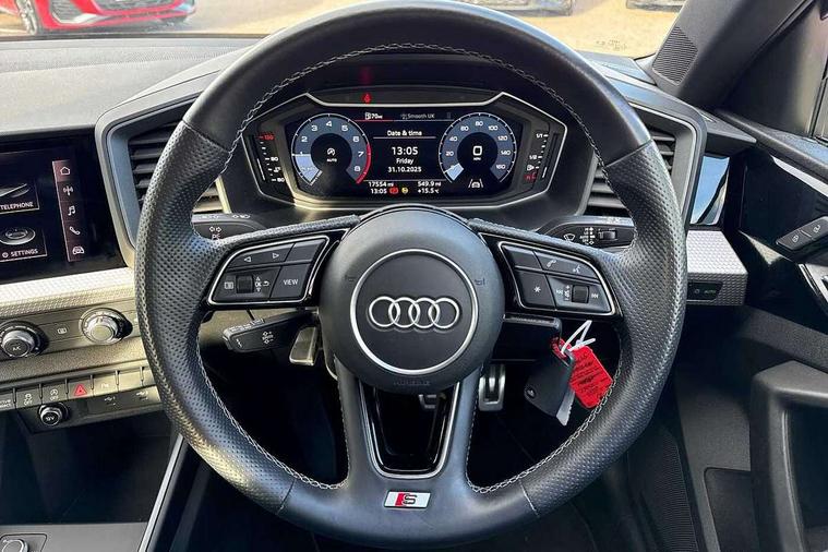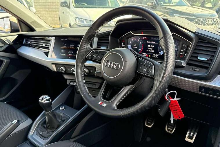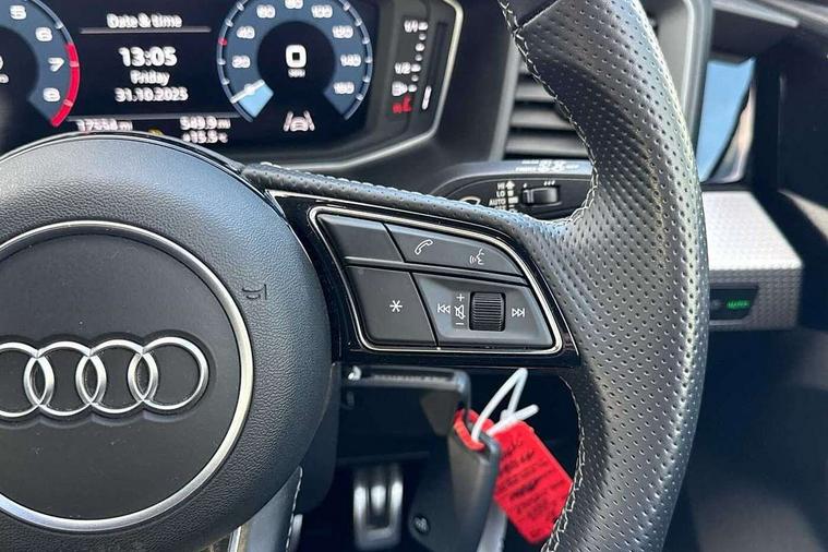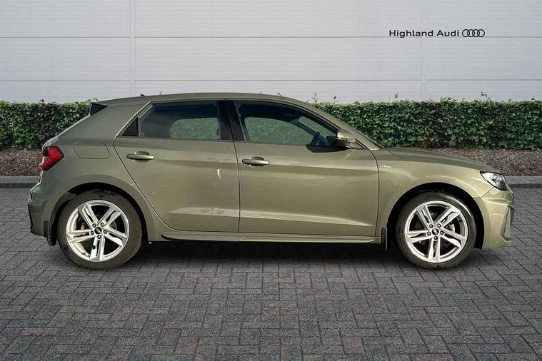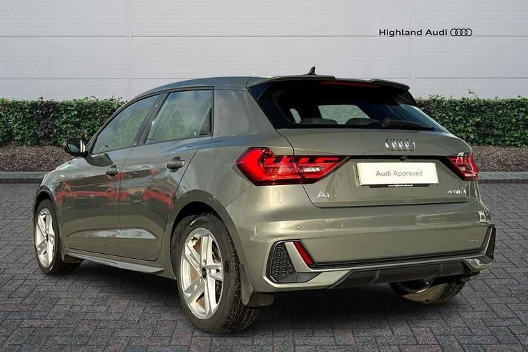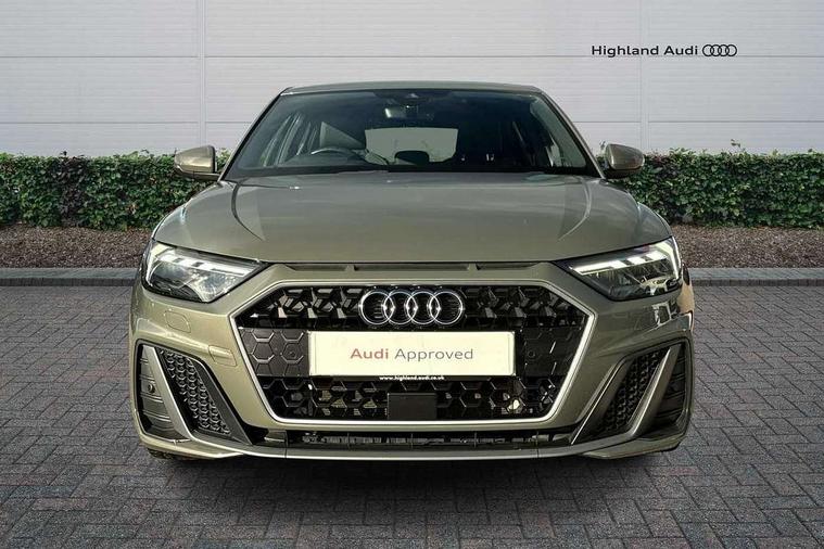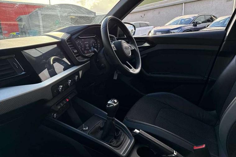 10.25" Digital instrument cluster display classis style instrument dials + speed, odometer, time, outside temperature, telephone menu + fuel level warning, Audi connect safety emergency and service including E-call, Audi drive select - power steering assistance + engine, Audi smartphone interface with connect compatible smartphone via USB directly MMI display + Nav, music, third party apps controlled via MMI controller, Automatic start/stop system, Bluetooth interface, Cruise control, Driver's information system, Electromechanical power steering, Lane departure warning system, Service interval indicator, Speed limiter, Voice control system, Washer fluid level indicator, Sports suspension, 1 x SDXC card reader, 2 x USB type C connection points, DAB Digital radio, MMI radio plus with 8.8" colour MMI display screen and MMI touch, Auto dimming rear view mirror, Body coloured door mirrors, Door sills with aluminium inlays and S Line logo, Electric front and rear windows, Electrically adjustable, heated, folding door mirrors with integrated LED side indicator, Front side air inlets in grained matt black and C frame in titanium black, Heat insulating glass windscreen and side windows, Heated rear windscreen, LED headlights with LED rear lights + dynamic rear indicators + headlight adjustment and high beam, turning light + LED daytime running lights, Radiator grille and rear diffuser in matt titanium black, Radiator protective grille frame in matt aluminium silver, Rain and light sensors, Rear fog lights, Rear wiper, S line badges on front wings, Side front spoiler lips in grained matt black, 12V socket in centre console with two cup holders, 3 rear seats with headrests, 40:60 Split folding rear seat or folded fully, Black cloth headlining, Driver and passenger seat with manual height adjust with forward and backwards adjustment, Front and rear black floor mats with contrast stitching in fine silver, Front head restraints, Height and reach adjustable steering wheel, ISOFIX child seat mounting for front passenger and outer rear seats including top tether attachment point of outer rear seats, Leather gear knob with aluminium trim, Luggage compartment light with front and rear reading lights, Manually adjustable lumbar support in front seats, Stainless steel pedals, LED interior lighting pack - A1, Luggage compartment pack - A1, S line exterior styling pack - A1 Sportback, 3x3 point rear seatbelts, Audi pre-sense front with pedestrain and cyclist recognition, Brake assist function, Driver and front passenger airbag with front side and head airbags, Electronic Stability Control including ABS, EBD, ASR and EDL, Front and rear seatbelt reminder, Front passenger airbag deactivation switch, Hill hold assist, Seatbelt height adjustment for front seats, Seatbelt monitoring, Tyre pressure warning light, Warning triangle and first aid kit, Anti theft alarm, Anti theft wheel bolts and loose wheel warning, Immobiliser, Remote central locking with 2 foldaway keys, Aluminium trim for control switches, air vents and digital instrument cluster, Silver grey inlays polygon structure in diamond paint finish, Structured grey accent areas including air vents, door handle recesses and centre console in quartz paint finish,