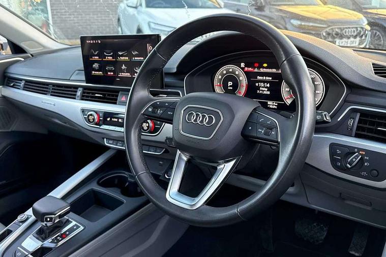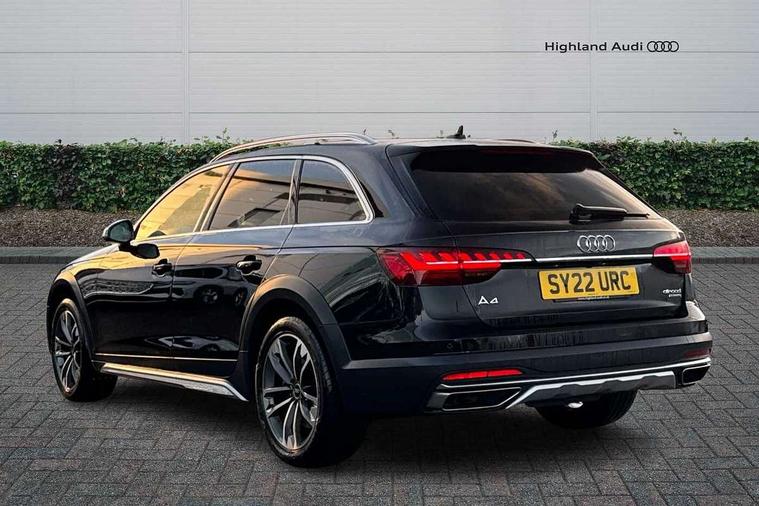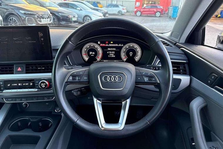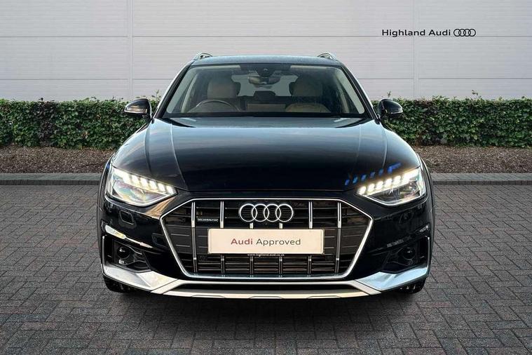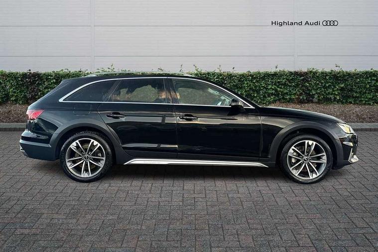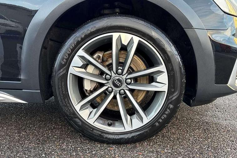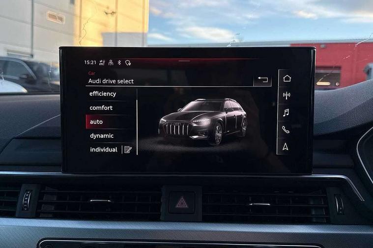 Audi connect safety and service (e-call), Audi connect with Amazon Alexa Integration, Audi drive select, Audi parking system plus with front and rear sensors, Audi smartphone interface, Audi virtual cockpit, Automatic start-stop system with coasting functionality and efficiency programme, Bluetooth interface, Electromechanical power steering, Email, calendar and text messages displayed via MMI, MMI Navigation plus with MMI touch includes 10.1" high resolution colour MMI display, 3D map, Power operated tailgate, Rear view camera, Voice control system, 58 Litre fuel tank, Comfort dynamic suspension, Quattro all wheel drive, 2 USB charging ports, 8 passive loudspeakers, DAB digital radio reception, Allroad radiator grille with vertical chrome slats, Auto dimming rear view mirror, Body coloured door mirrors, Chrome plated exhaust trims, Door sill trims in aluminium inlay with allroad logo, Electrically folding auto dimming/adjustable/heated door mirrors with LED side indicators and kerb view function for passenger side, Extended side sills in selenite silver, Front acoustic glazing, Front and rear bumpers and extended wheel arches in contrasting finish, High beam assistant, LED headlights with LED rear lights + dynamic rear indicators + headlight adjustment and high beam, turning light + LED daytime running lights, Privacy glass, Rain and light sensors, Underbody protection, Windscreen with acoustic glazing, 3 spoke high multi-function leather sport steering wheel with paddle shift and height and reach adjustable, 4 way electric lumbar support for driver and front passenger, 40/20/40 split folding 3 rear seat bench in 3 parts with rear centre armrest, Deluxe 3 zone electronic climate control, Electric load area cover, Front and rear head restraints, Front centre armrest, Heated front seats, ISOFIX child seat mounting and top tether, Manual seat adjustment, Stainless steel loading sill protector, Twin leather upholstery + front sports seats, Exterior off road aluminium package - A4 Allroad, High gloss package - A4, LED Interior light pack - A4/S4, Storage and luggage compartment pack - A4, 3 rear seatbelts, 6 airbags - Driver, front passenger, curtain and side windows, Electronic Stabilisation Control (ESC) including ABS, ASR and EDL, Hill hold assist, Multi collision brake assist, Off road detection system, Pop-up bonnet for pedestrian protection, Pre sense city, Seatbelt monitoring, Warning triangle and first aid kit, Anti theft alarm, Anti theft wheel bolts, Keyless Go, Aluminium ellipse silver inlays, Tool kit, Tyre repair kit,