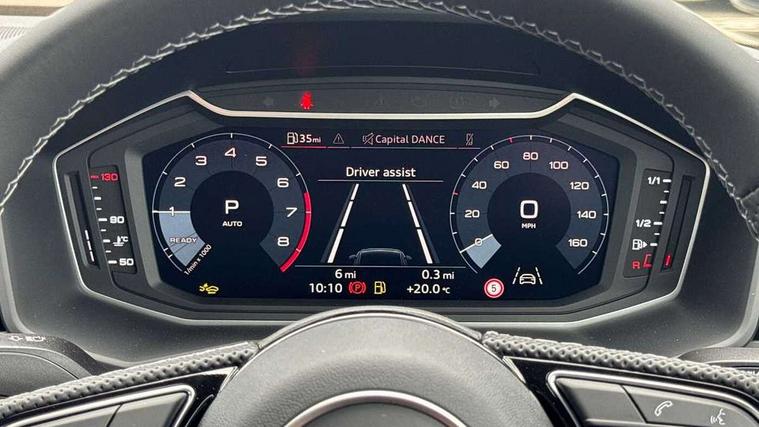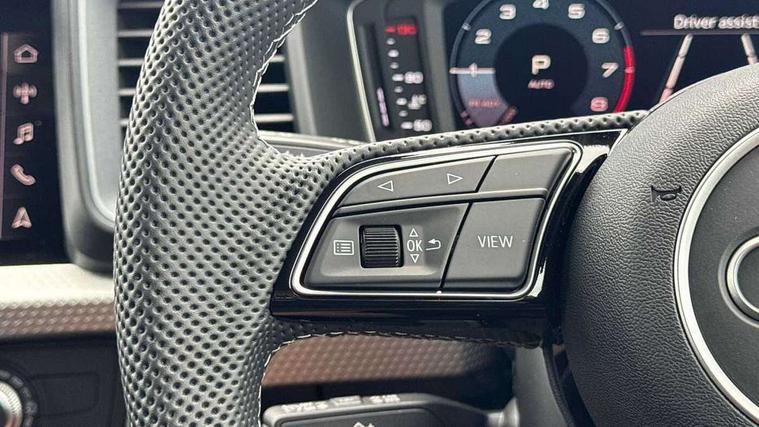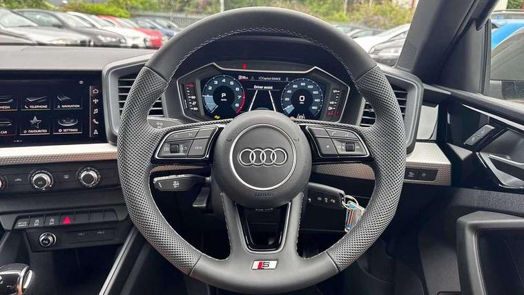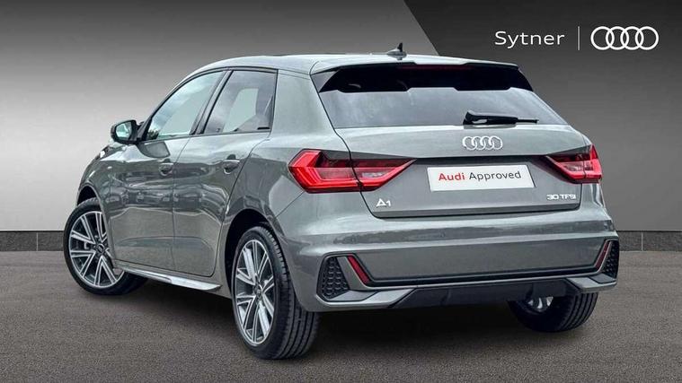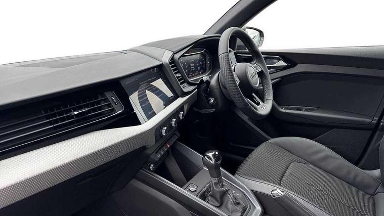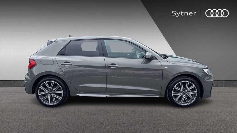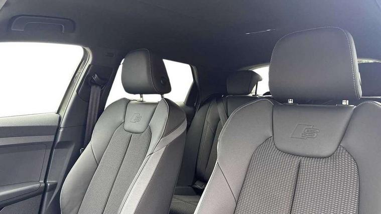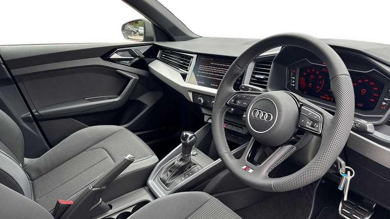 10.25" Digital instrument cluster display classis style instrument dials + speed, odometer, time, outside temperature, telephone menu + fuel level warning, Advanced driver attention and drowsiness monitor, Audi connect emergency call and service, Audi drive select, Audi remote connect and control, Audi smartphone interface, Bluetooth interface, Camera based traffic sign recognition, Cruise control, Driver's information system, Electromechanical power steering, Lane departure warning system, Rear parking sensor, Service interval indicator, Speed limiter, Start stop system with recuperation, Voice control system, Washer fluid level indicator, Sports suspension, 2 x USB type C connection points, 6 loudspeakers, DAB Digital radio, MMI radio plus with 10.1" colour MMI display screen and MMI touch, Auto dimming rear view mirror, Body coloured door mirrors, Door sill trims with aluminium inlays and S line logo in front, Electric front and rear windows, Electrically adjustable, heated, folding door mirrors with integrated LED side indicator, Front side air inlets in grained matt black and C frame in anthracite black, Headlight cleaning system, Heat insulating glass windscreen and side windows, Heated rear windscreen, High level LED brake light, LED daytime running lights, LED headlights with range control LED rear lights + dynamic rear indicators, Light and rain sensors, Privacy glass, Radiator grille and rear diffuser in matt anthracite black, Radiator protective grille frame in matt aluminium silver, Rear fog lights, Rear side wing doors, Rear wiper, S line badges on front wings, Side front spoiler lips in grained matt black, 12V socket in centre console with two cup holders, 3 rear seats with headrests, 3 seat bench in 2nd row, 3 spoke leather multi-function plus steering wheel features S badging and grips in perforated leather with contrast stitching, 40:60 Split folding rear seat or fully collapsed, Black cloth headlining, Front and rear velour black floor mats with contrast stitching in fine silver, Front head restraints, Front passenger seat, Height and reach adjustable steering wheel, Interior lighting includes roof module, front and rear reading lights and right luggage compartment lighting, ISOFIX child seat mounting for front passenger and outer rear seats including top tether attachment point of outer rear seats, Leather gear knob with aluminium trim, Leather handbrake grip, Manual air conditioning, Manual height adjustable for driver and front passenger seat, Manually adjustable lumbar support in front seats, Stainless steel pedals, Ambient lighting package - A1, Luggage compartment pack - A1, S line exterior styling pack - A1 Sportback, 3x3 point rear seatbelts, Audi pre-sense front with pedestrain and cyclist recognition, Brake assist function, Driver and front passenger airbag with front side and head airbags, Electronic Stability Control including ABS, EBD, ASR and EDL, Front passenger airbag deactivation switch, Hill hold assist, Manual rear child locks, Seatbelt height adjustment for front seats, Seatbelt monitoring, Tyre pressure loss indicator, Warning triangle and first aid kit, Anti theft alarm, Anti theft wheel bolts, Immobiliser, Remote control key with safelock, Aluminium trim for control switches, air vents and digital instrument cluster, Black dashboard, Silver grey inlays polygon structure in diamond paint finish, Structured grey accent surfaces insert of air vents, interior door handle recesses and centre console in quartz paint finish,