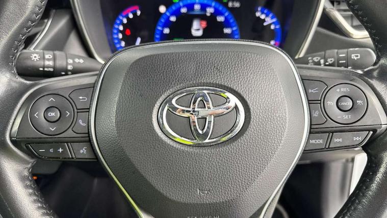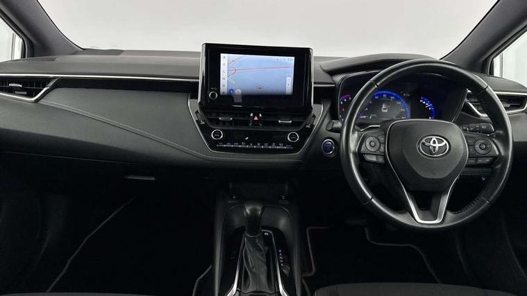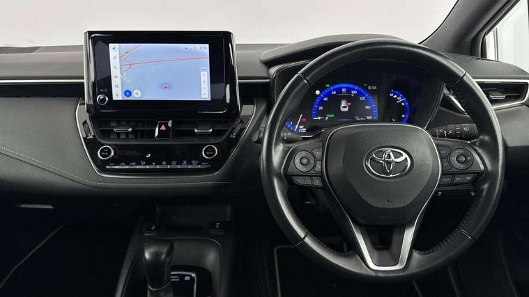 7" Multi information display screen, Bluetooth telephone connectivity, Connected car functionality upgrade, tracker, remote status and e-care, Dynamic radar cruise control (with RSA) including switch on steering wheel, E-call, Electrically assisted power steering, EV drive indicator, Intelligent park assist, Lane Departure Alert (LDA) switch on steering wheel, Memory on adjustable speed limiter, Push button start, Reversing camera, Smartphone integration with Apple CarPlay and Android auto, Gasoline particulate filter, Vehicle Stability Control (VSC), 6 speakers, 8" Touchscreen with MM19 Multimedia system and voice recognition, AM/FM radio, DAB Digital radio, Toyota touch 2 with go navigation system, USB and Aux in connectors + 12V front outlet, USB charging port in centre storage box, Aluminium roof rails, Anti-jam protection on power windows, Auto up and down function on all power windows, Automatic headlights with high beam assist, Black metallic surround on lower front grille, Black toyota logo in front, Body colour rear spoiler, Body coloured bumpers, Body coloured door mirrors, Body coloured outside door handles, Follow me home headlights, LED daytime running lights, LED front fog lights, LED Headlights, LED High mounted stop light, Manual day/night rear view mirror, Noise reduction layer on front windows, Power adjustable heated door mirrors, Power front windows, Power rear windows, Rain sensor, Rear side wing doors, Rear window defogger, Rear window wiper, Shark fin antenna, Time adjustment on intermittent wiper, Turning signal integrated indicators in door mirrors, Unique lower skirt, Unique side rocker with black insert, UV-filter on driver and passenger windows, 12v power outlet - luggage side, 3 rear headrests, 3 seat bench in 2nd row, 3 spoke leather steering wheel + gear knob, 60/40 split folding rear seat, Adjustable speed limiter switch on steering wheel, Audio, multimedia and telephone switches on steering wheel, Boot light, Boot underfloor storage, Clean air filter, Driver and front passenger personal light, Driver and passenger assist grip, Driver and passenger sun visor with mirror and light, Dual sided deck board in boot, Dual zone automatic air conditioning with ECO mode switch, Fabric armrests, Front and rear cup and bottle holders, Front and rear door pockets, Front head restraints, Front passenger seat, Heated driver and front passenger seats, Illuminated entry system in room lamp, ISOFIX seat fixing (2 fixings on rear outer seats), Leather gear shift with satin chrome on gear shift console, Manual height adjustable for driver and front passenger seat, Passenger seat back pocket, Pollen filter, Power adjustable lumbar support on driver seat, Power window switches with satin chrome inserts, Quilted fabric upholstery with grey stitches seats, Rear armrest with 2 cupholders, Rear passenger air vents, Rear passenger coat hooks (2), Rear passenger personal lights, Retractable tonneau cover with luggage partition net, Satin chrome inside door handles, Shopping bag hooks in luggage compartment, Side storage in boot, Sliding armrest on centre console box, Slow opening glovebox with lights, Tilt/telescopic steering column, Tonneau cover with under floor storage, Voice recognition switch on steering wheel, Whiplash Injury Lessening (WIL) feature (active headrest) for seats, Parking pack - Corolla, Toyota safety sense 2 pack - Corolla, 3x3 point rear seatbelts, Adjustable driver and front passenger seat belt extender to top anchor point, Anti lock braking system + Electronic brake force distribution, Brake assist function, Child locks on rear doors, Downhill Assist Control (DAC), Electronic parking brake, Emergency brake light signal (EBS), Front passenger airbag on/off switch, Front seatbelt reminder, HAC - Hill start assist control, Rear seat belt reminder, Seatbelt pretensioners and force limiters, Supplemental restraint system (SRS) 7 airbags - dual driver, dual side curtain, side impact and driver knee airbags, Traction control, Tyre pressure warning system, Acoustic vehicle alert system (AVAS), Alarm with motion sensor and immobilizer, Remote central locking + deadlocks, Smart entry, Satin chrome dash trim, Soft touch texture on upper dashboard, Stitching on lower dashboard, Space saver spare wheel, Unique wheel finish with red wheel cap,