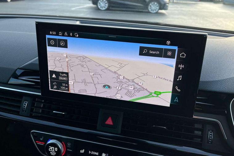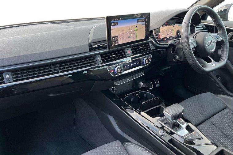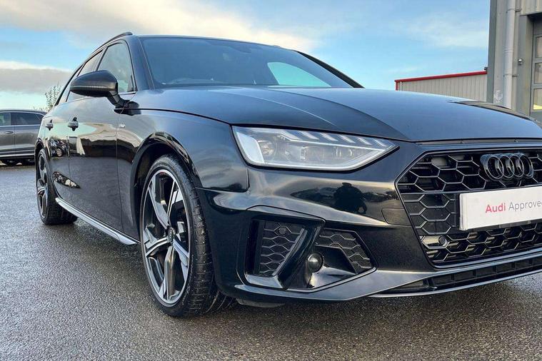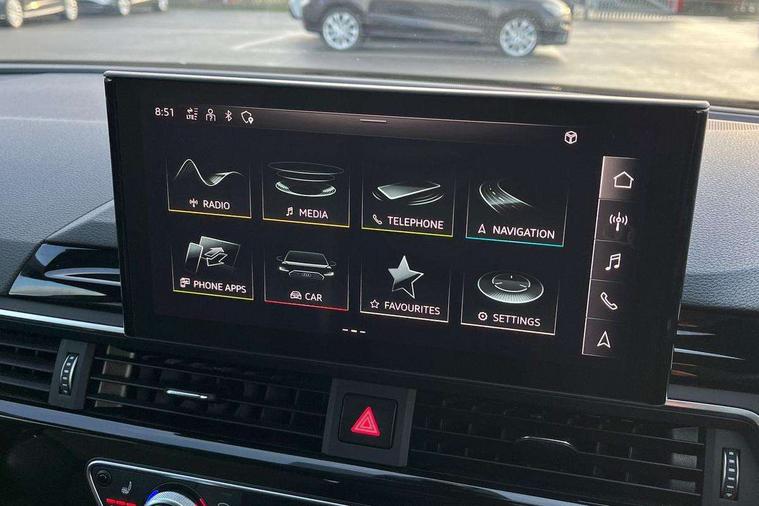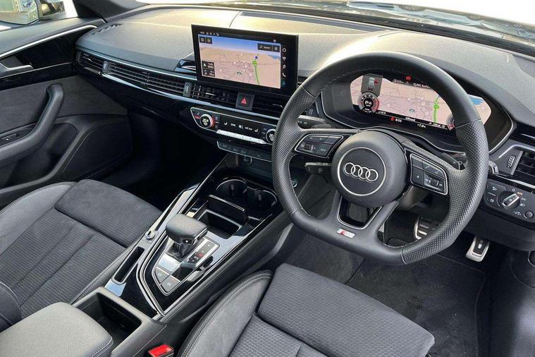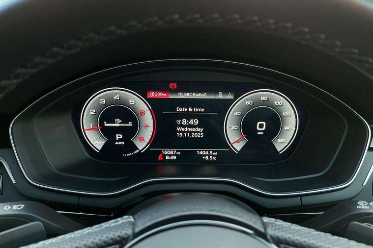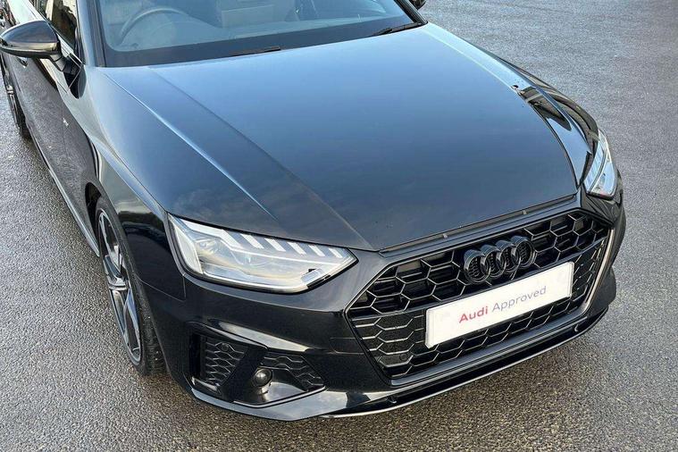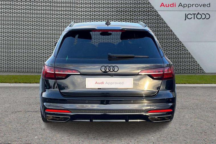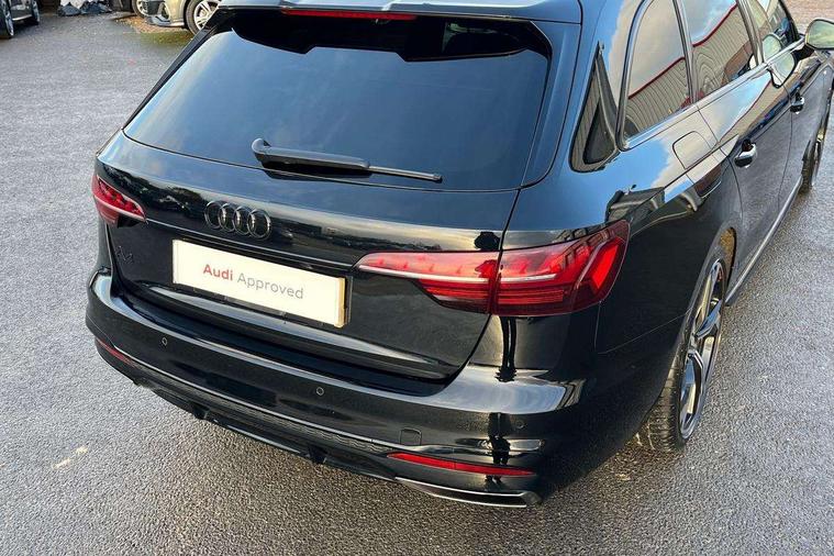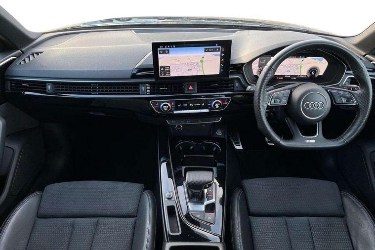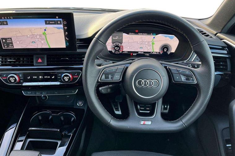 Audi connect safety and service (e-call), Audi drive select, Audi smartphone interface, Audi virtual cockpit, Automatic start-stop system with coasting functionality and efficiency programme, Bluetooth interface, Camera based traffic sign recognition, Electromechanical power steering, Email, calendar and text messages displayed via MMI, Front and rear parking sensors, Lane departure warning, MMI Navigation plus with MMI touch includes 10.1" high resolution colour MMI display, 3D map, Power operated tailgate, Rear view camera, Voice control system, 54 litre fuel tank, Sports suspension lowered by 23mm, 2 USB charging ports, 8 passive loudspeakers, DAB digital radio reception, Audi beam uses LEDs to project the audi logo onto the ground as you exit your A4, Auto dimming rear view mirror, Black Audi rings and black badging (model name in black badging, no engine badging), Body colour door handles, Body colour front spoiler lip, Body colour side sill trim, Electric adjustable/heated/folding door mirrors with auto dimming, Exhaust tailpipes in high dark chrome, Grained matt black side air inlets with matt aluminium silver inlay, High beam assistant, High gloss black B pillar trims and triangular rear door trim, LED headlights with LED rear lights + dynamic rear indicators + headlight adjustment and high beam, turning light + LED daytime running lights, LED third brake light, Privacy glass, Rain and light sensors, Rear diffuser in matt black with trim strip in matt aluminium silver, Rear side wing doors, Rear wiper, RS4 rear spoiler in body colour, S Line roof edge spoiler, Sport front and rear bumpers with side skirts, Variable intermittent front wash/wipe, Windscreen with acoustic glazing, 4 way electric lumbar support for driver and front passenger, 40/20/40 split folding 3 rear seat bench in 3 parts with rear centre armrest, Black carpets, Black cloth headlining, Black perforated leather gearknob, Contrast stitching on seats, steering wheel and gear lever gaiter, Deluxe 3 zone electronic climate control, Electric load area cover, Front and rear head restraints, Front centre armrest, Heated front seats, Illuminated door sill trims with S logo, ISOFIX child seat mounting and top tether, Manual seat adjustment, Single front passenger seat, Stainless steel pedals and foot rest, Tool kit, Black styling pack - A4 Avant, LED Interior light pack - A4/S4, 3 rear seatbelts, 6 airbags - Driver, front passenger, curtain and side windows, Attention and drowsiness assist, Electronic Stabilisation Control (ESC) including ABS, ASR and EDL, Hill hold assist, Multi collision brake assist, Pop-up bonnet for pedestrian protection, Pre sense city, Rear door child safety locks, Seatbelt monitoring, Warning triangle and first aid kit, Anti theft alarm, Anti theft wheel bolts, Central locking, Keyless Go, Piano black finish inlay, Tyre repair kit,