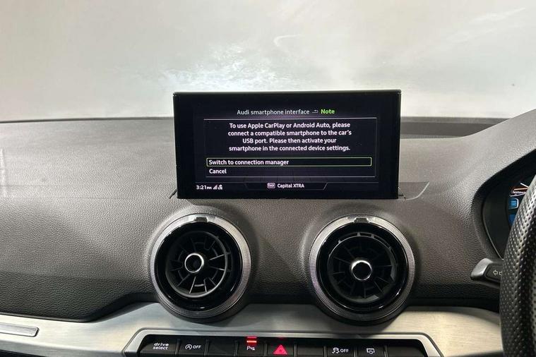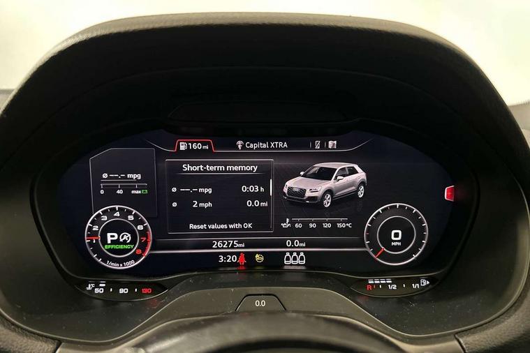 Audi connect navigation and infotainment includes innovative services, Audi connect remote and control connects your vehicle to your smartphone, Audi drive select - Power steering assistance + engine + gearshift, Audi drive select with efficiency, Audi smartphone interface, Audi virtual cockpit, Automatic start/stop system with recuperation, Bluetooth interface includes bluetooth audio streaming, Cruise control, E-call, MMI navigation plus with MMI touch, Power operated tailgate, Progressive steering, Rear parking sensors, 2 x SDXC card reader, 6 passive loudspeakers, DAB Digital radio, DVD Drive, Auto dimming rear view mirror, Black window trims, Bumper in full body colour paint finish, Electrically adjustable, folding, auto dimming and heated door mirrors with integrated LED side indicators, Front windscreen with grey tinted sunband, LED daytime running lights, LED headlights with LED rear lights, LED third brake light, Privacy glass - dark tinted rear and rear side windows from B-pillar backwards, Rear side wing doors, Rear wiper, Variable front intermittent wipers, Wheel arch trims in manhattan grey, 12V socket in front, 3 seat bench in 2nd row, 3 spoke flat bottomed multi-function leather sport steering wheel with gear shift paddles, 4-way electric lumbar support for front seats including seat height adjustment for both front seat, 60/40 split folding rear seat bench, Black cloth headlining, Front and rear head restraints, Front centre armrest, Front/rear floor mats, Height/reach adjust steering wheel, Illuminated door sill trims with S logo, Single front passenger seat, Stainless steel pedals, Black styling pack - Q2, 3x3 point rear seatbelts, 6 airbags - Front, curtain and front side airbags, Electromechanical parking brake, Electronic stabilisation control including ABS, ASR and EDL, Front passenger airbag deactivation, Hill hold assist, Pre-sense front with pedestrian recognition, Seatbelt monitoring, Tyre pressure warning light, Warning triangle and first aid kit, Anti theft alarm, Anti theft wheel bolts, Manual child locks, Remote central door locking, Aluminium interior element, Matt brushed aluminium trim inlays, Tool kit,
