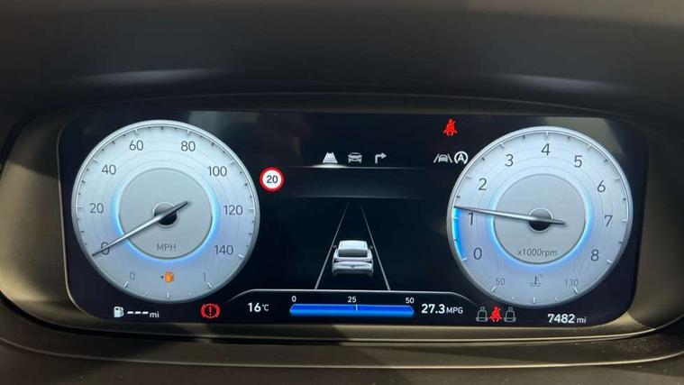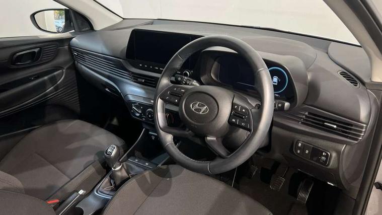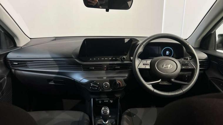 10.25" digital supervision cluster, 2nd Gen eCall, 8" Touchscreen with DAB, Apple car play/Android Auto, Cruise control + speed limiter, Forward collision assist with car, pedestrian and cycle detection, Intelligent speed limit warning, Lane follow assist, Lane keep assist, PAS, Rear parking sensor, Rear view camera with dynamic guidelines, USB C port front, 3rd brake light, Dusk sensor, Electric adjustable heated door mirrors, Front grille mesh pattern design, High beam assist, LED daytime running lights, LED Headlights, LED taillights, Rain sensor, Rear side wing doors, Rear wiper, Repositioned flat metal hyundai emblem, 3 seat bench in 2nd row, Adjustable head restraints, Air conditioning, Cloth upholstery, Floor mats, Leather steering wheel, Single front passenger seat, 3x3 point rear seatbelts, ABS with front and rear diagonally split, Autonomous emergency braking, Child locks on rear doors, Front ventilated disc brakes, Rear solid disc brakes, Tyre pressure monitoring system, 16" alloy wheels, Tyre repair kit,