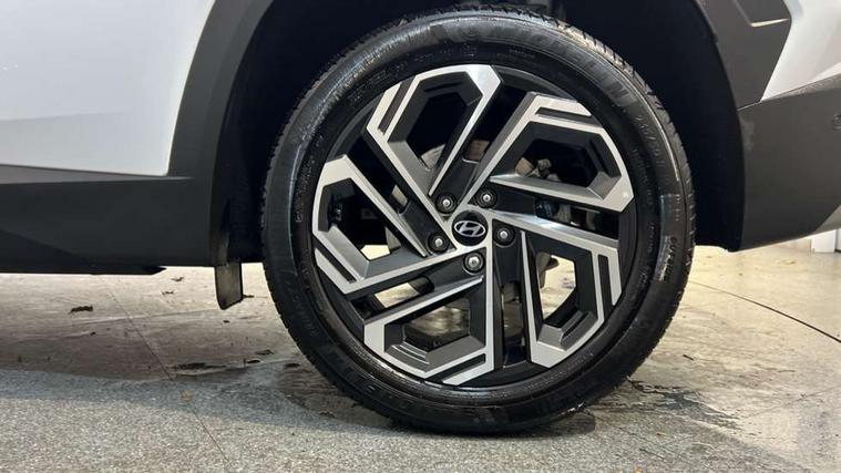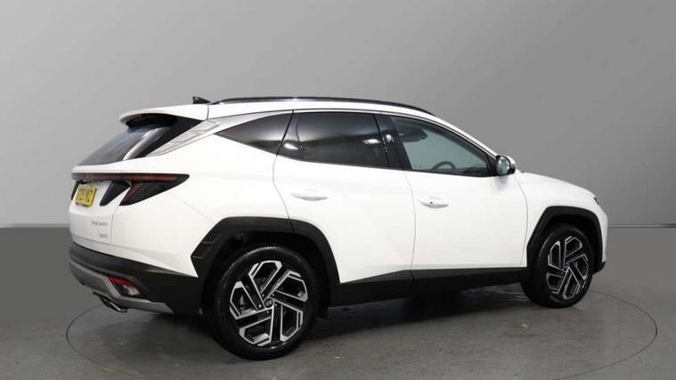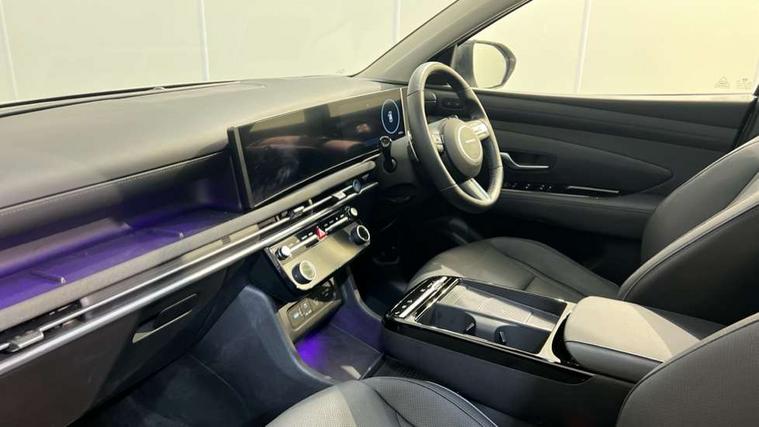 12.3" LCD display with driver's supervision instrument cluster, 12.3" widescreen navigation with bluelink and mapcare, Blind spot view monitor, Bluetooth system, Cruise control - smart adaptive speed control with stop and go function, Digital clock, Drive mode selector, Driver attention warning, E-call, Emergency stop signalling system, Forward Collision Avoidance Assist (FCA) - Car, Pedestrian and Cycle, Forward Collision Avoidance Assist Junction Turning (FCAJX), Front and rear parking sensors, Front, rear and side parking distance warning, Highway Driving Assist (HDA), Hyundai road side assistance, Intelligent speed limit assist, Lane follow assist, Lane keep assist, Over the air updates(OTA), Parking collision avoidance assist (PCA), PAS, Rear camera and guidance parking system, Rev counter, Smart power tailgate, Surround view monitor, Tailgate open warning light, Trip computer, Trip odometer, Voice recognition, Water temperature gauge, Windscreen washer fluid sensor and warning indicator, Wireless Apple CarPlay/Android Auto, Wireless phone charging pad, 2 front and 2 rear USB-C ports, DAB Digital radio, Krell premium audio system with 8 speakers and subwoofer, Steering wheel mounted audio/phone controls, Adjustable intermittent front windscreen wipers with aero wiper blade, Auto dimming rear view mirror, Automatic defog system, Automatic headlights with dusk sensor, Automatic windscreen wipers with rain sensor, Black wheel arches, Body colour bumpers, Body colour door mirrors with integrated indicators, Body colour exterior door handles, Electric tilt/slide panoramic sunroof, Electrically adjustable, heated and power folding door mirrors, Follow me home headlights, Front and rear electric windows with anti-trap mechanism and one touch control, Front fog lights, LED 3rd brake light, LED daytime running lights, LED rear lights, Matrix LED headlights, Positioning Lights - LED, Privacy glass - Rear windows and tailgate, Rear side wing doors, Rear wash/wipe with intermittent wipe setting, Roof rails, Tinted glass with windscreen shade band, Trailer stability assist, 12V power outlets in front console and luggage compartment, 3 seat bench in 2nd row, 40/20/40 split folding rear seat, 64 colours interior ambient lighting, Adjustable head restraints (Up and down), Cupholders in rear armrest, Door courtesy lights, Driver and passenger sunvisors with illuminated LED vanity mirrors, Driver's seat electric adjustments, Driver's seat memory, Front and rear door pockets, Front armrest with storage box, Front centre console and door bottle holders, Front passenger's seat electric adjustments, Heated front seats, Heated rear seats, Heated steering wheel, Height/reach adjustable steering column, Illuminated/air conditioned glove compartment, ISOFIX child seat anchorage points attached on outer rear seats, Leather upholstery, Leather wrapped steering wheel and gear knob, Luggage compartment lighting, Luggage cover, Luggage hooks, Luggage net, Map and reading lights, Rear seat remote folding function, Rear side window sunblind, Reclining rear seats, Retractable load cover, Single front passenger seat, Sunglasses holder, Three zone climate control, Touch sensitive climate controls with temperature dials, TUCSON branded metal door scuff plate, Underfloor boot compartment, Ventilated front seats, Trailer wiring package - Tucson, 3x3 point rear seatbelts, Active bonnet, Airbag - Front, front side, curtain and centre front airbags, Anti-lock brake system (ABS), Brake assist function, Childproof rear door locks, Curtain airbag roll over sensor, Downhill brake control, Electric parking brake, Electronic stability control, Front and rear seatbelt reminder, Front passenger airbag deactivation switch, Front seatbelt pretensioners, Hill start assist control (HAC), Multi-Collision braking, Outer rear seatbelt height adjustment, Seatbelt height adjustment for front seats, Traction control, Tyre pressure monitoring system with individual tyre pressure display - TPMS, Vehicle stability management, Deadlocks, Immobiliser, Locking wheel nuts, Remote control central locking, Smart key with keyless entry and engine start/stop button, Speed sensitive auto door locking, Thatcham category 1 alarm, 19" Alloy wheels, Tyre repair kit,