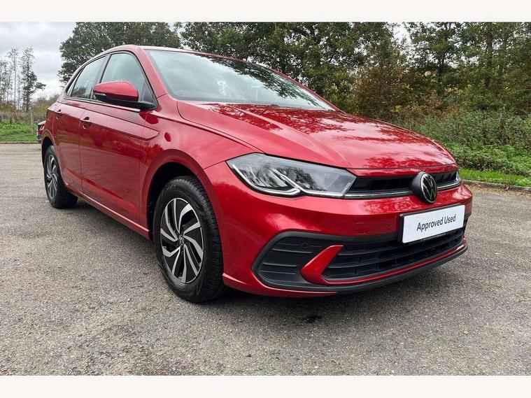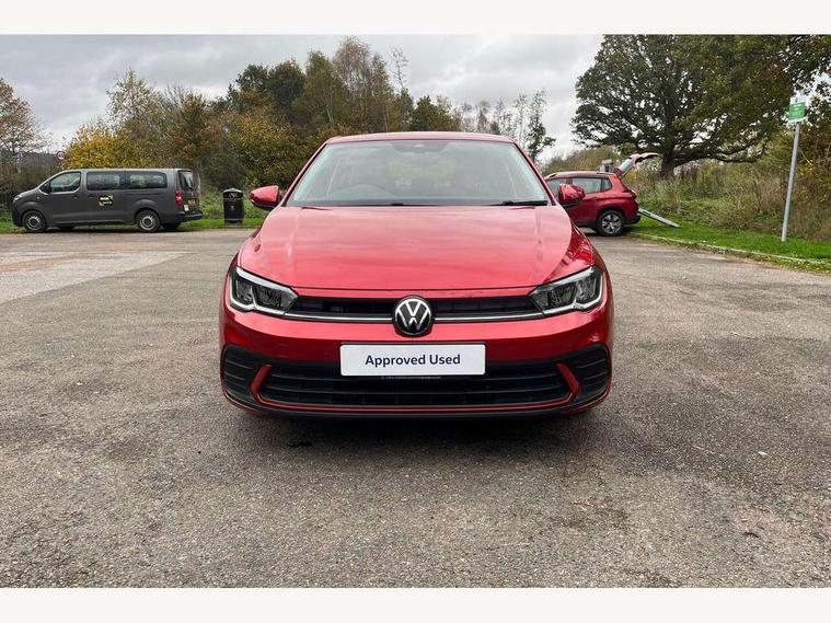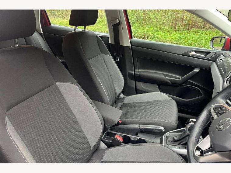 Adaptive cruise control with follow-to-stop and speed limiter, Bluetooth mobile phone interface, Driver alert system, Emergency call service, Front assist system, Power assisted speed sensitive steering, Preparation for We connect and We connect plus, Speedo and rev counter, electronic odometer, trip, service interval display and fuel gauge, Standard rear axle, Travel Assist - Lane keeping system and traffic jam assist, Travel assist including emergency assist, Trip computer, Warning signal and warning light for front and rear seatbelts not fastened, Washer fluid level indicator, Wireless app connect, Front wheel drive, Rear shock absorpion, Start-stop system with battery regeneration (recuperation - energy recovery during braking), DAB Digital radio, Diversity antenna for FM reception, Front and rear 6 speakers, Automatic dimming interior rear view mirror, Body colour bumpers, Body colour door handles, Body colour door mirrors, Chrome plated radiator grille inserts, air vent surrounds and light switch surrounds, Electric front windows, Heat insulating glass in side and rear windows, Heat insulating glass windscreen, Power folding adjustable/heated exterior mirrors and front passenger exterior mirror lowering function, Rain sensor, Rear electric windows, Rear fog light, Rear side wing doors, Rear windscreen washer and wiper with interval delay, Third brake light, 12V power socket in centre console, 2 front and 2 rear reading lights, 2 USB-C ports in the front, 2 USB-C charging sockets on the center console in the rear, 3 rear head restraints, 60/40 split folding rear seat and rear seat bench not split, Ceramique headliner, Door and side trim panel, Driver and front passenger seat height adjustment, Driver/passenger sunvisors with illuminated vanity mirrors, Front centre armrest, Front seat backrest storage pockets, Front standard seats, Handbrake lever handle in leather, Hartley/Thomas cloth upholstery, Isofix child seat preparation easy-fit (for two outer rear seats, and front passenger seat) compatible with I-size, Leather trimmed gear knob, Luggage compartment cover, Luggage compartment floor, Luggage compartment lighting, Single front passenger seat, Standard pedal cluster, Three spoke leather wrapped multifunction steering wheel with shifting paddles, Light and vision pack - Polo, 3 point height adj front seatbelts + pretensioners, 3x3 point rear seatbelts, ABS, Driver and front passenger airbag with front passenger airbag deactivation, Drivers and front passengers safety optimised head restraints, ESC (Electronic stability control) + EDL (Electronic Differntial lock) and ASR (Traction control), Extended and predictive pedestrian/ cyclist protection, Front curtain and side airbags with center airbag, Front disc brakes, Hill hold control, Manual child lock in rear doors, Rear drum brakes, Single tone horn, Tyre pressure loss indicator, Alarm with interior protection, Anti-theft alarm system with interior monitoring, backup horn, and towing protection, Anti-theft wheel bolts, Electronic engine immobiliser, Lava stone black gloss/matt decorative inserts in dash and front door panels, Low rolling resistance tyres,