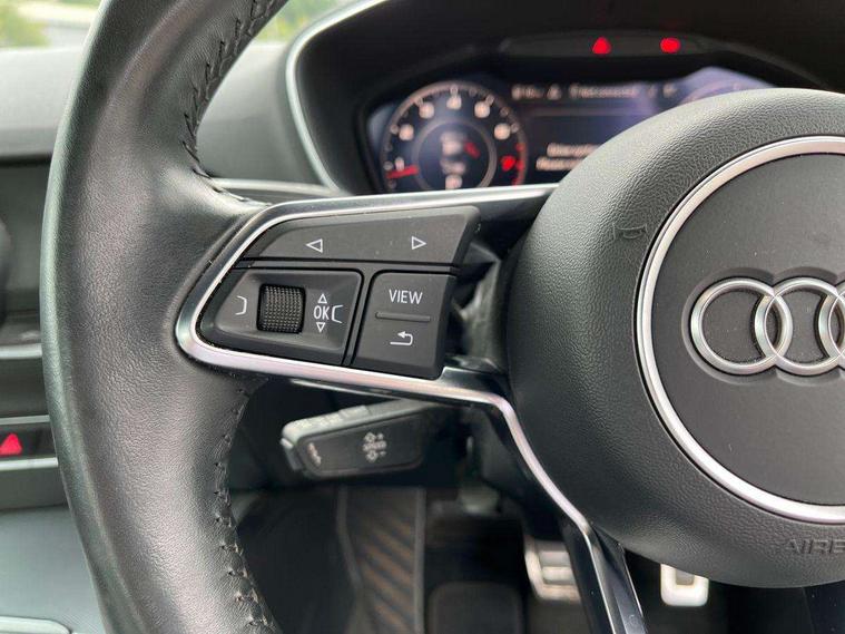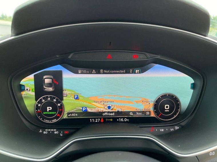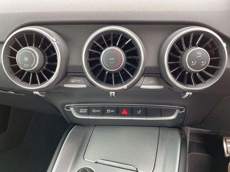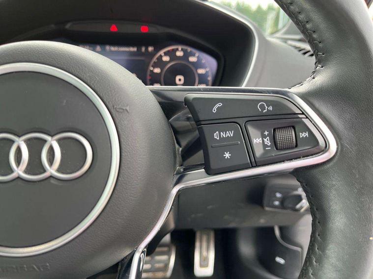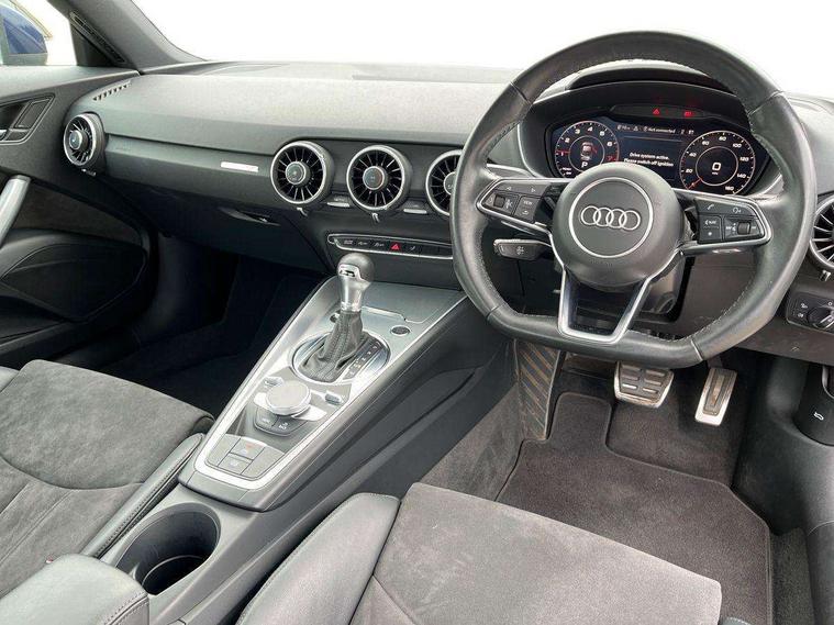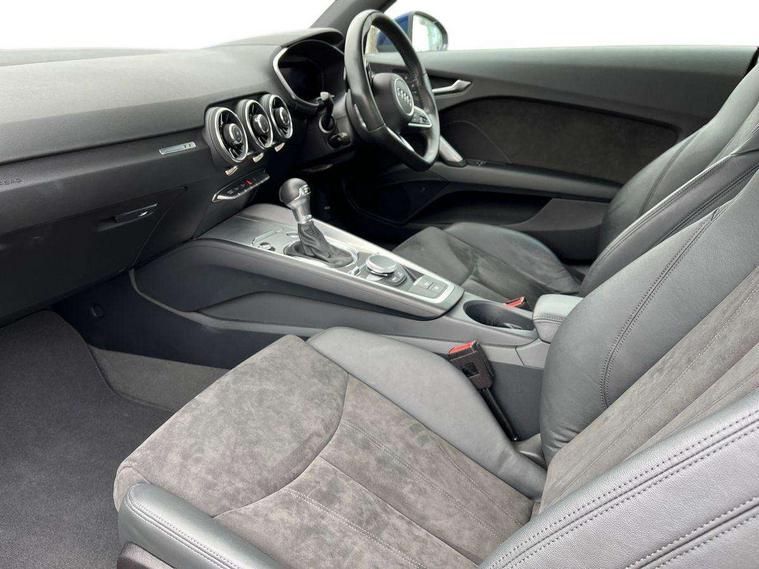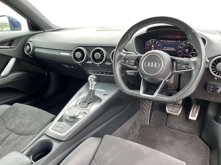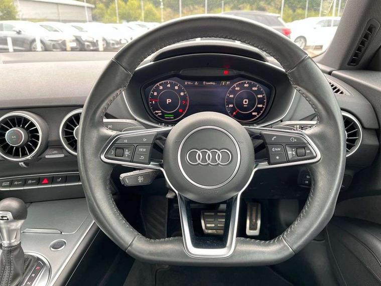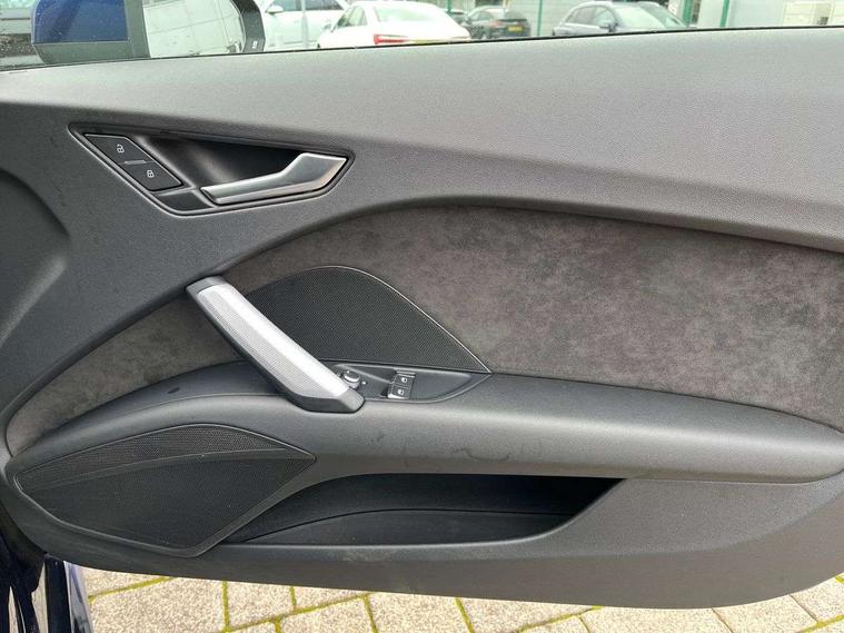 Aluminium design inlays, Non smoking pack - TT/TT RS, Tyre repair kit, Anti theft alarm, Anti theft wheel bolts, Immobiliser, Keyless Go, Remote central locking, AM/FM radio, Bluetooth audio streaming, DAB Digital radio, MMI Radio with CD player and SD/XC card slot, 3 point front seat belts, ABS, ASR traction control, Curtain airbags, Driver and front passenger airbag with front passenger airbag deactivation, EDL traction control, Electromechanical parking brake, ESP, First aid kit, Front side airbags, Head airbags, Hill hold assist, Seatbelt warning, Tyre pressure loss indicator, Warning triangle, Auto dimming rear view mirror, Body colour bumpers, Body colour electrically adjustable and heated door mirrors with built in LED side indicators, Electric folding door mirrors, Electric front windows, Front fog lights, Green tinted heat insulating glass, Light and rain sensors, Retractable rear spoiler, Sunband for windscreen, Xenon headlights with LED daytime running lights with automatic headline range control + LED rear lights, brake lights and rear indicators, 12V socket, 3 spoke flat bottomed high multi-function leather sport steering wheel with gearshift paddles, Alcantara/Leather upholstery includes seat centre panels, door trim inserts in black Alcantara with side bolsters, head restraints in black leather, Aluminium door sill trims, Front centre armrest, Front sports seats, Heated front seats, Height adjustable driver's seat, Height adjustable front head restraints, Height/reach adjust steering wheel, ISOFIX child seat mounting for front passenger seat with airbag deactivation, Rear head restraints, Rear top tether child seat ISOFIX attachment, Split folding rear seat, Tool kit, Audi drive select with 4 Pre configured modes, Audi smartphone interface, Audi virtual cockpit - 12.3" high-resolution LCD display with fully customisable instrument cluster, Cruise control + speed limiter, MMI touch panel, Mobile phone preparation with bluetooth interface, Progressive power assisted steering, Service interval indicator, Start/Stop system with energy recuperation, TP memo, Sports suspension,