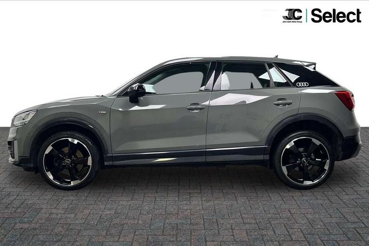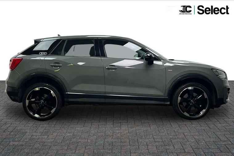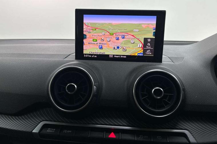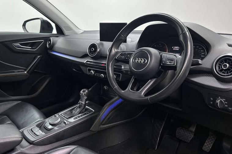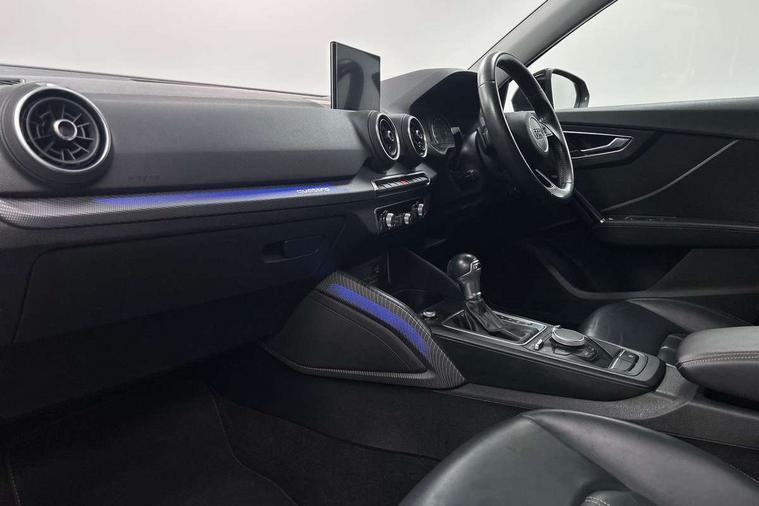 Audi drive select, Audi smartphone interface, Bluetooth hands free telephone connection, MMI - Multi Media Interface control system, MMI SD card Navigation, PAS, Service interval indicator, Voice control system, Audi music interface, Aux input, CD player, DAB digital radio module, MMI radio plus with 7" colour MMI screen and MMI controller, USB port, Brilliant black C-Pillar blade, Chrome exhaust tailpipe, Door mirror integrated indicators, Electrically adjustable and heated door mirrors, Front and rear electric windows, Headlight washers, LED headlights with LED rear lights + dynamic rear indicators, Rear wiper, S Line body styling, Solid paint, Sunband for windscreen, Centre console with storage/cupholders, Fine Nappa leather upholstery, Floor mats with contrast stitching, Front and rear door pockets, Front and rear headrests, Front centre armrest, Front sports seats, Glovebox, Height adjustable front seats, Height/reach adjust steering wheel, Illuminated door sills, ISOFIX on front passenger and rear outer seats, Storage compartment in rear centre console, Black styling pack - Q2, Extended interior upholstery pack - Q2, LED interior lighting pack advanced - Q2, Manhattan grey bumper pack - Edition 1 - Q2, 3x3 point rear seatbelts, ABS+Electronic Brake force Distribution, Curtain airbags, Driver and passenger airbags, Driver and passenger side airbags, EDL + ASR, Electrically operated child locks on rear doors, Electromechanical parking brake, ESP, Multi-Collision braking, Pre-sense front with pedestrian recognition, Seatbelt warning light, Tyre pressure monitoring system, Warning triangle and first aid kit, Locking wheel bolts, Remote central locking, Thatcham category 1 alarm + immobiliser, Aluminium interior trim, Illuminated format design inlays, 19" 5 arm rotor design anthracite black alloy wheels,