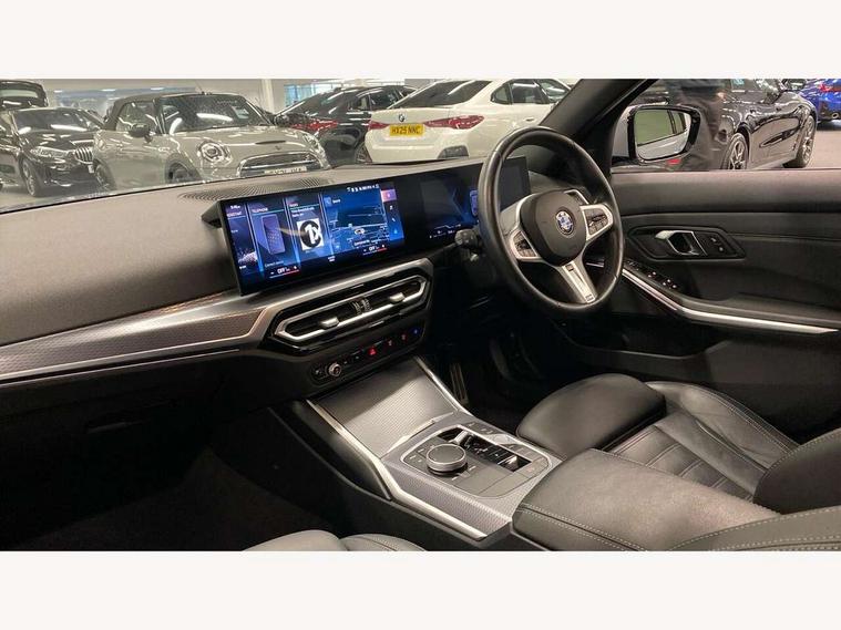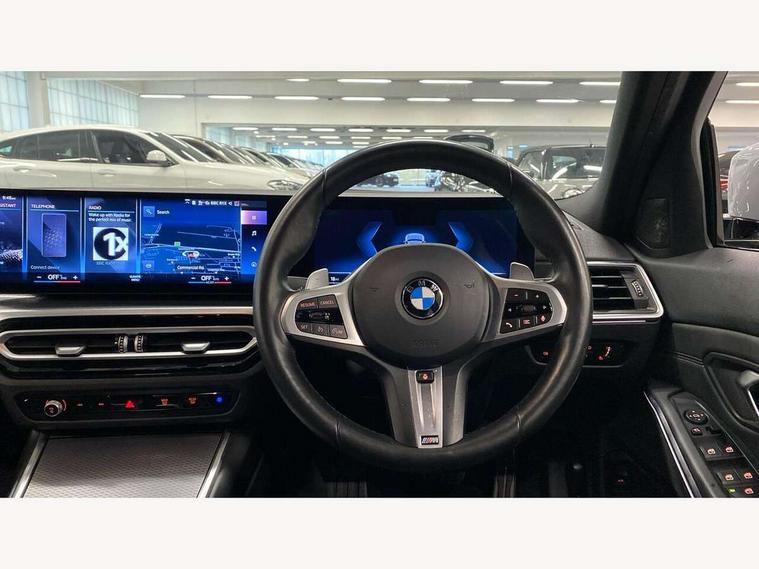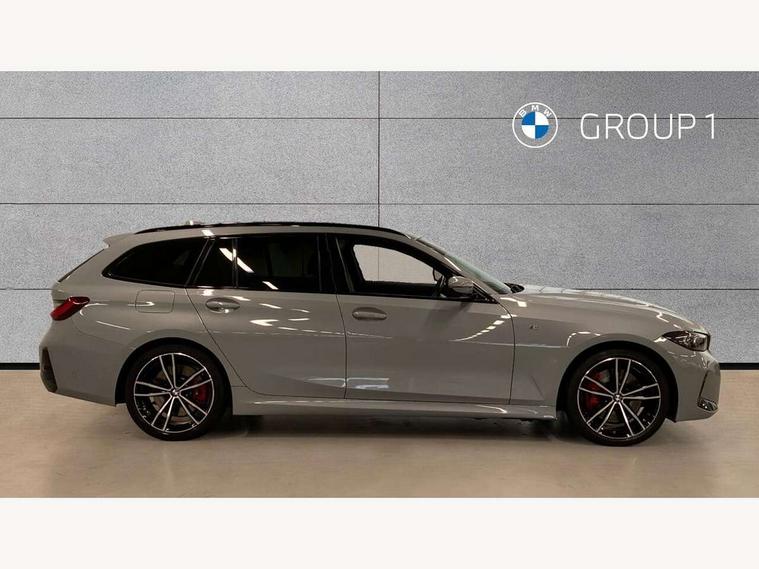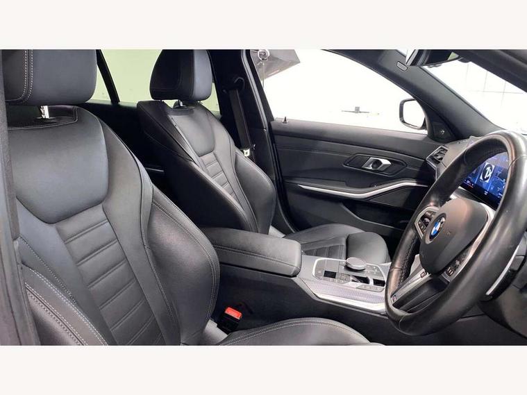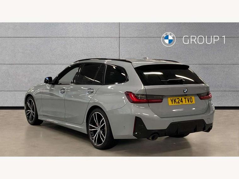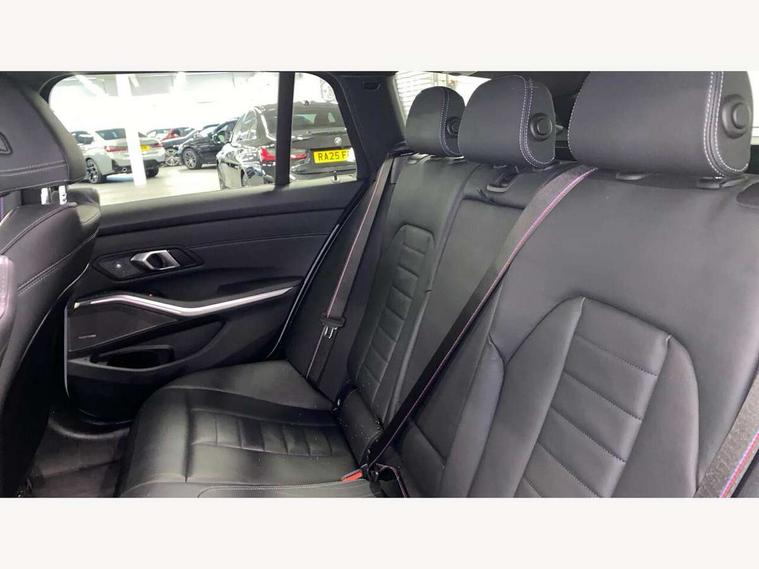 Active guard plus, Attentiveness assist, Automatic Start/stop button, BMW iDrive, BMW Teleservices, Condition based service, ConnectedDrive Services, Driving experience switch, Live cockpit plus with Navigation + 12.3" instrument display + 14.9" display, Intelligent voice assist, 2 USB, 4G LTE connect, Oil sensor for level and grade, Preparation for driver assistance, Shifting point display, Variable sport steering, Double joint spring strut front axle, Fuel tank breather system, M sport suspension, Sport automatic transmission with steering-wheel mounted gearshift paddles and launch control, DAB tuner, 3rd brake light, Acoustic glazing, Automatic headlight beam throw control with load dependent regulating reaction, dynamic compensation of braking dive and acceleration squat, BMW emblem, engine compartment lid and tailgate, Body colour roof fin, Door sill strips, Electric windows - front and rear, with open/close fingertip control, anti-trap facility and comfort closing, Follow me home headlight function, Front and rear bumper system with replaceable deformation elements, Front apron plastic in body colour, Fuel filler flap - right rear in body colour, Heated washer jets, High gloss shadow line exterior trim, High gloss shadow line roof rails, Illuminated bow type door handles in body colour drivers side with door lock, Interior rear view electrochromatic mirror with automatic anti dazzle function, LED headlights with LED daytime running lights and LED turn indicator, LED rear lights, Licence plate panel integrated into front bumper and tailgate, Matt black B-pillar finsher, Matt black window recess cover, Model designation on right side of tailgate, One piece front bumper cover including towing eye cover in body colour, Rain sensor with automatic headlight activation, Rear side wing doors, Rear wiper, Reversing lights, Side frame decorative moulding black matt, Visible exhaust tailpipe finisher, Welcome lights in interior and door handle area, 12V power socket in front storage compartment, 2 front cupholder in centre console with clamping elements and matt black inlay, 3 seat bench in 2nd row, 3 zone automatic air conditioning, 40:20:40 split folding rear seat with loading system, Ambient inside door handle light, Ambient light design projected onto the left and right entering and exiting area, Ambient lighting front and rear with 9 selectable colours, Ambient storage compartment lighting in the centre console, Anthracite headlining, Armrest integrated in front and rear door trim + front centre console armrest, BMW ID, Contour lighting in instrument panel and door trim panel, Cruise control operation in steering wheel, Driver backrest width adjustment, Folding rear centre armrest with 2 cupholders, Front and rear ambient footwell lighting, Front and rear door exit lighting (left / right), Front and rear headrests, Front and rear reading lights, Front and rear velour floor mats, Front sport seats, Heated front seats, Height adjustable mechanically and infinitely variable steering column, Illuminated armrest storage compartment, Illuminated glove compartment, Illuminated luggage compartment, Lashing eyelets in luggage compartment, M Sport multifunction leather steering wheel, Make-up mirror lights, Single front passenger seat, Standard seat for driver and passenger with manual adjustment, Sunvisors with vanity mirrors and ticket pocket, Toolkit located in luggage compartment, Connected pack professional - 3 Series Saloon/Touring, Interior and exterior mirror pack - 3 Series Touring/Saloon, M Aerodynamics package - 3 Series Saloon/Touring, M sport exterior styling pack - 3 Series Saloon/Touring, Storage compartment pack - 3 Series Saloon/Touring, 3x3 point rear seatbelts, BMW emergency call, Child locks on rear doors, Crash sensor activating of airbags, Unlocking doors, hazard warning lights, interior light, safety battery terminal, Driver and front passenger with seat occupancy detection for driver's and passenger side, Driver and passenger side airbags, body protection at side and airbags deploy from seat backrests, Dynamic brake control, Dynamic stability control + (DSC+) - Anti-lock Braking System (ABS) with brake assist and cornering brake control + Automatic Stability Control (ASC), Dynamic Traction Control - DTC, Electric parking brake including automatic hold function and automatic release of the parking brake when driving off, Electronic differential lock control (EDLC), Head airbags in 1st and 2nd row, head protection at side, curtain airbags open from headliner above 1st and 2nd row, Plastic fuel tank, Side impact protection, Tyre pressure monitoring with three level warning strategy, Ventilated front and rear disc brakes, Warning triangle and first aid kit, Alarm system, Centre lock switch, Closing system with central locking, Electronic vehicle immobiliser,