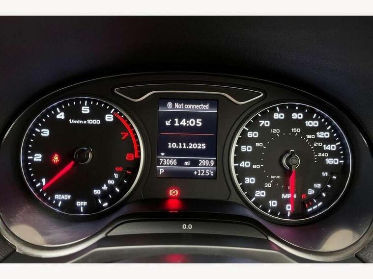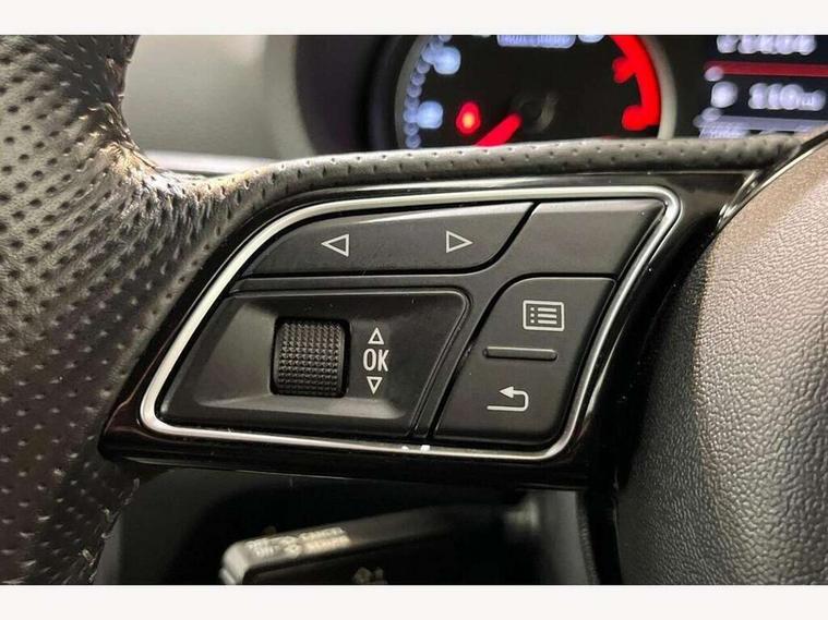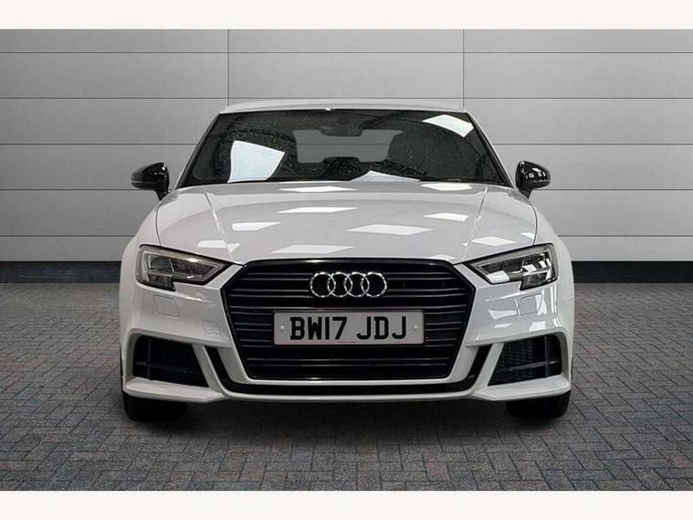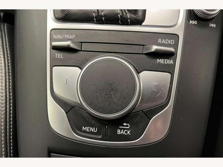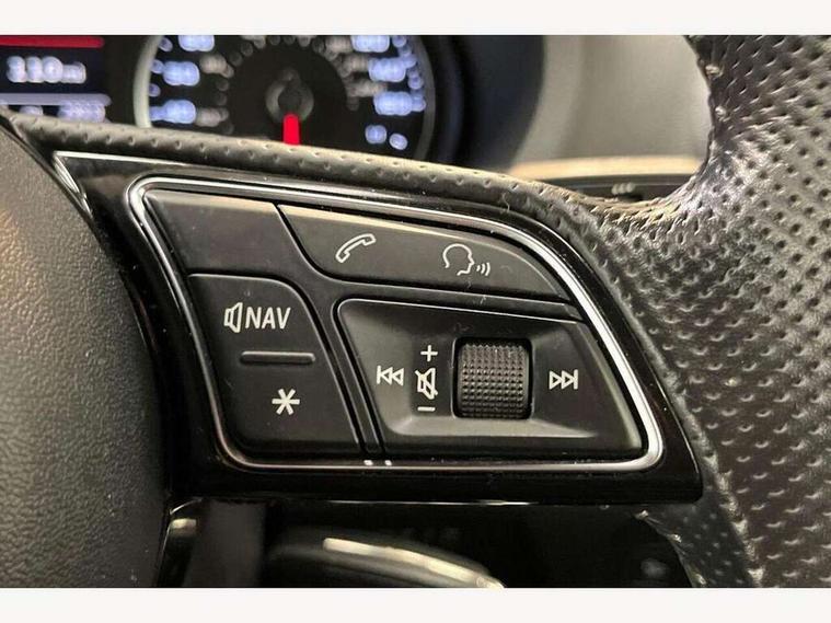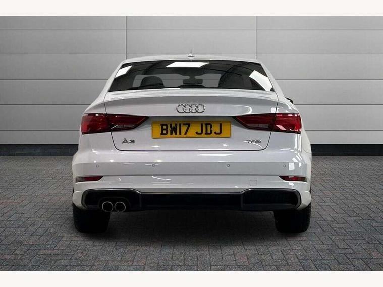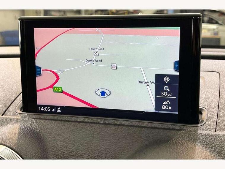 Audi connect, Audi drive select, Audi smartphone interface, Bluetooth interface, Colour driver's information system display, Service interval indicator, Voice control system, 2 USB ports, Audi music interface, Aux-in socket, DAB Digital radio, Aluminium side window trim, Automatic lights and wipers, Black door mirrors, Body colour bumpers, Body colour roof spoiler, Chrome exhaust tailpipes, Electric operated/heated door mirrors, Front and rear electric windows, Heated rear window, Heated windscreen washer jets, High gloss dark chrome radiator grille, LED daytime running lights, Privacy glass, S Line body styling, 3 adjustable rear headrests, 3 spoke flat bottom multi-function leather steering wheel including paddle shift, 4 lashing points to secure luggage, Adjustable front armrest, Black cloth headlining, Driver/passenger sunvisors, Dual zone electronic climate control, Front and rear interior lights with delay, Front/rear floor mats, Height/depth adjustable steering column, Illuminated door sills, Illuminated glovebox, ISOFIX child seat preparation+airbag deactivation, Jack and tool kit, Stainless steel pedals, Storage compartment in centre console, Storage compartments in doors, Storage under driver's seat, Black styling pack - A3/S3, LED interior light pack - A3/RS3, Light and rain sensor pack - A3 Saloon, Storage and luggage pack - A3/RS3, 3 point seatbelts on all seats, ABS/EBD, ASR, Curtain airbags, Driver and passenger side airbags, Driver/Front Passenger airbags, Drivers knee airbag, EDL, Electromechanical parking brake, ESC - Electronic Stability Control + traction control, Front passenger airbag deactivation, Seatbelt warning, Tyre pressure monitor, Warning triangle and first aid kit, Anti theft alarm, Anti-theft wheel bolts, Remote control central locking, Aluminium air vent surrounds, Aluminium trim elements, Space saver spare wheel,