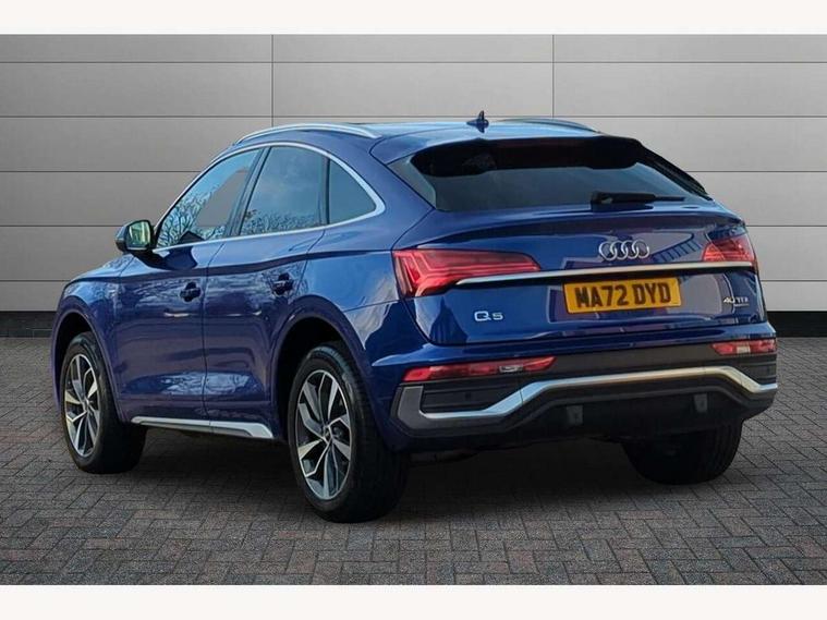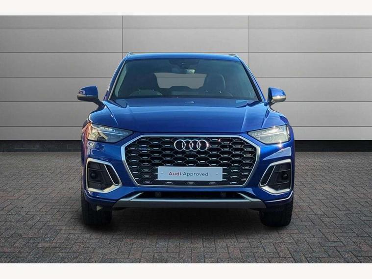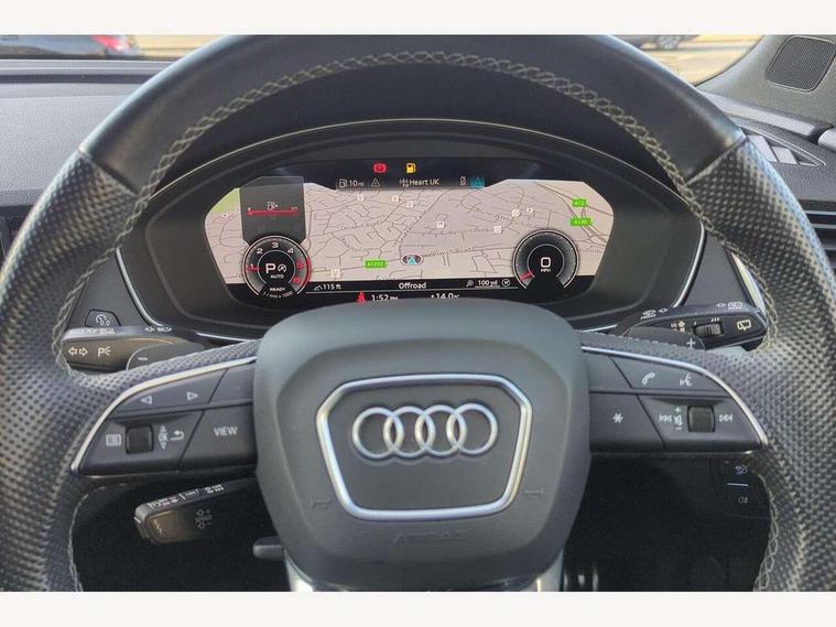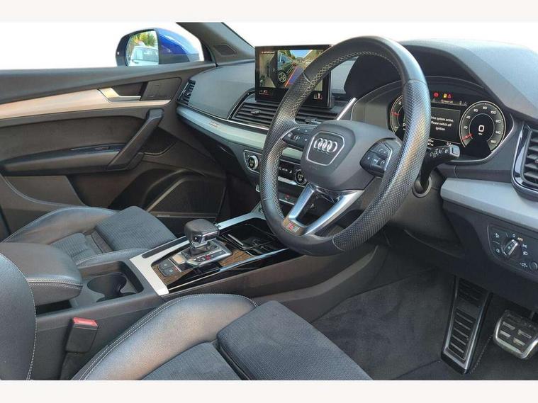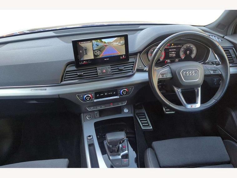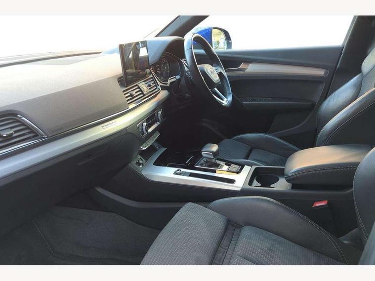 Audi connect safety and service (e-call), Audi connect with Amazon Alexa Integration, Audi drive select, Audi virtual cockpit plus with 12.3" screen and three different layout designs, Audi wireless smartphone interface, Automatic start-stop system with coasting functionality and efficiency programme, Bluetooth interface, Electro - mechanical power assisted steering, MMI navigation plus with 10.1" touch screen, Power tailgate, Reversing camera, Service interval indicator, Voice control system with Audi hotword activation "Hey Audi", Diesel particulate filter, Quattro on demand, S line sports suspension, 2 x USB charging port with aux input socket, DAB Digital radio, Acoustic windscreen, Aluminium roof rails, Audi matrix LED headlights with dynamic front and rear indicators, Auto dimming door mirrors, Auto dimming rear view mirror, Automatic headlights and windscreen wipers, Body colour door mirrors, Body colour rear diffuser with matt aluminium silver surrounds, Body colour underbody protection, Chrome plated exhaust trims, Daytime running lights, Door sills in Selenite silver, Electric adjustable/heated/folding door mirrors, Front air inlet surrounds in aluminium, Front and rear electric windows, Front radiator grille in honeycomb design, Headlight washers, High level LED brake light, Lower bumpers painted in contrast Manhattan grey, Rear chrome trim strip below lights, Rear privacy glass and rear side windows, Rear side wing doors, Rear wiper, Roof bars, S Line badges on the front wings, S Line front and rear bumpers, S Line rear spoiler, S Line side skirts, 3 rear headrests, 40:20:40 split folding 3 rear bench seat in 2nd row with rear centre armrest, Black cloth headlining, Comfort front centre armrest, Contrast stitching on seats, steering wheel and gear lever gaiter, Deluxe 3 zone electronic climate control, Front head restraints, Front/rear floor mats, Gear lever in black leather, Heated front seats, Height/reach adjustable steering column, Illuminated door sill trims with S logo, ISOFIX child seat mounting and top tether, Manual seat adjustment with 4-way electric lumbar support, Removable luggage compartment floor, Single front passenger seat, Stainless steel pedals, Sunvisors with vanity mirrors, Trunk roller cover, High gloss pack - Q5, LED interior light pack - Q5, 3 point seatbelts on all seats, 6 airbags - Driver, front passenger, curtain and side airbags, Electrically operated child locks on rear doors, Electromechanical parking brake, Electronic stabilisation control including ABS, ASR and EDL, Front passenger airbag deactivation, Hill descent control, Hill hold assist, Multi collision brake assist, Pop-up bonnet for pedestrian protection, Pre sense city, Seat belt force limiter, Seatbelt monitoring, Tyre pressure warning, Warning triangle and first aid kit, Anti theft alarm, Anti-theft wheel bolts, Keyless Go access/ignition system, Remote central locking, Matt brushed aluminium inlays,