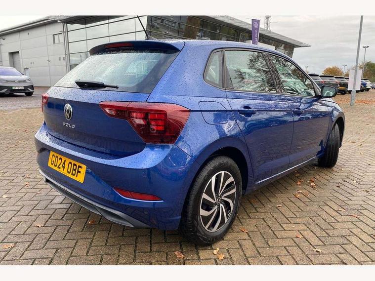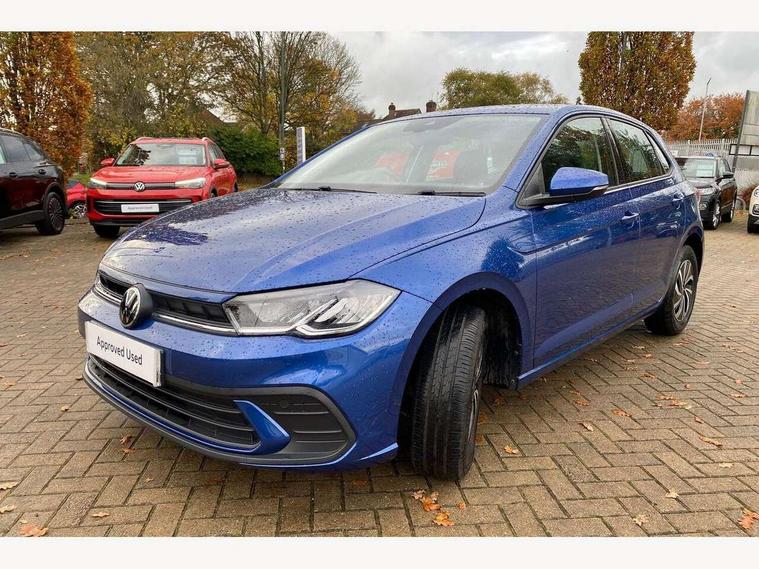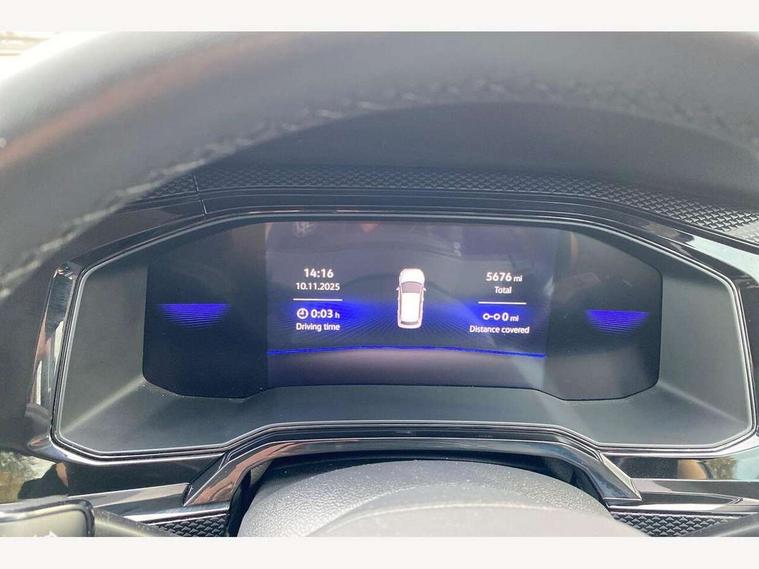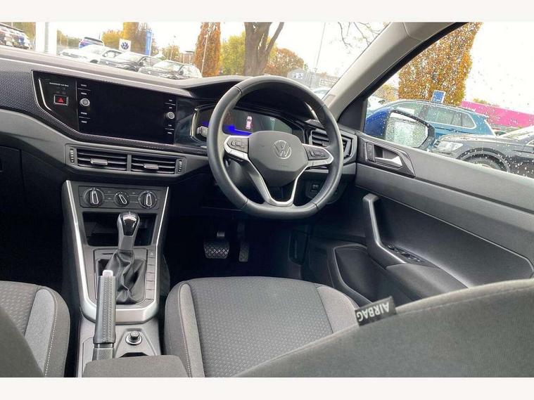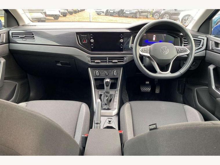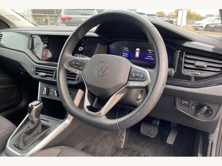 Adaptive cruise control with follow-to-stop and speed limiter, Advanced driver attention and drowsiness monitor, Bluetooth mobile phone interface, Dynamic road sign display, Emergency call service, Power assisted speed sensitive steering, Preparation for navigation system with media and internet package, Preparation for We connect and We connect plus, Speedo and rev counter, electronic odometer, trip, service interval display and exterior temperature gauge, Standard rear axle, Travel Assist - Lane keeping system and traffic jam assist, Travel assist including emergency assist, Trip computer, Warning signal and warning light for front and rear seatbelts not fastened, Washer fluid level indicator, Wireless app connect, Front wheel drive, Rear shock absorpion, Start-stop system with battery regeneration (recuperation - energy recovery during braking), DAB Digital radio, Diversity antenna for FM reception, Automatic dimming interior rear view mirror, Automatic headlight control with LED separate daytime running lights with coming/leaving home function, Body colour bumpers with chrome inserts, Body colour door handles, Body colour door mirrors, Electric front windows, Engine badge deletion, Headlight range adjustment, Heat insulating and laminated safety glass windshield, Heat insulating darkened glass in side and rear windows, Heat insulating glass windscreen, LED Headlights, LED rear combination lamps, Power folding adjustable/heated exterior mirrors and front passenger exterior mirror lowering function, Rain sensor, Rear electric windows, Rear fog light, Rear side wing doors, Rear windscreen washer and wiper with interval delay, Third brake light, 12V power socket in centre console, 2 front and 2 rear reading lights with switch off delay and dimmer, 2 USB-C ports in the front, 2 USB-C charging sockets on the center console in the rear, 3 rear head restraints, 60/40 split folding rear seat and rear seat bench not split, Ceramique roof lining, Chrome plated radiator grille inserts, air vent surrounds and light switch surrounds, Door and side trim panel, Driver and front passenger seat height adjustment, Driver/passenger sunvisors with illuminated vanity mirrors, Front centre armrest, Front seat backrest storage pockets, Front standard seats, Handbrake lever handle in leather, Hartley/Thomas cloth upholstery, Headliner in recycled material, Isofix child seat preparation easy-fit (for two outer rear seats, and front passenger seat) compatible with I-size, Leather trimmed gear knob, Luggage compartment cover, Luggage compartment lighting, Removable luggage compartment floor, Single front passenger seat, Standard climatic zones, Standard pedal cluster, Three spoke leather wrapped multifunction steering wheel with shifting paddles, Light and vision pack - Polo, 3 point height adj front seatbelts + pretensioners, 3x3 point rear seatbelts, ABS, Driver and front passenger airbag with front passenger airbag deactivation, Drivers and front passengers safety optimised head restraints, ESC (Electronic stability control) + EDL (Electronic Differntial lock) and ASR (Traction control), Extended and predictive pedestrian/ cyclist protection, Front assist with autonomous emergency braking (for Adaptive Cruise Control ACC up to 130 mph), Front curtain and side airbags with center airbag, Front disc brakes, Hill hold control, Manual child lock in rear doors, Rear drum brakes, Single tone horn, Tyre pressure loss indicator, Alarm with interior protection, Anti-theft alarm system with interior monitoring, backup horn, and towing protection, Anti-theft wheel bolts, Electronic engine immobiliser, Lava stone black gloss/matt decorative inserts in dash and front door panels, Low rolling resistance tyres,