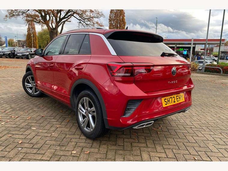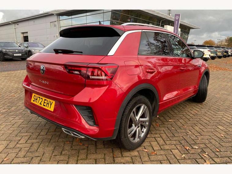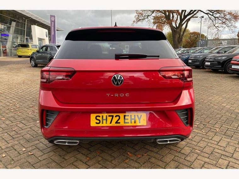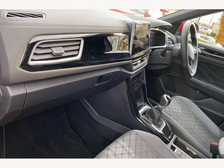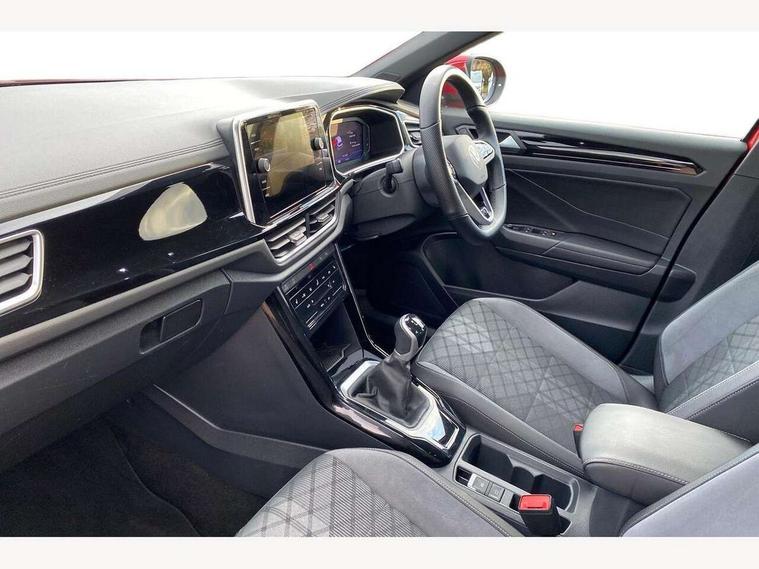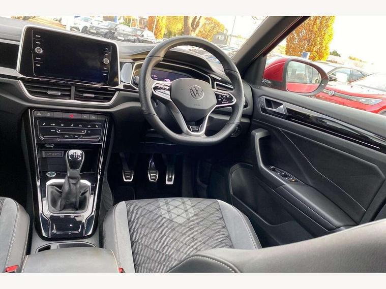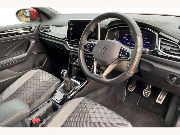 10.25" Digital cockpit pro, Bluetooth mobile phone interface, Driver alert system with fatigue detection, Driver tips and journey analysis, Emergency call service, Lane keeping system Lane Assist, Modified key software - reduce switch off time for key status change to Long no motion, Online services, Park assist including front and rear parking sensors, Service interval indicator, Tailgate/trunk lid release from outside, Think blue trainer driver tips and journey analysis, Warning sound and light for front seatbelts unfastened, Wireless app connect, Battery regeneration during braking, Start/stop function with battery regeneration, Diversity antenna for FM reception, Front and rear 6 speakers, Music playback - MP3, WMA and AAC files, Premium USB cable in choice of either Apple or Android smartphone compatibility, SD card slot, Simultaneous pairing of 2 compatible mobile devices, Title and cover art display, We Connect and We Connect Plus functionality, 3rd brake light, Auto dimming interior rear view mirror, Automatic hazard lights activation under emergency braking, Automatic headlight control with LED separate daytime running lights with coming/leaving home function, Extended roof spoiler, Exterior mirrors aspherical on driver side, convex on front passenger side, External USB type C socket and charging sockets, Front windscreen wiper with intermittent wipe and 4 position delay, Heated rear window, LED Plus headlamps, LED rear combination lamps, LED rear number plate lights, LED tail lamp rear comination lamps, Power windows with comfort operation and circuit breaker, R-Line design body coloured bumpers, Rain sensor, Rear exhaust tailpipe, Rear fog light on one side and reversing lights on both sides, Rear side wing doors, Rear wash/wipe with intermittent wipe setting, Remote electrically foldable door mirrors, puddle lights and reverse activated passenger's door mirror, 12V power socket in centre console, 3 rear head restraints, 3 seat bench in 2nd row, 4 load lashing points in luggage compartment, Air care climatronic air conditoning system with active combination filter and 2-zone temperature control, Black roof lining, Chrome plated radiator grille inserts, air vent surrounds and light switch surrounds, Door and side trim panel with leatherette insert, Drawer under drivers seat, Front + rear carpet mats, Front centre armrest, Front cupholders x 2, Front footwell illumination, Front reading light, Front scuff plates with R logo, Instrument lighting, white adjustable panel illumination, Interior ambient lighting and surround lighting, Interior light delay, Isofix child seat preparation, Leather gearshift handle, Load-through provision with cup holder when folded down ('Unsplit rear seat bench, split folding backrest, with centre armrest), Luggage compartment lighting, Single front passenger seat, Stainless steel pedals, Storage compartment in left and right luggage area, Storage compartment in rear doors, Storage compartments in driver and front passenger doors, Sunvisors with illuminated vanity mirrors, Variable boot floor, height adjustable and removable, Driver assistance pack without proactive passenger protection - T-Roc, 3 point height adj front seatbelts + pretensioners, 3 point seatbelts in outer rear with ECE label, ABS, Child locks on rear doors, Driver and front passenger airbag with front passenger airbag deactivation, Driver and front passenger safety-optimised head restraints, Drivers seatbelt reminder, Electronic parking brake, Electronic Stability Control (ESC) inc EDL (Electronic Differential Lock) and ASR (Traction Control), Front and rear passengers curtain airbag system including front side airbags, Front assist with city emergency braking and pedestrian monitoring, Front seat side impact airbags, Hill start assist, Predictive pedestrian protection, Rear disc brakes, Single tone horn, Tyre pressure loss indicator, Volkswagen roadside assistance, Alarm with interior protection, Anti-theft alarm system with interior monitoring, backup horn, and towing protection, Remote central locking with SAFELOCK, radio remote control with 2 remote control folding keys, Trims for alloy wheels,