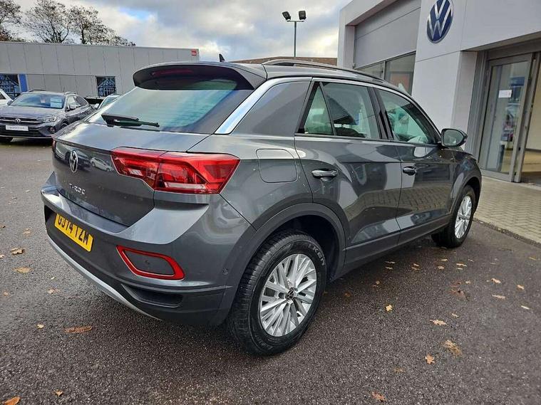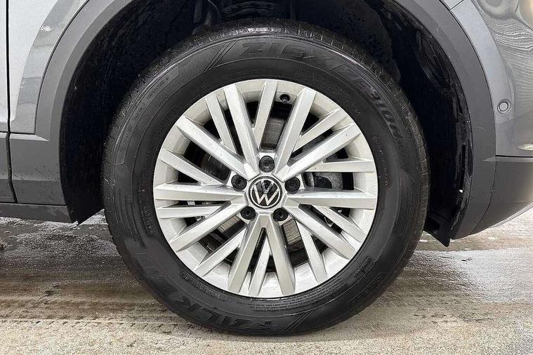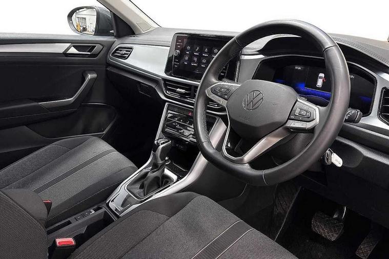 Advanced driver attention and drowsiness monitor, Dynamic road sign display, Emergency call service, Lane keeping system Lane Assist, Mobile phone interface, Modified key software - reduce switch off time for key status change to Long no motion, Online services, Park assist including front and rear parking sensors, Power assisted speed sensitive steering, Service interval indicator, Tailgate/trunk lid release from outside, Think blue trainer driver tips and journey analysis, Warning sound and light for front seatbelts unfastened, Wireless app connect, Wireless Smartphone charger, Battery regeneration during braking, Front shock absorption, Rear shock absorption chassis with increased ride height, Start/stop function with battery regeneration, DAB Digital radio, Diversity antenna for FM reception, Front and rear 6 speakers, Music playback - MP3, WMA and AAC files, Premium USB cable in choice of either Apple or Android smartphone compatibility, SD card slot, Simultaneous pairing of 2 compatible mobile devices, Title and cover art display, We Connect and We Connect Plus functionality, Auto dimming interior rear view mirror, Automatic hazard lights activation under emergency braking, Automatic headlight control with LED separate daytime running lights with coming/leaving home function, Black roof rails, Body coloured bumpers and radiator grille with chrome trim and front fog lamps with chrome bezel, Body coloured exterior mirror housings and door handles, Electrically adjustable and heated door mirrors, Extended roof spoiler, Exterior mirrors aspherical on driver side, convex on front passenger side, External USB type C socket and charging sockets, Front windscreen wiper with intermittent wipe and 4 position delay, Heated rear window, LED 3rd brake light, LED rear combination lamps, LED rear number plate lights, Power windows with comfort operation and circuit breaker, Rain sensor, Rear exhaust tailpipe, Rear fog light on one side and reversing lights on both sides, Rear side wing doors, Rear wash/wipe with intermittent wipe setting, Remote electrically foldable door mirrors, puddle lights and reverse activated passenger's door mirror, 12V power socket in centre console, 3 rear head restraints, 3 seat bench in 2nd row, 4 load lashing points in luggage compartment, Air care climatronic air conditoning system with active combination filter and 2-zone temperature control, Ambient lighting with mirror logo projection, Cloth upholstery, Door and side trim panel in cloth, Drawer under drivers seat, Driver/front passenger seat height adjustment, Front centre armrest, Front comfort sports seats, Front cupholders x 2, Front reading light, Front seat back storage pockets, Glove compartment door with light, Instrument lighting, white adjustable panel illumination, Interior light delay, Isofix child seat preparation, Leather gearshift handle, Load-through provision with cup holder when folded down ('Unsplit rear seat bench, split folding backrest, with centre armrest), Luggage compartment lighting, Lumbar support for driver's and front passengers seat, Non-folding front passenger seat backrest, Single front passenger seat, Storage compartment in left and right luggage area, Storage compartment in rear doors, Storage compartments in driver and front passenger doors, Sunvisors with illuminated vanity mirrors, Variable boot floor, height adjustable and removable, Driver assistance pack without proactive passenger protection - T-Roc Life/Match, 3 point height adj front seatbelts + pretensioners, 3 point seatbelts in outer rear with ECE label, ABS, Child locks on rear doors, City emergency braking and pedestrian monitoring, Driver and front passenger airbag with front passenger airbag deactivation, Driver and front passenger safety-optimised head restraints, Drivers seatbelt reminder, Electronic parking brake, Electronic Stability Control (ESC) inc EDL (Electronic Differential Lock) and ASR (Traction Control), Front and rear passengers curtain airbag system including front side airbags, Front disc brakes, Hill start assist, Predictive pedestrian protection, Rear disc brakes, Two tone horn, Tyre pressure loss indicator, Volkswagen roadside assistance, Alarm with interior protection, Pewter matt decorative inserts for intrument panel, centre console and door panels at the front, Trims for alloy wheels,