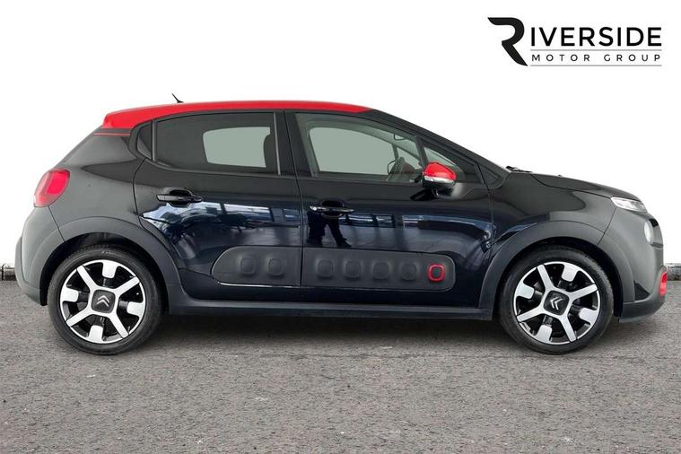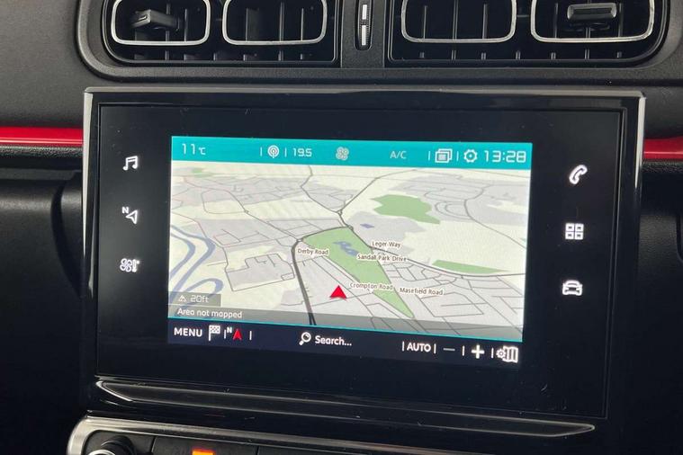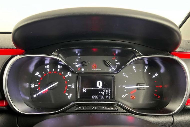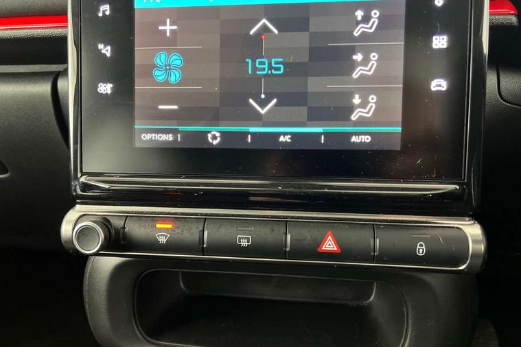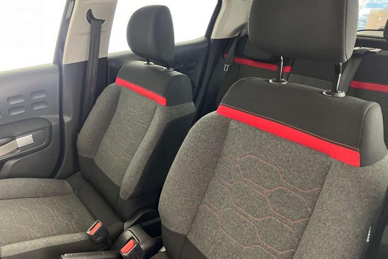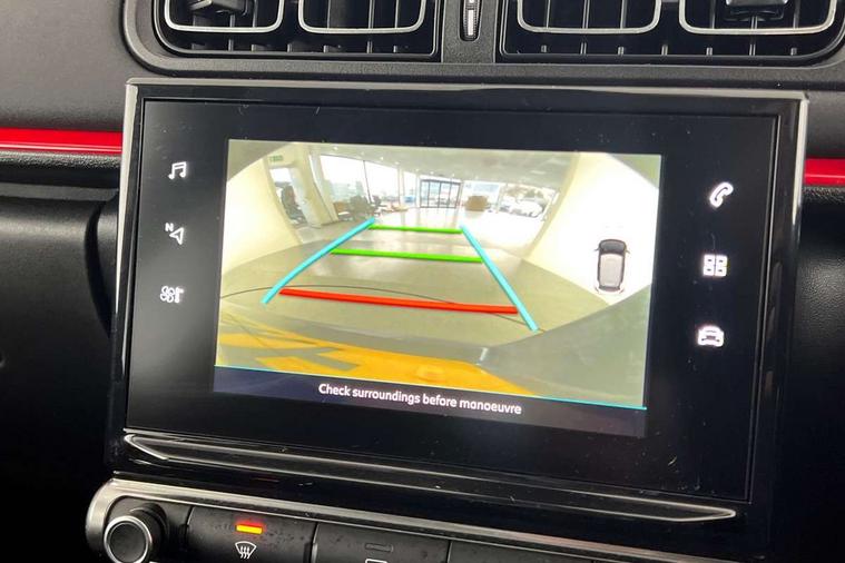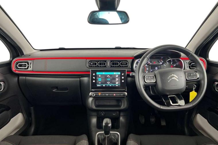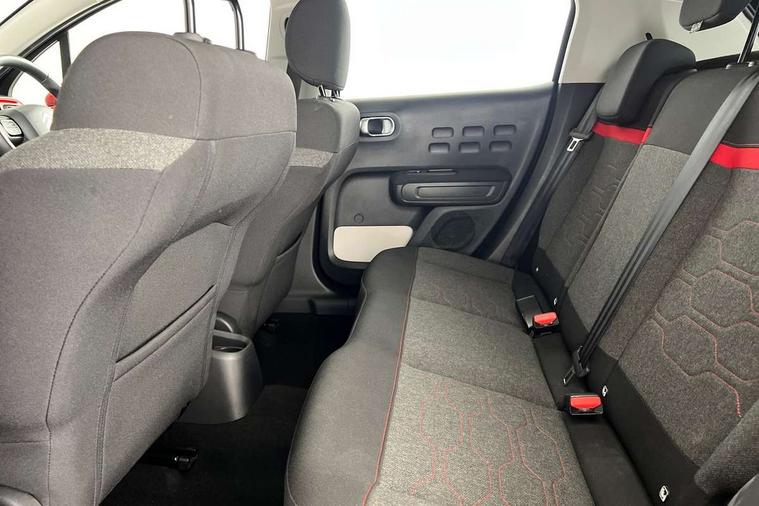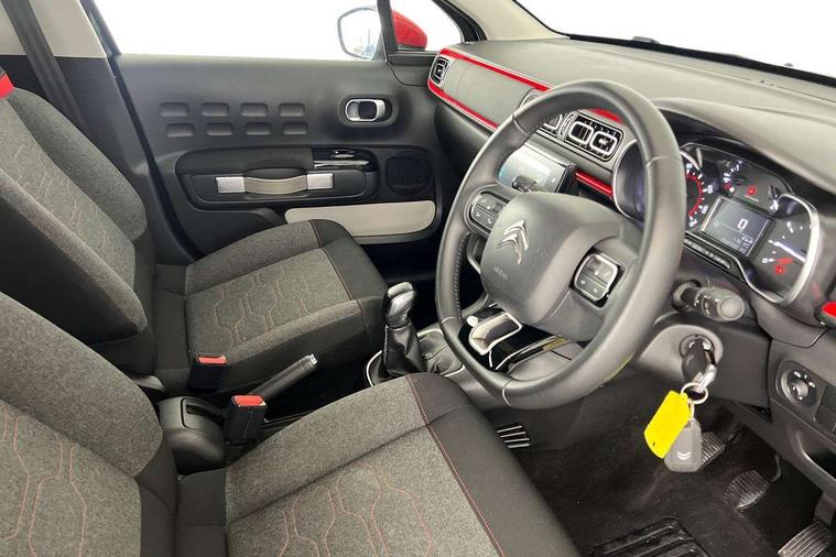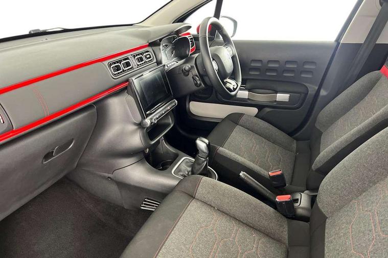 7" colour touch screen, Citroen connected CAM with automatic lights and wipers, electrochrome rear view mirror, Coffee Break Alert, Cruise control + speed limiter, Exterior temperature display, Forward collision warning, Gear efficiency indicator, Lane departure warning system, Mirror screen with mirror link, apple carplay and android auto, Multi function on board trip computer, Rear parking sensor, Rev counter, Reversing camera, Speed limit recognition and speed warning, Variable assistance power steering, Auxiliary input socket, Bluetooth hands free and media streaming, Citroen connected DAB radio with 6 speakers, Steering wheel mounted audio controls, Airbump coloured highlight, Black airbump, Body colour bumpers, Body colour painted door handles, Dark tinted rear windows, Electric adjustable/heated/folding door mirrors, Electric front windows + one touch + anti-pinch, Electric rear windows + anti-pinch, Front fog lights, Height adjustable halogen headlights, LED daytime running lights, Metallic paint, Rear wiper, Roof colour fog light surround, Sport red roof, Wheel arch extensions, 12 volt socket in cabin, Automatic air conditioning, Boot light, Cloth upholstery, Driver and passenger's sun visor with courtesy mirror, Flair edition carpet mats, Front courtesy reading lights, Front cupholders x 2, Front seat and rear pockets, Height adjustable driver's seat, Height adjustable front headrests, Height/reach adjust steering wheel, Lashing eyelets in boot, Leather gear knob, Leather steering wheel with satin chrome inserts, Luggage style interior door handles, Rear cupholder, Rear isofix mounting points (outside seats) with top tether, Split folding rear seats, Three height adjustable rear head restraints, Technology pack - C3, Urban red ambiance pack - C3, ABS with Electronic brakeforce distribution and Emergency braking assistance, Airbags - Driver/front passenger, front lateral and curtain, Drivers/passengers and rear seats unfastened seat belt warning, Electric child locks, Electronic stability control, Five 3 point inertia reel seat belts, Front seatbelt pretensioner, Hill start assist function, Tyre pressure monitor, Alarm, Immobiliser, Locking wheel nuts, Remote central locking + deadlocks, Space saver spare wheel,