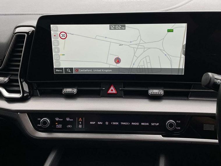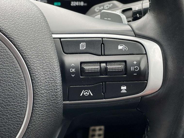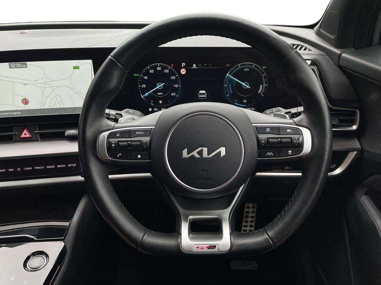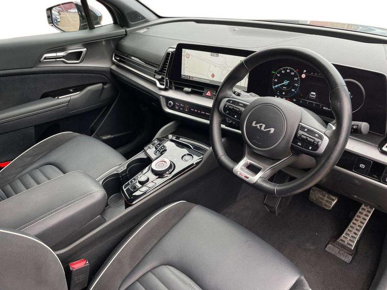 12.3" Display with navigation, 12.3" supervision colour cluster display, 360 degree around view monitor, Apple car play/Android Auto with voice control, Blind spot collision avoidance assist, Blind spot view monitor, Drive mode selector, E-call, Forward collision avoidance assist (FCA) - city/pedestrian/cyclist/junction covering, Front and rear parking sensors, Highway Driving Assist (HDA), Intelligent speed limit assist, Kia Connect (UVO), Lane Following Assist (LFA), Lane keep assist, Low washer fluid warning, Parking collision avoidance assist (PCA), Remote smart parking assist, Reversing camera system integrated into centre fascia screen, Smart cruise control with stop and go functionality, Smart power tailgate, Speed sensitive power steering, Trip computer, Windscreen washer level indicator, Wireless Smartphone charger, Intelligent Stop and Go, Bluetooth audio streaming, DAB Radio with MP3, Harman Kardon premium sound system, Rear USB port, Steering wheel mounted audio controls, USB C type charging ports on centre console, USB C type charging ports on side of front seats, USB port for connection of a media device, All round electric windows with drivers and front passenger auto up/down function, Automatic headlight control system, Automatic window defogger, Backlite glass heated with timer, Body colour and black bumper with silver accents, Body colour exterior door handles, Body colour radiator upper garnish and door garnish, Dual LED adaptive headlamps, Electric panoramic glass sunroof (Electric one touch with safety function), Electrically adjustable/heated/folding door mirrors with LED indicators, Front and rear chrome skid plates, Gloss black door mirrors, Gloss black radiator grille, Gloss black side sill and wheel arch body mouldings, Glossy black roof rack, High beam assist, Interior electrochromic mirror, LED daytime running lights, LED front fog lamps, LED High mounted stop light, LED rear combination lamp, Rain sensing wipers with aero blades, Rear fog lamp, Rear privacy glass, Rear side wing doors, Rear spoiler, Rear wiper, Satin finished beltline, Tinted rear glass, Trailer stability assist, 10 way driver/8 way passenger electrically power adjustable seats, 12V power socket in front centre fascia and luggage compartment, 3 seat bench in 2nd row, 3 x passenger assist grips, 40/20/40 split folding rear seat, All-round height adjustable headrests, Ambient lighting, Black headlining, Centre console storage box, Cupholders in rear armrest, D-Shaped sports leather steering wheel and perforated inserts with GT-Line logo, Door courtesy lamps, Drink holder at centre armrest, Driver and front passenger side sunvisors with illuminated vanity mirrors, Driver seat memory function, Drivers seat power lumbar support, Front and rear door storage, Front seat and rear pockets, Front/rear centre armrests, Gear shift indicator, Glovebox illumination, Heated front and outer rear seats, Heated steering wheel, Interior door lock/unlock function, ISOFIX Child seat top tethers and anchor fixings outer rear seats, LED interior personal lamp, LED lighting in overhead console, Luggage area LED light, Luggage area load cover, Luggage net with hooks, Metal paint interior door handles, Paddle shift controls, Rear cabin light, Rear coat hooks, Single front passenger seat, Sports pedals, Suede leather upholstery, Three zone climate control, Tilt/telescopic adjustable steering wheel, Ventilated front seats, Ventilation ducts to rear compartment, Active front headrests, All round 3-point seatbelts, Anti-lock braking system (ABS), Dual front side airbags, Dual horn, Electronic parking brake, Electronic stability control with downhill brake control, Front passenger airbag cut-off switch, Front seatbelt pretensioners + load limiters, Height adjustable front seatbelts, Hill start assist control (HAC), Impact sensing auto door unlocking, Multi collision brake assist, Rear door child safety locks, Rear seat alert system, Traction control, Twin curtain airbags, Twin front airbags, Tyre pressure monitoring system, Advanced anti-theft system including immobiliser and alarm, Door deadlocks, Engine Start/Stop Button with Smart Entry System, Locking wheel nuts, Speed sensitive auto door locking, Visible vehicle identification number, Aluminium pattern finish centre fascia and door garnish, 18" GT-Line alloy wheels, Michelin tyres, Tyre mobility kit,