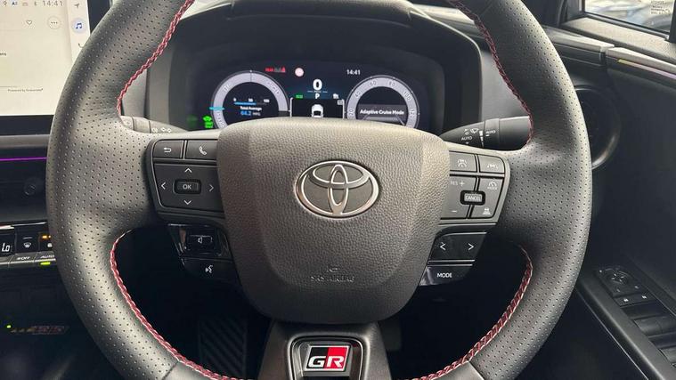 12.3" Digital Combimeter, 12.3" multimedia display screen, 4 rear parking sensors, Acceleration suppression at low speed, Adjustable speed limiter, Blind spot monitor, Bluetooth connectivity, Built-in and cloud navigation, Colour multi information display, Digital speedometer, Digital tachometer, eCall emergency call system, Electric power steering, Emergency driving stop system, Emergency steering assist, Front parking sensors with auto braking, HUD - Head up Display, Hybrid system indicator, I/P center cluster X, Instrument finish panel, Intelligent adaptive cruise control, Intelligent parking sensors (objects and vehicle), Lane Departure Alert (LDA) switch on steering wheel, Lane departure alert with steering control, Lane trace assist, Memory on speed limiter, MyT connected services, Power tailgate, Pre collision system with emergency steering assist, Pre collision system with intersection detection, Proactive driving assist (PDA), Push button tailgate release, Rear cross traffic alert, Remote boot door release in cabin, Reversing camera, Reversing camera display in audio screen, Road sign assist - RSA, Safe exit assist, Smart entry and push button start, Smart voice assist, Start and stop, Static guide lines on reversing camera, Toyota Smart Connect multimedia system with wireless Smartphone integration incl Apple CarPlay, Voice recognition, Wireless phone charger, Electric accelerator pedal, Fast charger 32A Mennekes cable, Front and rear stabilizers, Vehicle Stability Control (VSC), 9 loudspeakers, Aux-in connector, DAB Radio (Digital Audio Broadcasting), Front USB Type-C connector, JBL Premium Sound System, Rear USB Type-C connector, Road events, Toyota touch 2 with go navigation, USB connector integrated with radio and CD player, Anti-jam protection on power windows, Auto dimming rear view mirror, Auto high beam, Auto up and down function on all power windows, Auto wipers, Automatic headlights, Automatic headlights cut-off, Automatic rear flashing hazard lights, Automatically retractable door mirrors, B - Pillar in Black, Bi-tone+ with black rear bumper extension, Black bi-tone roof, Black centre air vent, Black painted insert on boot door, Black side air vents, Black wheel arch mouldings, Body colour door handles, Body coloured front bumper, Clear headlights design, Dark grey surround on lower front grille, Electric heated door mirrors, Emergency brake-light signal (EBS), exhaust tail pipe and diffuser, Flush front and rear door handles, Follow me home headlights, Front and rear power windows, Fuel caution label, G-mesh front side grille, Gloss black door belt moulding, Gloss black lower front grille, GR sport front aluminium scuff plates, Headlight cut off reminder, LED daytime running lights, LED fog lights, LED front light guide, LED Headlights, LED High mounted stop light, LED rear brake lights, LED rear combination lights, LED reverse light, Manual headlight levelling, Noise reduction layer on front windows, Noise reduction layer on windscreen, Piano Black Front Side Grille, Piano black rear spoiler, Power adjustable door mirrors, Pre wiring for towing hook, Premium Bi-tone Black Rear Execution, Privacy glass, Puddle lights, Rain sensor, Rear bumper with dark grey insert, Rear fog lamps, Rear side wing doors, Rear tailgate, Rear window defogger, Rear window wiper, RHD aiming, Satin chrome centre air vent surrounds, Satin chrome insert on centre air vents, Satin chrome insert on side air vents, Satin chrome side air vent surrounds, Silver large centre cap surrounds, Standard roof, Turning signal integrated in door mirrors (LED), UV-filter on driver and passenger windows, UV-filter on rear windows, Variable front intermittent wipers, Wing liner front and rear with sil, 12v power outlet - front, 2 rear coat hooks, 220v power output in luggage compartment, 3 bench rear seats in 2nd row, 3 rear headrests, 3 spoke premium synthetic leather steering wheel, 60/40 split folding 2nd row rear seats, Adjustable rear headrests, Assist grips front and centre pillar, Audio and telephone switches on steering wheel, Boot light, Boot under floor storage, Clean air filter, Cover front console box, Customisable multi-ambient illuminated entry system, Customisable multi-ambient lighting on front doors, Dark grey interior door handles, Door Edge Protection Film, Driver and front passenger personal light, Driver and front passenger Whiplash Injury Lessening seats, Dual zone automatic air conditioning, Floor mats - border/stitching, Front console box, Front cupholders, Front door pockets, Front headrests, Front passenger seatback pockets, Front premium sports seats, Front room light, Full-flat loading, Glovebox with internal light, GR logo on steering wheel, Hard tonneau cover, Heat pump system with humidifier, Heated driver and front passenger seats, Heated steering wheel, Hooks for luggage holding net, Hybrid key cover, ISOFIX child restraint system, LED Overhead Console light, Light on driver sun visor, Light on passenger sun visor, Luggage floor board with protection mat, Manual telescopic steering wheel, Manual tilt steering wheel, Manually height adjustable front passenger seat, Manually reclining front passenger seat, Manually sliding front passenger seat, Mat Fitment, Memory function on driver seat, Microphone on front personal light, Mirror on driver sun visor, Mirror on passenger sun visor, Multimedia switches on steering wheel, Nanoe-X air purifier, Pollen air filter with deodorising odour eliminator, Power adjustable lumbar support on driver seat, Power height adjustable driver seat, Power reclining driver seat, Power sliding driver seat, Power tilting cushion on driver seat, Rear door cup holder, Rear door pockets, Rear passenger personal lights, Red stitching on front door armrests, Red stitching on steering wheel, Remote air conditioning, Single compartment glovebox, Single front passenger seat, Slow opening on lower glovebox, Suede front door trim, Suede rear door armrest, Suede/s