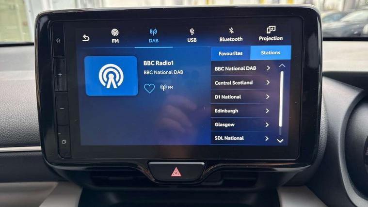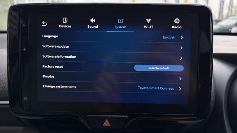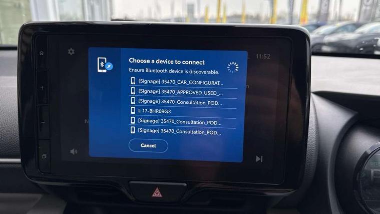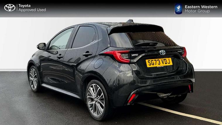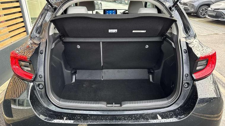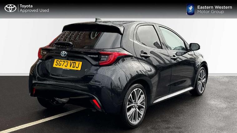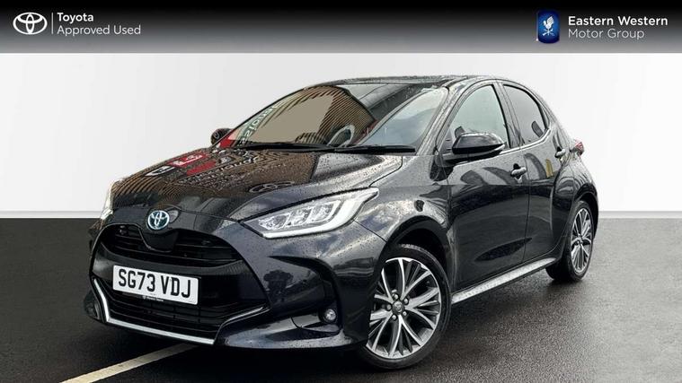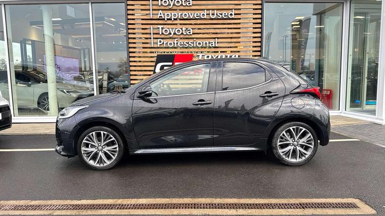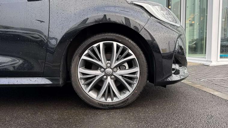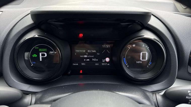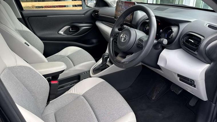 Adaptive cruise control, Adjustable speed limit with speed warning, Blind spot monitoring, Bluetooth connectivity, Colour binocular inspired displays with digital speedometer, E-call, Electric power steering, Hybrid energy display, Multi information display switches on steering wheel, Reversing camera, Smartphone integration with Apple CarPlay and Android auto, Tailgate, Touch 2 navigation system, Voice recognition, Vehicle Stability Control (VSC), 6 speakers, 9" HD multimedia display touch screen with Toyota smart connect, USB connection, Acoustic windscreen glass, Auto windscreen wipers, Automatic headlights, Automatically retractable door mirrors, Body coloured door mirrors, Electric adjustable heated door mirrors, Follow me home headlights, Front auto power windows with anti jam protection, Full LED rear lights, LED daytime running lights, LED front fog lights, LED front light guide, LED Headlights, LED High mounted stop lamp, LED Indicators, LED rear light guide, Manual headlight levelling, Painted chequered front grille, Rain sensor, Rear auto power windows with anti jam protection, Rear privacy glass, Rear side wing doors, Rear spoiler, Rear wiper, Satin lower front grille, Shark fin antenna, Turning signal integrated indicators in door mirrors, Variable front intermittent wipers, 3 adjustable rear headrests, 3 seat bench in 2nd row, 3 spoke leather steering wheel, 60/40 split folding rear seat, Active headrests, Adjustable boot height, Coat hooks in rear grab handles, Cup holders (2 front & door), Data Communication Module (DCM) connected services, Dual zone automatic air conditioning, Fabric seat with partial synthetic leather upholstery, Front armrest, Front sport seats, Glovebox, Grey roof lining, Height adjustable driver's seat, Height adjustable passenger seat, Isofix seat fixing, Leather gearshift, Map pockets on the backs of the front seats, Pollen filter, Shopping bag hooks, Single front passenger seat, Tilt/telescopic steering column, Parking pack - Yaris, 3 point seatbelts on all rear seats, ABS+EBD+Brake assist, Electronic parking brake, Emergency brake light system (EBS), Front passenger airbag on/off switch, Front seatbelt reminder, Hill start assist control (HAC), Rear child proof door locks, Rear seat belt reminder, Supplemental Restraint System (SRS) 8 airbags: Driver & passenger's airbags, dual side curtain airbags, side impact airbags, front centre airbag, Toyota Safety Sense 2, Precollison + Night time Pedestrian & Cyclist Detection, Lane Trace Assist, Auto High Beam, Intelligent ACC & Road Sign Assist, Tyre pressure warning system, 2x Master key, Alarm/immobiliser, Keyless smart entry with push button start, Remote AC via MyT, Remote locking via MyT, Remote powered central double locking doors, Satin chrome interior styling, Soft touch instrument panel, Space saver spare wheel,