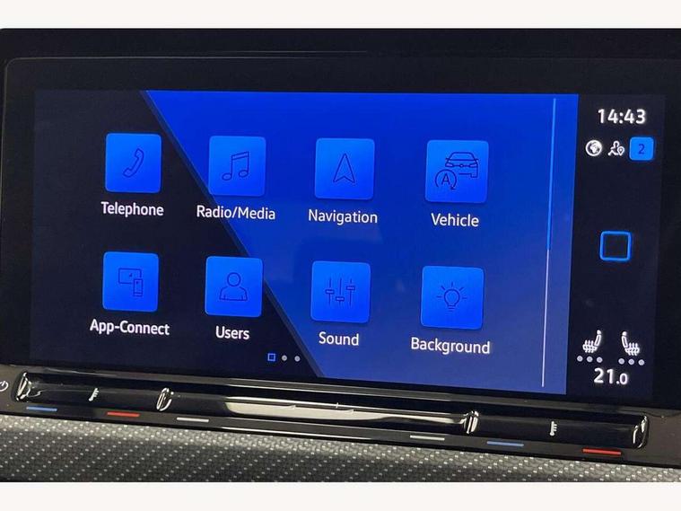 Adaptive cruise control (ACC) with speed limiter and front assist (reacting to vehicles pedestrians and cyclists), Car2X communication, Digital cockpit pro - 10.25" high resolution TFT dash display screen with customizable menus and information, Driver alert system, Dynamic road sign display, eCall - Emergency call service for SOS calls to emergency response, Lane assist, Mobile phone interface with wireless inductive charging function, Multifunction camera for distance control, PAS, Speedo, rev counter, electronic odometer, trip, service interval display, exterior temperature and fuel gauge, Start/Stop function, USB-C ports in the front and rear centre console with increased charging performance, Warning buzzer and light for front seatbelts unfastened, Wireless app connect, Petrol Particulate Filter, XDS electronic differential lock for improved traction and handling, Premium USB cable in choice of either Apple or Android smartphone compatibility, Ambient lighting, exterior illuminated styling elements at the sides, Auto dimming rear view mirror, Automatic headlamp activation with Coming home and Leaving home feature, Automatic headlights, Body colour door handles, Body colour door mirrors with integrated indicators, Body colour rear roof spoiler, Electrically heated and adjustable door mirrors with memory feature, Front and rear electric windows, Heat insulating glass windscreen, Heated rear windscreen, High level 3rd brake light, Highway light, LED License plate illumination, R Line body coloured bumpers, Rain sensor, Rear fog light on one side and reversing lights on both sides, Rear lights incorporating LED technology, Rear side wing doors, Rear tinted glass 65% light absorbing from B pillar backwards, Rear windscreen washer and wiper with interval delay, Welcome light, 12V socket in front centre console, 12V socket in luggage compartment, 3 rear head restraints, 3 seat bench in 2nd row, Ambient lighting - Customisable 30 colour ambient lighting, Black roof lining, Brushed stainless steel pedals, Chrome plated surround to electric mirror button, window switch and air vent surrounds, Drivers and front passengers sun visors with vanity mirrors, Front + rear carpet mats, Front centre armrest with storage compartment, Front cupholders x 2, Front passenger seat, Front reading lights x 2 incorporating LED technology, Front seat lumbar support adjuster, Front sports seats, Glovebox, Height adjustable front seats, Height and reach adjustable steering wheel, Isofix child seat preparation for 2 rear child seats and front passenger seat, Luggage compartment lighting, R Line door and side trim panel, R Line front seats integrated head restraints, R-Line leather wrapped multi function sports heated steering wheel, Removable luggage compartment cover, Sardegna cloth upholstery with front and outer rear seats Art Velour inner sides of bolsters, Split folding backrest with centre armrest and unsplit rear seat bench, Titanium black instrument panel, Woven fabric storage compartments in front and rear doors, 3 point height adj front seatbelts + pretensioners, 3 rear three point seatbelts, ABS, Child locks on rear doors, Driver and front passenger airbag with front passenger airbag deactivation, Drivers and front passengers safety optimised head restraints, Electronic parking brake with auto hold, ESC (Electronic Stability Control), Extended pedestrian protection measures, Front and rear passengers curtain airbag system including front side airbags, Front centre airbag, Front disc brakes, Front side airbags with curtain airbags, Rear disc brakes, Two tone horn, Tyre pressure monitoring system, Alarm with interior protection and deactivation via infotainment system, Electronic engine immobiliser, Carbon grey decorative inserts in dash and front door trim panels, High gloss black centre console, Space and weight saver spare wheel,