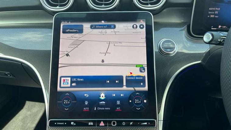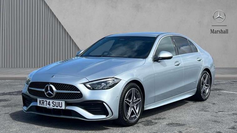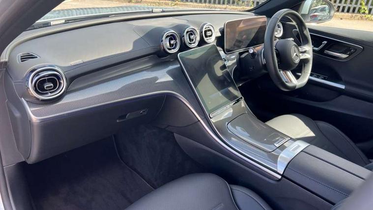 11.9" high resolution multimedia colour display, 12.3" digital instrument cluster display, Active lane keeping assist, Active parking assist with PARKTRONIC, Attention assist, Blind spot assist, Cruise control with speedtronic variable speed limiter, DYNAMIC SELECT with a choice of driving modes (Comfort, ECO, Sport, Sport+, Individual), E-call, Extended MBUX functions, Finger print sensor, Fluorescent jacket for driver, Hard disc navigation, MBUX navigation premium, Mercedes me remote services, Outside temperature gauge, Service indicator (ASSYST), Smartphone integration, Sports direct steer speed sensitive steering, Status display for rear seat belts in instrument cluster, Traffic sign assist, Wireless charging system for mobile devices, 9G TRONIC 9 speed automatic transmission, Petrol Particulate Filter, Sport suspension, DAB Digital radio, MBUX multimedia system, Adaptive brake lights, Adaptive high beam assist, Ambient lighting with projection of brand logo, AMG body styling front apron, rear apron and side skirts, AMG Line exterior, Body coloured bumpers, Body coloured door mirrors, Electric windows with one touch opening/closing and obstruction sensors, Electrically adjustable and heated door mirrors, Heat insulating dark tinted glass, LED daytime running lights, LED high performance headlamps, LED Indicators, LED tail lights, LED third brake light, Radiator diamond grille with integrated Mercedes Benz star and louvre silver with chrome pins, Rain sensor with automatic windscreen wiper activation, Rear boot, Rear side wing doors, Two visible exhaust pipes integrated into rear bumper, 3 seat bench in 2nd row, 40:20:40 split folding rear bench seat, Ambient lighting premium, AMG floor mats, AMG line interior, Artico man-made leather upholstery, Auto Mercedes-Benz child seat recognition sensor, Black roof liner, Double cupholder in centre console, Electrically height/reach adjustable steering column, Folding rear seat backrest, Front and rear head restraints, Gearshift paddles on steering wheel, Heated front seats, Illuminated door sills with Mercedes Benz lettering, Illuminated glove compartment stowage, Multifunction sports steering wheel in nappa leather, Rear top tether child seat ISOFIX attachment, Single front passenger seat, Sports seats, Sunvisors with illuminated vanity mirrors, THERMATIC 2 zone automatic climate control, Interior light package - C Class, Memory package - C Class, Mirror package - C Class, Parking package with reversing camera - C Class, Stowage space pack - C Class, USB package plus - C Class, 3 rear 3 point seatbelts, Active bonnet pedestrian safety measure which detects an impact and raises bonnet, Active brake assist, Adaptive brake system with HOLD function and brake drying in the wet, Anti-lock braking system (ABS), Black seat belts, Brake calipers with Mercedes-Benz lettering + perforated front brake discs, Child proof door locks, Drivers knee airbag, Drivers pelvis airbag, Dual stage driver/passenger airbags, Electric parking brake, Electronic Stability Programme (ESP), Front centre airbag between driver and front passenger seats, Front side airbags, Tyre pressure monitoring system, Warning triangle and first aid kit, Window airbags for driver, front passenger and rear passenger, Antitheft alarm system, Interior monitoring system and Increased antitheft protection, Central locking with interior switch, automatic locking and crash sensor with emergency opening function, Chrome surround electric key, Keyless Go, Urban guard vehicle protection plus, Dashboard, instrument panel and beltlines in ARTICO man made leather in nappa look, Metal structure trim element with centre console in metal structure finish, 18" AMG 5 spoke design aerodynamically optimised alloy wheels painted in tantalite grey with high sheen finish, TIREFIT with tyre inflation compressor,