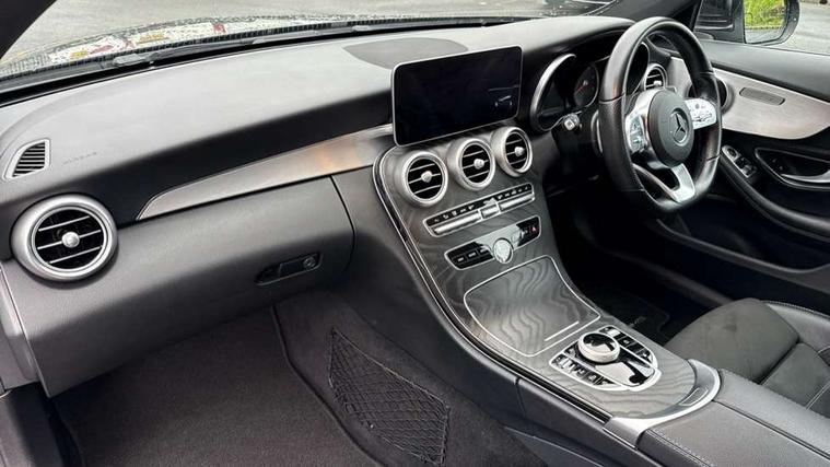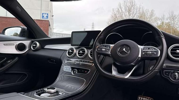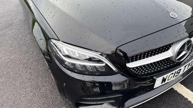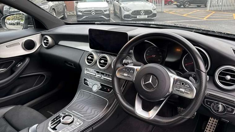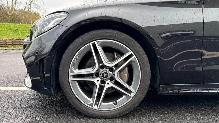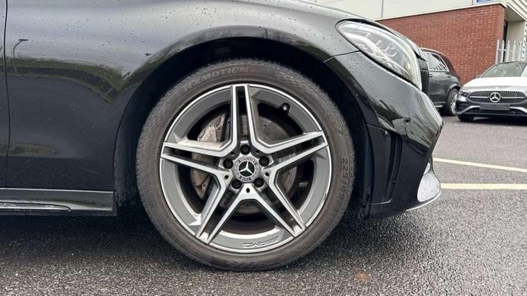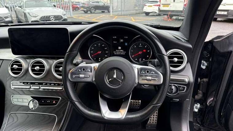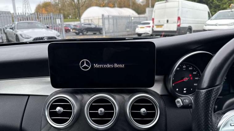 10.25" display screen, Active park assist with parktronic system, Attention assist, Bluetooth interface for hands free telephone, Collision prevention assist plus, Cruise control with speedtronic variable speed limiter, DYNAMIC SELECT with a choice of driving modes (ECO, Comfort, Sport, Sport+ and Individual), Instrument cluster with 5.5-inch TFT multi-function display, Mercedes connect me with remote online, Multi function trip computer, Outside temperature gauge, Remote boot release, Reversing camera, SD card based satellite navigation system, Service indicator (ASSYST), Speed sensitive steering, Stop/start system, Diesel particulate filter, 2 USB ports, DAB digital radio module, Frontbass loudspeakers, Media interface, Mercedes Audio 20 radio/single CD, Mid-range sound system, SD card slot, Steering wheel audio controls, Adaptive brake lights, AMG front, rear apron and side skirts, Auto dimming driver's door mirror, Auto dimming rear view mirror, Body coloured bumpers, Body coloured door mirrors, Chrome grille surround, Chrome pins diamond radiator grille with integrated stars, Door sill plates with "Mercedes-Benz" lettering, Electric adjustable/heated/folding door mirrors, Electric windows one touch open/close, Green tinted glass, LED daytime running lights, LED Headlights, LED Indicators, LED tail lights, LED third brake light, Radio aerial in side window, Rain sensor windscreen wipers, Side windows surround in polished aluminium, Twin exhaust tailpipes x2, 2 cupholders in front centre console, 2 rear head restraints, 3 spoke flat bottom multi-function leather AMG steering wheel, 40:20:40 split folding rear seats, AMG floormats, Artico man-made leather upper dashboard and beltlines with contrast stitching, Auto dual-zone climate control system, Auto Mercedes-Benz child seat recognition sensor, Door courtesy lamps, Electrically adjustable front seats, Front centre armrest with storage compartment, Front footwell illumination, Heated front seats, Height adjustable front seats, Illuminated front/rear door handle recesses, Illuminated glovebox, Isofix rear child seat fastenings, LED reading lights, LED rear reading lights, Sports pedals with stainless steel surfaces and rubber studs, Sports seats with integrated headrests, Steering wheel gearshift paddles, Sunvisors with illuminated vanity mirrors, Seat comfort pack - C Class, Stowage space pack - C Class, 2 rear seatbelts, 3 point automatic seatbelts, ABS, Active bonnet, Adaptive brake system, Black seat belts, Brake calipers with Mercedes-Benz lettering + perforated brake discs, Crash sensor, Drivers knee airbag, Drivers pelvis airbag, Dual stage driver/passenger airbags, Electronic parking brake, Electronic stability control, Front and rear window airbags, Front seatbelt pretensioners, Front side airbags, Hill hold control, Hill start assist, Tyre pressure monitoring system, Warning triangle and first aid kit, Alarm system/interior protection/immobiliser, Automatic door locking, Chrome surround in electric key, Remote central locking, Tow away protection,