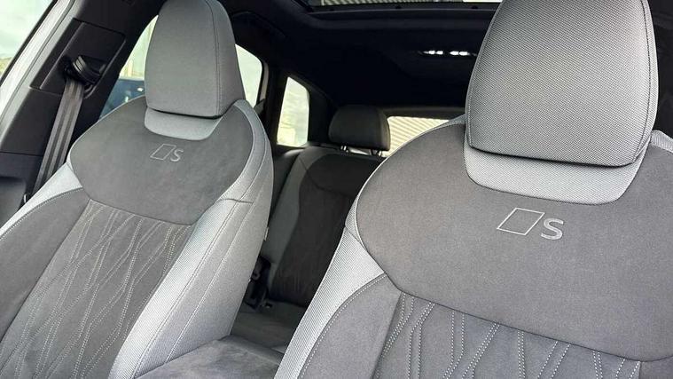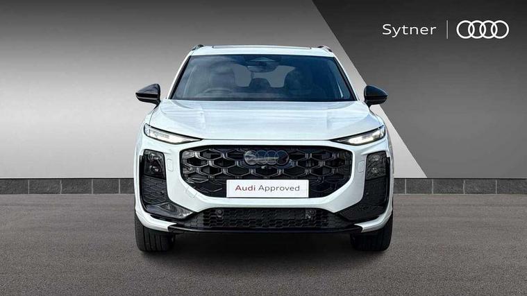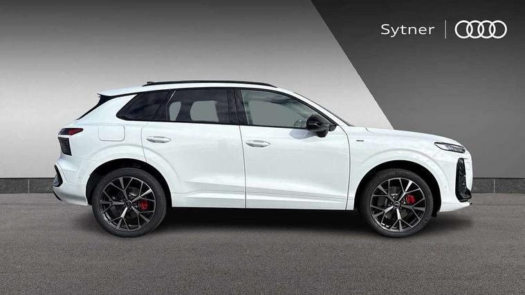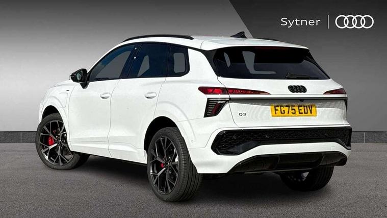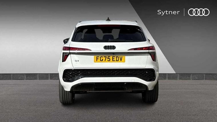 Adaptive cruise assist plus, Audi connect emergency call and service, Audi connect remote and controls, Audi drive select for suspension with damper control, Audi side assist with exit warning and rear cross traffic assist, Audi virtual cockpit plus - 11.9" display, Bluetooth interface, Camera based traffic sign recognition, Driver attention and fatigue detection with driver monitoring camera, Emergency assist, Front cross traffic assist, Garage door opener, Head up Display, In-car-office assist, Panoramic curved display with 12.8" MMI navigation plus and MMI touch, Phonebox light with wireless charging, Progressive steering, Projection of a black ice warning, Smartphone interface includes wireless Apple carplay/Android Auto, Start/stop system, Surround view cameras, Swerve assist and turn assist, Traffic sign based speed limiter, Trained parking, Voice control system with natural language interaction, 3 pin 10 amp domestic charging cable, Charging socket CCS type 2, Compact charging system, Industrial connector CEE 32A, 230V, Mode 3 charging cable for public charging, 22 KW (AC), Petrol Particulate Filter, Sound actuator for interior drive sound, Suspension with damping control, 2 USB-C ports with charge and data functions, DAB digital radio module, SONOS premium sound system, USB interfaces with higher charging capacity, Acoustic glass for front door windows, Acoustic windscreen, Advanced dynamic light scenario of the coming home/leaving home function, Aluminium window trim, Audi Q3 lettering on the B-pillars, Auto dimming rear view mirror, Automatic dynamic headlight range control, Automatically dimming exterior mirrors with memory function, Contrasting finish in volcano grey, Cornering light, Digital matrix LED headlights, Digital OLED rear lights, Dipped beam, Dynamic indicators, Electrically folding, adjustable and heated door mirrors with integrated LED side indicators and kerb view function for passenger side, Full paint finish, Headlight cleaning system, High resolution main beam, Illuminated door sills with aluminium inserts at the front with S logo, Intersection light, Lane light with side assist and direction indicator, LED daytime running lights, LED third brake light, Loading sill protector in stainless steel, Manoeuvring light, Motorway light, Opening panoramic sunroof, Orientation light with lane departure warning, Position light, Preparation for trailer hitch, Privacy glass - dark tinted rear window, rear door and side windows, Projection light in the exterior mirrors - Projects a graphic element onto the ground, Q3 badging on the rear, Rain and light sensors, Rear side wing doors, Rear window, rear door windows and rear side windows in clear glass, Rear wiper, Solid paint, Sports bumpers, Turning light, 3 seat bench in 2nd row, 3 spoke flat top and bottomed leather free multi function Sport steering wheel with gear shift paddles and "S" badging, 3-zone deluxe automatic air conditioning, 4 way lumbar support for the front seats - electric with horizontal and vertical adjustment in four directions, Black cloth headlining, Convenience auxiliary air conditioning, Electrically adjustable front seats with memory function for driver's side, Front and rear floor mats, Front and rear headrests, Front centre armrest, Heated front seats, Height and reach adjustable steering wheel, Interior storage compartment, Luggage compartment lid, electrically opening and closing, Microfibre upholstery with rhombus pattern and S emblem + front sports seats, Single front passenger seat, Stainless steel pedals, Steering wheel operating unit, gloss black, Storage compartment in front centre console, Ambient lighting package pro - Q3, Black styling pack with black door mirrors - Q3, Function pack - Q3, 3 point seat belts in front, with pretensioner and electric height adjustment, 3x3 point rear seatbelts, Acoustic vehicle alerting system, Convenience key with safelock, Driver and front passenger airbag with passenger airbag deactivation, Electromechanical parking brake, Electronic stabilisation control including ABS, ASR and EDL, First aid kit with warning triangle and high visibility vests, Front and rear side airbags with head airbags and front interaction airbag, Front emergency brake assist, i - Size child seat mounting on the front passenger side and i - Size and top tether on the outer rear seats, Power operated child locks, Proactive occupant protection, front, side and rear, Rear side airbags, Red brake callipers, front and rear, Seatbelt monitoring, Tyre pressure loss indicator, Anti theft wheel bolts, Remote central locking, Thatcham approved category 1 anti theft alarm, Dark aluminium divergence inlay, Interior elements in dinamica microfibre, Interior trims in aluminium look, 20" 5 spoke tripod design alloy wheels with gloss turned finish in darkened metallic black, Tool kit and Jack, Tyre repair kit,