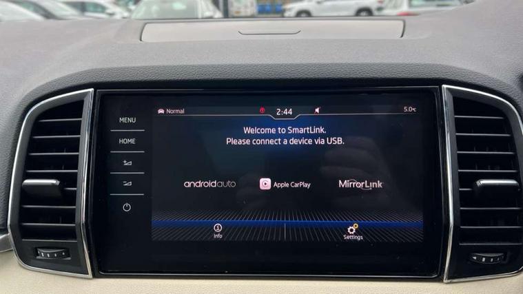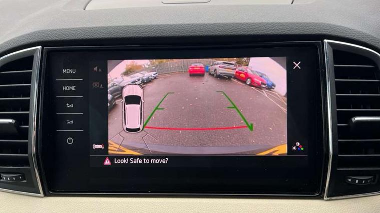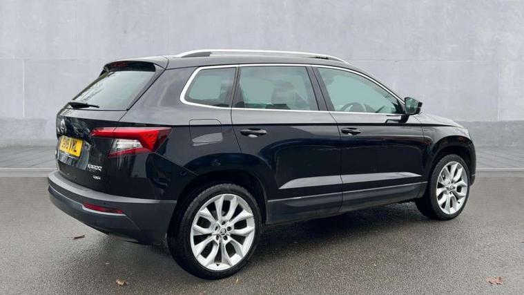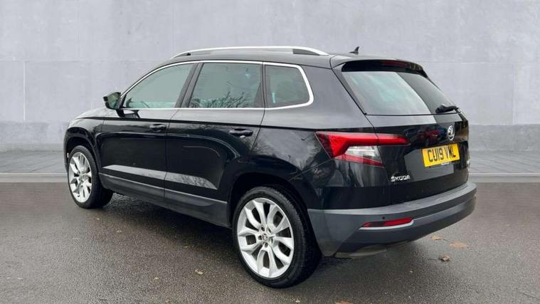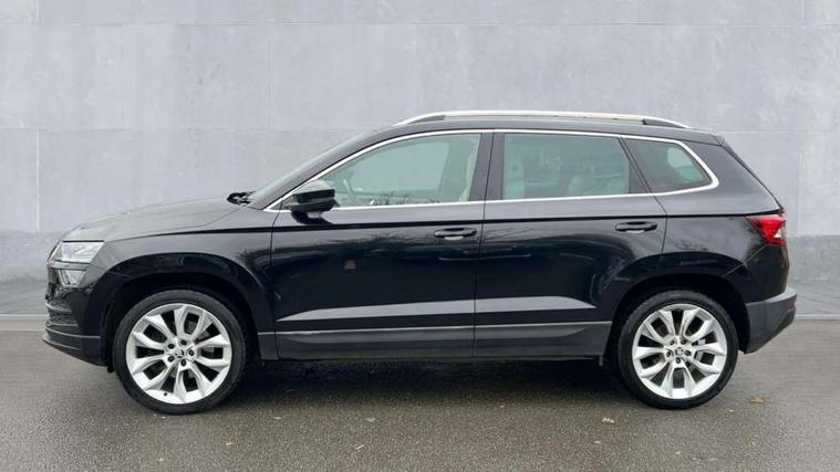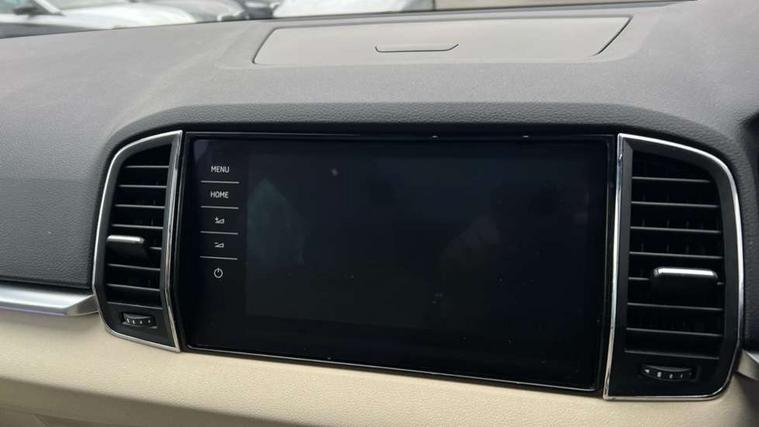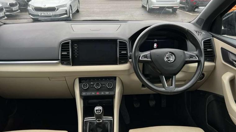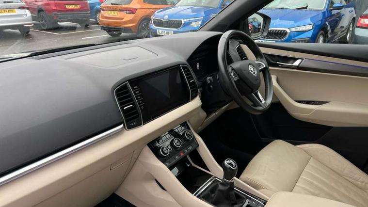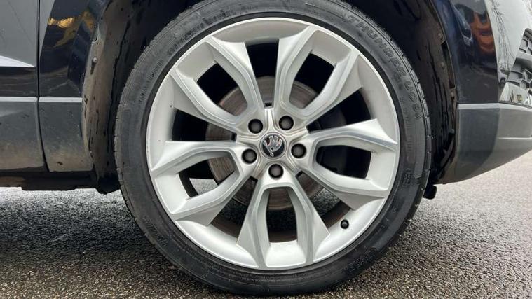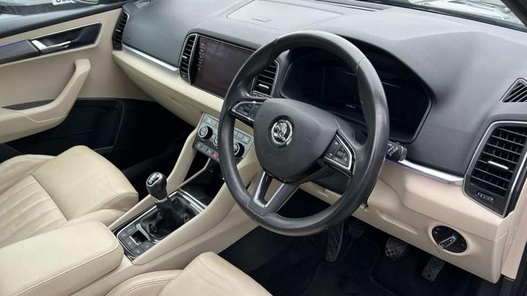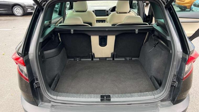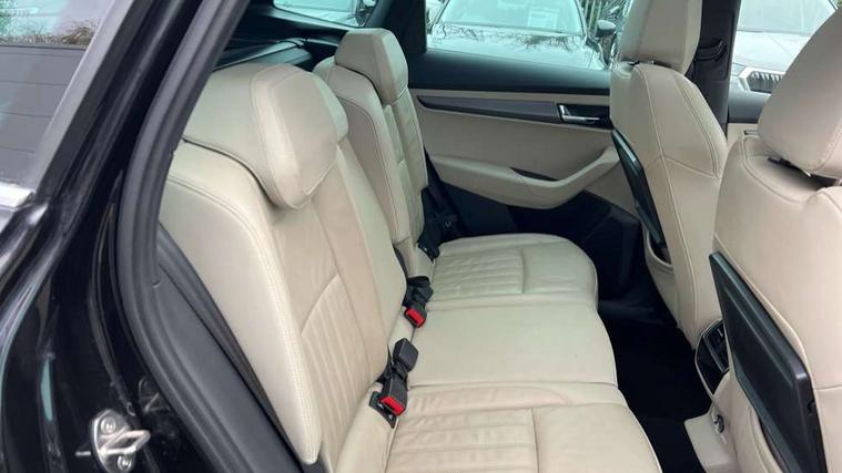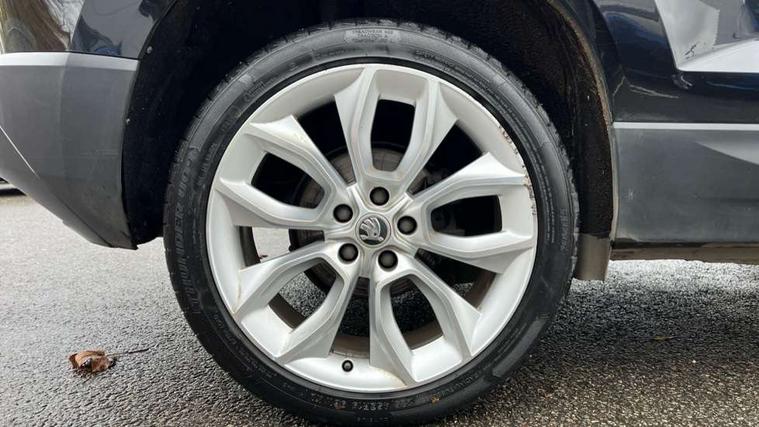 Chrome air vent surrounds, Scout plaque on the dashboard, Wood finish dashboard and door inserts, LED Interior lighting pack with Skoda welcome logo - Karoq, 19" Crater silver alloy wheels with anti theft wheel bolts, Storage on wheel cover, Alarm with interior monitoring and tilt sensor with safe function, Electronic immobiliser, Keyless entry and keyless start with safe system, Remote central locking with 2 remote folding keys, DAB radio with Bluetooth, SD card slot, USB connection, 3 point front/outer rear seatbelts+pre-tensioners, 3x3 point rear seatbelts, Airbags - Front, head, knee, curtain and front side airbags, Automatic fuel cut off in case of crash, Automatic unlocking of doors in case of impact, Brake energy regeneration, Driver airbag, Electronic parking brake with auto hold, Emergency rear braking signal, ESC including ABS, MSR, ASR, EDS, HBA, DSR, RBS, MKB and traction control, Front assist radar scanning of the space in front of the car with automatic braking, Hill hold control, Passenger airbag with switch-off function, Pedestrian monitor, Three point seatbelts rear, Two tone horn, Tyre pressure monitor, Acoustic glass, Aero wiper + intermittent function, Aluminium window surround, Automatic headlight control system, Body colour door handles, Chrome roof rails, Doors steps in front with logo, Electric front and rear windows with child safety lock, Electrically adjustable heated folding and auto dimming door mirrors with boarding spots, Full LED headlights + adaptive front light system + LED daytime running lights and front cornering fog lights, Headlight washers, Heated rear windscreen, LED rear lights with high functionality, Light assistant (coming/leaving home/tunnel light), Privacy glass, Protective door side sills, Rear diffuser, Safety reflectors on front doors, Silver door mirrors, Sportline badge on front fender, Sportline decorative inserts with badging, Sports front and rear bumpers, Third brake light, 1.5 litre bottle holders in driver and front passenger door panels, 12V Accessory socket in centre console, 12V power point in luggage area, 12v socket in front centre armrest with storage compartment and rear air vents, 2 Folding hooks and nets in boot, 2 Front readings lights for driver and passenger, 3 rear height adjustable headrests, 4 foldable roof handles with rear coat hooks, 4 lashing points on luggage floor, Armrest with specific stitching, Black roof headlining, Cargo elements in boot, Chrome inner door handles, Dual zone climate control, Electrically adjustable driver's seat with memory function includes lumbar support + heated folding door mirrors with auto dimming and boarding spots, Folding tables on the front seat backrests, Front seat and rear pockets, Height adjustable front three point seats belts with tensioners, Height/reach adjust steering wheel, Ice scraper, Illuminated air conditioned glovebox, Illuminated luggage compartment, Isofix child seat preparation outer rear, Leather upholstery, Luggage compartment cover, Manual lumbar support for front seats, Net programme in boot, Parcel shelf - retractable, Pen holder, Pollen filter, Rear boot cover, Rear reading lights, Rear seats fixed folding and divided 60:40, Removable LED light in boot, Retractable parcel shelf attachable to tailgate, Safety vest holder, Seatbelt reminder signalisation and pretensioner for all seats, Storage box in upper central dashboard closed, Storage net on centre console passenger side, Storage under front passenger seat, Sunglasses storage compartment, Sunvisors with illuminated vanity mirrors, Textile floor mats, Umbrella under passenger seat, Varioflex individually removeable/folding rear seats, Varioflex seats, Columbus satellite navigation with 9.2" touchscreen display, integrated Wi-Fi, gesture control and WLAN, Drive mode selector, Driver alert system, Driver fatigue sensor, Driver profile selection, Electro-mechanical PAS, Front and rear parking sensors, Lane assist, Lane change assist and blind spot monitor, Multifunction colour trip computer, Outside temperature gauge, Rear view camera, Service interval indicator, Speed limiter, Start/stop system with regenerative braking, Traffic sign recognition, Diesel particulate filter,