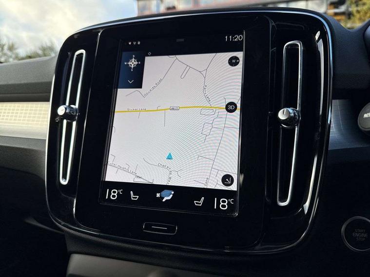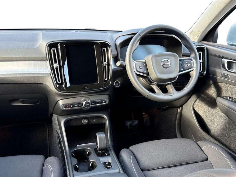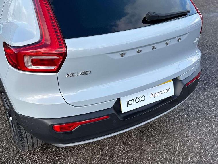 12.3" Active TFT crystal driver's instrument display, 9" centre console portrait touch screen, Adjustable steering wheel force, Bluetooth hands free telephone kit, Drive mode selector, E-call, Lane keep assist with driver alert control, Oncoming Lane Mitigation, Power operated tailgate, Sensus navigation with European mapping and traffic information, Speed limiter, Speed sensitive steering, Voice activated control for key functions, Volvo on call, 7m 10amp charge cable with 3 pin plug and 7m 1 phase 16amp type 2/mode 3 charge cable, Dynamic chassis, Electric front axle drive, Recharging port located in nearside front wing, DAB Digital radio, Low speed exterior sound speaker, Steering wheel mounted remote controls, Adaptive brake lights with high level LED brake lights, Auto dimming interior mirror, Automatic headlamp levelling, Chrome window surround, Colour coordinated auto folding and heated power door mirrors, Front aluminium tread plates, Front and rear electric windows, High gloss black front grille with chrome inserts, High gloss black sensus surround deco, High Gloss silver front and rear skid plate, Home safe and approach lighting, Integrated roof rails in silver, LED Headlights + Active high beam incorporating daytime running lights, Rain sensor with automatic windscreen wiper activation, Rear side wing doors, Rear wiper, Roof antenna, Roof spoiler, Visible VIN plate, 12V socket in front tunnel console and luggage compartment, 2 zone electronic climate control and rear air vent, 3 seat bench in 2nd row, 3 Spoke tailored steering wheel with chrome trim, 60/40 versatile split folding rear seat, A-pillar parking ticket holder, Bright metal luggage threshold, Centre console cupholders and storage, Floor mats, Front footwell illumination, Front headrests, Front reading light and theatre lighting, Glovebox bag hook, Height/reach adjustable steering column, Height/tilt adjustable driver's seat, High gloss centre tunnel deco, Illuminated glovebox, Illuminated luggage compartment, Illuminated vanity mirrors, Isofix attachments on outer rear seats, Leather faced upholstery, Load protection net, Multi directional lumbar support, Orrefors Crystal gear lever knob, Power driver seat with memory + exterior mirrors memory, Rear armrest / integral cup holders / storage tray, Rear coat hook, Single front passenger seat, Underfloor cargo storage, Vanity mirror with ticket holder, Park assist pack - XC40, 3x3 point rear seatbelts, City safety includes pedestrian, cyclist and large animal detection and front collision warning with full auto brake, Drivers knee airbag, Dual stage driver/passenger airbags, Electronic parking brake with auto hold, First aid kit, Front and outer rear seatbelt reminder and pretensioners, Front seats SIPS airbags, Hill descent control, Hill start assist, Inflatable curtain, Passenger airbag cut-off device, Road sign information display, Run off Road Mitigation, Run off Road Protection, SIPS (Side Impact Protection System), Slippery road and hazard light alert, Stability and Traction Control with Spin control, Engine Drag Control and Corner Traction Control, Tyre pressure monitoring system, Vehicle deceleration control with Anti-lock Brake System, Electronic Brake Distribution and Emergency Brake Assist, Warning triangle, WHIPS whiplash protection system - front, Anti-theft alarm including immobiliser/volume sensor + level sensor, Care key with user defined top speed, Key integrated remote control central locking + fuel flap with deadlocking system and auto open/close power windows, Locking wheel nuts, Private locking for tailgate, Driftwood inlays,