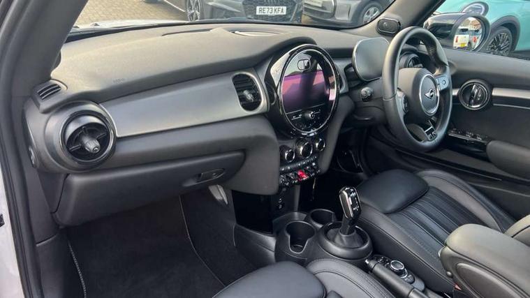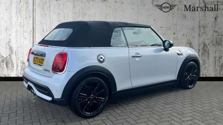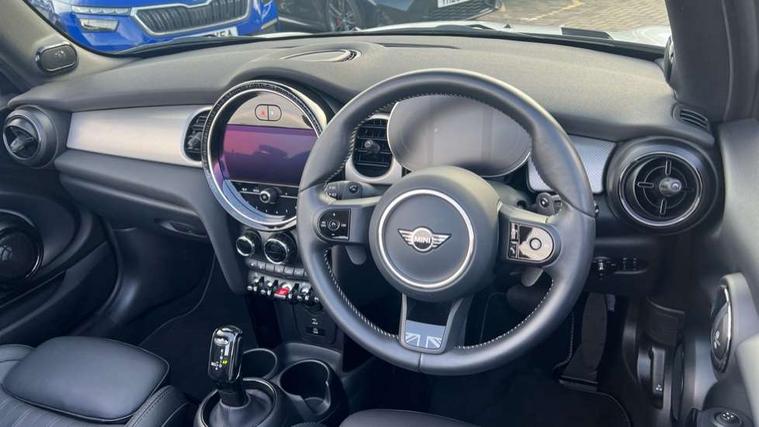 Automatic start/stop function with brake energy recuperation, Compatible mobile phone bluetooth with audio streaming, Electro-mechanical speed dependant steering assistance, Instrument cluster, MINI Driving Modes - centre toggle switch to control driving setting (sport, mid and green), Mini E-call, MINI TeleServices, On board computer, Rear park distance control, Service interval indicator, Double Vanos system, Fully variable valve control, High precision injection, Performance Control, Steptronic sport transmission with double clutch and steering wheel paddles, FM tuner and DAB digital radio, Automatic headlight activation switch, Bonnet scoop, Chrome plated fuel cap, Dynamic brake lights, Electric windows, Fully electric black softtop with integrated sunroof functionality, Heated rear window, Heated windscreen washer jets, Metal door sill strips with Cooper S imprint, Model logo Cooper S on right of tailgate, Radiator grille bars, tailgate handle, lower front grille grating, rear central fog light in chrome, Rain sensor window wipers, Rear fog lights, Rear LED lights with union jack design, Side scuttle panel with integrated indicator, Sun/heat protection glass, Two central exhaust tailpipes with chrome finisher, White indicator lenses, 12V Accessory socket in centre console, 4 lashing eyes in luggage compartment, 50/50 split folding rear seats, Air vents, gear lever base, speakers in doors, door handles in chrome, Chrome interior highlights, Cupholders, Easy Load boot handles, Front and rear head restraints, Front and rear isofix with front passenger airbag deactivation, Front seatback storage pockets, Glove compartment, Height and length steering column adjustment, Interior lighting with 12 basic colours selectable via toggle switch in roof, Leather gearshift lever and handbrake gaiters, LED reading lights, vanity mirror lights, front foot well light and spotlight on front seats, Mechanical seat adjustment, driver seat height adjust, forward/back and front seats backrest, Mini logo projection on floor from drivers exterior mirror, MINI Yours fine walk nappa leather steering wheel with contrast stitching in silver and MINI Yours badge, Multifunction steering wheel, Storage compartments in doors, Sunvisors with vanity mirrors, Convertible pack with comfort access - Mini Convertible, 3 point seatbelts on all four seats, 6 Airbags - front, side and seat belt tensioners, Active rollover protection, Anti-lock braking system (ABS), DSC - Dynamic Stability Control, Front and rear disc brakes, Hill start assist, Two tone horn, Tyre pressure monitoring system, Alarm system with tilt sensor, monitoring doors, bonnet interior and tailgate, Electronic vehicle immobiliser, Keyless Go, Chrome line interior, Tool kit,