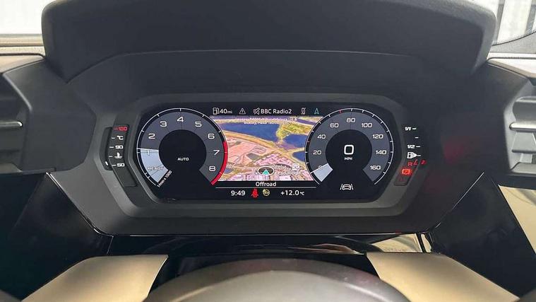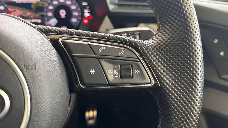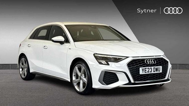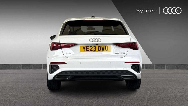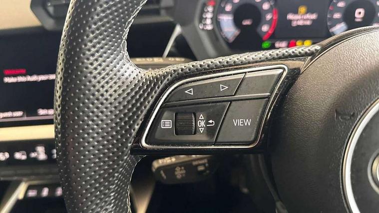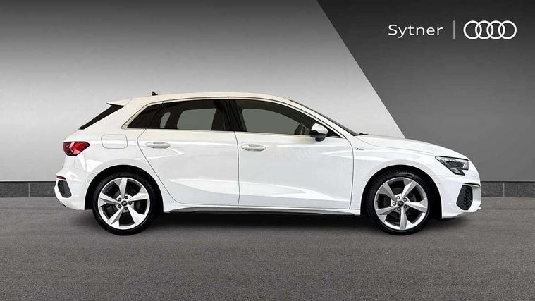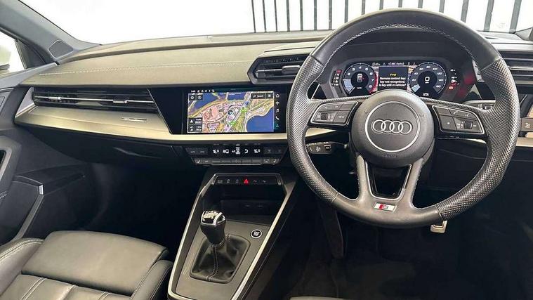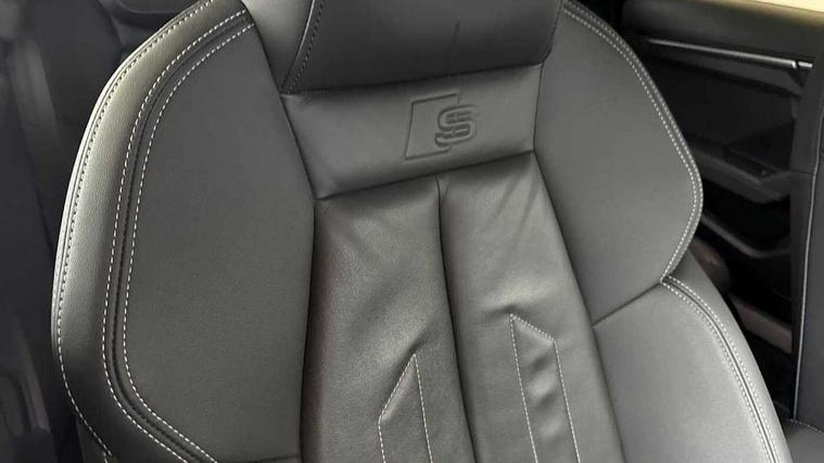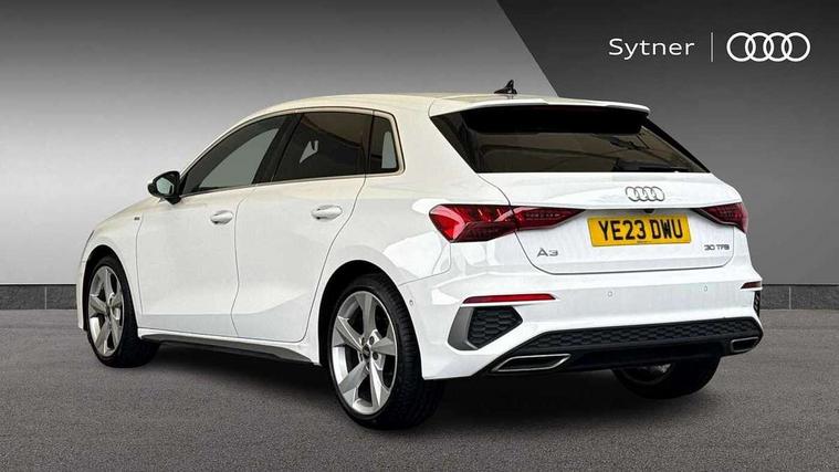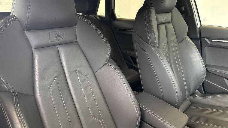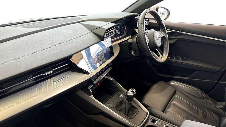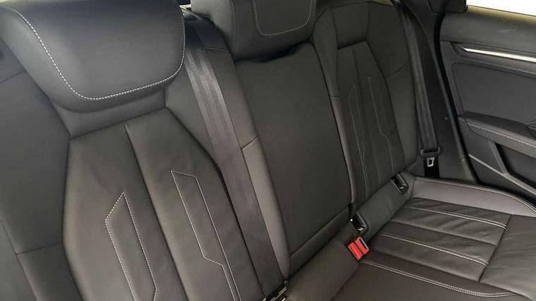 Audi drive select (Auto, Comfort, Dynamic and Individual), Audi smartphone interface, Audi Virtual Cockpit - 10.25" digital and colour instrument cluster, Automatic start/stop system with recuperation, Bluetooth interface, Camera based traffic sign recognition, Collision avoidance assistant, Cruise control, e-Call (emergency call), Electromechanical power speed sensitive steering, Lane departure warning system, MMI Navigation Plus with high resolution 10.1" colour touch screen display, Rear parking sensors, Service indicator, Trip computer, Voice control system with natural language interaction, Sports suspension, 2xUSB-C connection with data and charging functions, 6 passive loudspeakers, DAB Digital radio, 3rd brake light, Acoustic glass windscreen, Aluminium window trim, Auto dimming frameless rear view mirror, Body colour exterior mirrors, Electrically adjustable/heated/folding/auto dimming door mirrors with integrated LED indications + kerb view function for passenger side, Front electric windows, Illuminated aluminium inserts front door sills with S logo, LED daytime running lights, LED headlights with LED rear lights and dynamic rear indicators, Light and rain sensors, Privacy glass - dark tinted rear window, rear door and side windows, Rear electric windows, Rear side air outlets in grained matt black, Rear side wing doors, Rear wiper, S line bumpers, S roof spoiler, 12V socket and storage compartment in front centre console, 3 seat bench in 2nd row, 3 spoke leather multifunction steering wheel, 4 way electrically adjustable lumbar support for driver and front passenger, 60/40 split folding rear seat bench, Black cloth headlining, Dual zone electronic climate control, Front and rear centre armrest in leather, Front and rear headrests, Front/rear floor mats, Height and reach adjustable steering wheel, Interior lighting - glove compartment light and right hand side, Luggage compartment floor covering, Manual boot compartment lid, Manually adjustable front seats, Seat side bolsters, Single front passenger seat, Stainless steel pedals and front footrest in black, Twin leather upholstery with front sports seats S embossed logo, Aluminium interior elements pack - A3 Sportback, LED interior lighting pack - A3 Sportback, S line styling pack - A3 Sportback, 3x3 point rear seat belts, Driver and front passenger airbag with passenger airbag deactivation, Electronic Stabilisation Control (ESC) including ABS, ASR and EDL, First aid kit with warning triangle and 2 safety vests, Front side airbags with head airbags and interaction airbag, Pre-sense front with pedestrian and cyclist detection, Seatbelt monitoring, Tyre pressure loss indicator, Anti theft alarm, Anti-theft wheel bolts, Electronically operated child lock, Immobiliser, Remote control central locking, Dark spectrum aluminium inlays, accent surfaces in the dashboard and centre console in platinum grey silk effect paint finish,