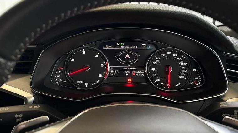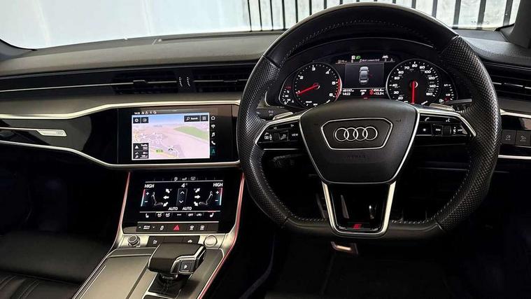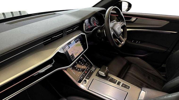 7" high resolution colour driver information display system, Amazon alexa Integration, Audi connect safety and service (e-call), Audi drive select, Audi smartphone interface, Automatic start/stop system with coasting functionality, Bluetooth interface, Electric boot lid release, Lane departure warning system, MMI navigation with MMI touch + twin touch screens 8.8" and 8.6" with haptic and acoustic feedback, Progressive steering, Service interval indicator, Voice control system, 12V Mild hybrid, Diesel particulate filter, Sports suspension, Audi music interface, Auxiliary input socket, DAB Digital radio, USB connection, Electric front/rear windows, Electrically adjustable, heated and folding door mirrors with driver memory function and integrated LED indicators, Frameless auto dimming interior rear view mirror, Gloss black exterior mirror housings, Gloss black highlights on the exterior area of the Audi Single frame, Gloss black highlights on the front and rear bumpers, Gloss black highlights on the radiator grille, Gloss black highlights on the side windows trim strips, Headlight washers, Heat insulating glass in side and rear windows, LED signature front daytime running light, Matrix LED headlights with dynamic rear indicators, Privacy glass, Rain and light sensors, S line air inlet design with inlay in matt aluminium, S Line badge on front fender, S line rear diffuser and grille in matt black with matt aluminium tailpipes, S Line side skirts, Signature rear LED light design, Windscreen with acoustic glazing, 2 zone deluxe electronic climate control, 3 Spoke flat bottom high multi-function leather steering wheel with shift paddles, 4 way electric lumbar support for driver and front passenger, 40/20/40 split folding 3 rear seat bench in 3 parts with rear centre armrest, Black cloth headlining, Electrically adjustable front seats with driver memory, Front centre armrest, Front head restraints, Heated front seats, Height/reach adjust steering wheel, Illuminated door sill trims with S logo, Illuminated sun visors with vanity mirrors, ISOFIX child seat mounting and Top Tether with front passenger airbag deactivation, Leather gear knob, Rear headrests, S line front and rear floor mats with contrast stitching, Stainless steel pedals and foot rest, Tool kit and car jack, Non smoking pack - A6, 3 point seatbelts on all seats, Airbags - Front side, front and rear including head, Audi pre-sense front, Black seatbelts, EBD - Electronic brakeforce distribution, Electromechanical parking brake, Electronic Stability Control (ESC) including ABS, ASR and EDL, Extended pedestrian protection measures, Seatbelt monitoring, Tyre pressure warning light, Warning triangle and first aid kit, Anti theft alarm with tow away protection, Anti-theft wheel bolts and wheel loosening detection, Immobiliser, Keyless Go, Remote central locking, 20" 5 V spoke star design Audi sport cast aluminium alloy wheels in matt titanium look,