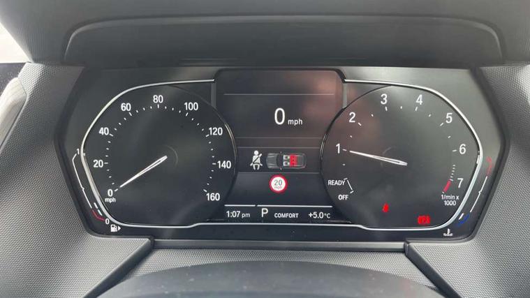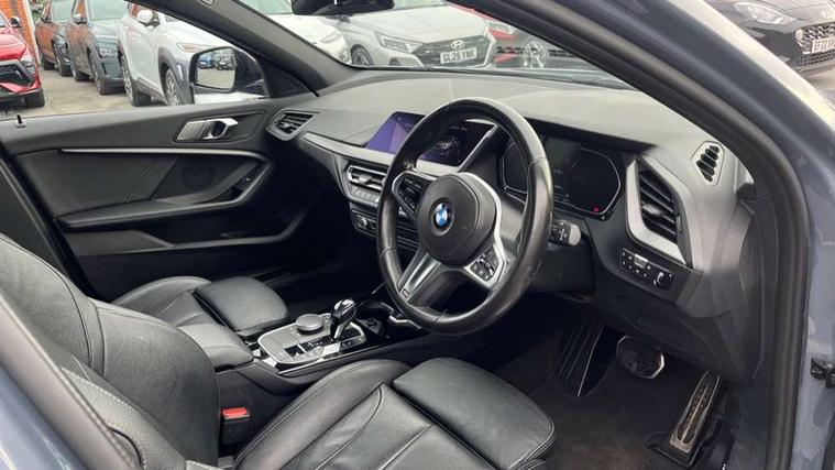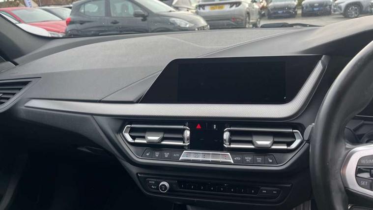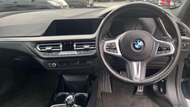 Active guard plus, Attentiveness assist, BMW Online services, BMW Teleservices, Check Control warning system for monitoring of lights and door/luggage compartment open warning, Connected eDrive Services, Eco pro mode, Electric power steering with Servotronic steering optimised at all speed ranges, Integrated owners handbook, Oil sensor for level and grade, On board computer, Optimum shift indicator, Personal Profile, Pull away assistant, Speed limiter, Aluminium lightweight construction, Anti roll bar front and rear, Balancer shaft, Double VANOS, Drive Performance Control, Electronic differential lock, High precision injection, M sports suspension + self levelling, Petrol Particulate Filter, VALVETRONIC engine management, Bluetooth audio streaming, DAB Digital radio, Auto dimming rear view mirror, Automatic headlight beam throw control, Body colour door handles, Body colour mirror caps, Chrome 'M' logo side designation, Chrome exhaust tailpipe in single, round (Exhaust tailpipe, stainless steel - single, round), Chrome kidney grille frame with Satin Aluminium struts, Direction indicator side lights in exterior mirrors, Electric folding and anti dazzle exterior mirrors, Fading support, Follow me home headlights, Front and rear electric windows with open and close fingertip control, anti trap facility and comfort closing, Front door sill finishers in black plastic with BMW designation, Green tinted heat protection glazing, Heated, electrically adjustable exterior mirror aspheric on driver side, convex on passenger side, High gloss shadow line exterior trim, High gloss shadowline window frame, Recess cover mirror frames and B/C pillar embelisher trim, High level third brake light, LED daytime running lights, LED eyebrow turn indicators, LED front fog lights, Lightweight engineering, Matt black air guide grilles, Model designation on right side of tailgate, Nearside reverse light in rear light cluster, Rain sensor including auto headlights activation, Rear fog lights, Rear window wiper, Shark fin antenna, Visible VIN plate, Welcome lighting, Windscreen wipers with integrated washing jets, 12V power socket in centre console, 2 cupholders in front centre console, 3 rear seat head restraints, 3 spoke M sports design leather steering wheel finished in nappa leather with specific M badge, Anthracite headlining, Anthracite Velour floor mats, Child seat ISOFIX attachment for two outer rear seats and front passenger seat with anchorage points, Conditioned based service, Dakota leather upholstery with perforation and contrast stitching, Driver and front passenger seat heating, Driver side folding compartment in instrument panel, Folding rear clothes hook, Folding rear seats, Four grab handles integrated in roof lining, Front and rear door pockets, Front and rear side armrest integrated into door trim, Front armrest foldable with integrated storage compartment, Front sports seats with electric side bolster adjustment, Glove compartment, Height adjustable front head restraints, Manual adjust steering wheel, Multi-function controls for steering wheel, Rear seat backrest with manual 60:40 split folding with 3 top tether clips integrated on rear of seat panels, Storage compartment in centre console, Sun visors with vanity mirrors and insert tab, Two zone automatic air conditioning, Extended Lighting pack - 1 Series, Extended storage pack - 1 Series, Interior lights pack - 1 Series, Luggage compartment pack - 1 Series, M Sport exterior styling aerodynamics pack - 1 Series, 2 tone horn, 3 point seatbelts on all seats, front pyrotechnic belt tensioners, stopper and belt force limiters, rear coded belt buckles, Airbags - Front driver and passenger, front and rear head, front side, curtain head protection, Anti lock braking system (ABS) with brake assist, BMW emergency call, Brake drying, Braking readiness, Crash sensor activating central locking release, hazard warning lights, fuel cut off, interior lighting + activation of safety battery terminal clamp, Driver and front passenger seat belt security check, Dynamic stability control + (DSC+), Dynamic Traction Control - DTC, Electrically operated hand brake, Front and rear disc brakes, Front passenger manual airbag deactivation, Rear child proof door locks, Seatbelt warning, Side impact protection, Tyre pressure monitoring system, Warning triangle and first aid kit, Automatic drive away locking facility, Central locking switch for all doors, fuel filler cap and luggage compartment, Deadlocking function system to all doors, Locking wheel bolts, Remote control with integrated key with High-gloss Black inlay and M designation and 1 button for open/ close lock, window, open luggage compartment, Start/stop button with comfort go keyless engine start and auto start stop deactivation button, Thatcham Cat.1 alarm and immobiliser, Contrast stitching on instrument panel, Reduced rolling resistance tyres,