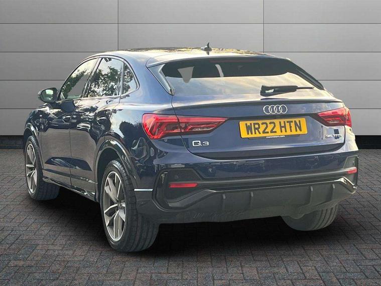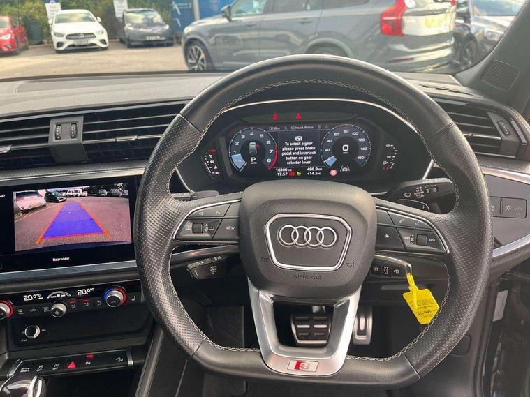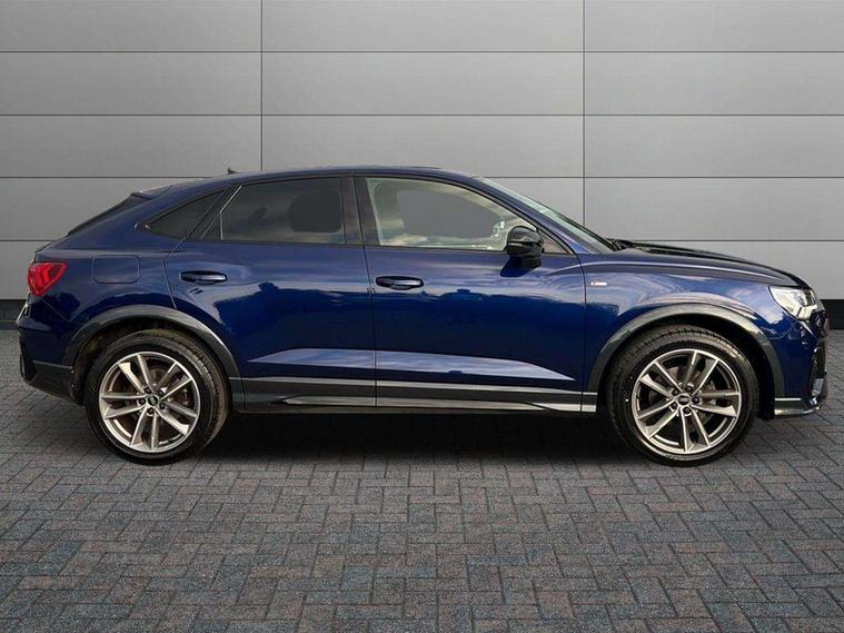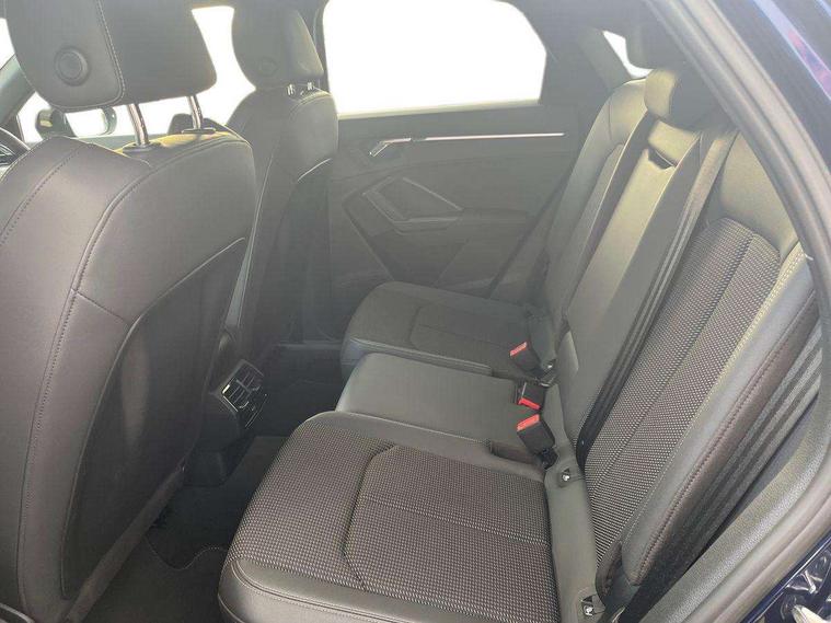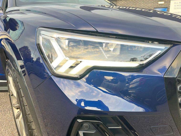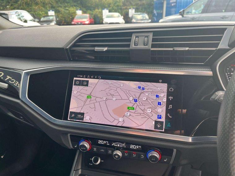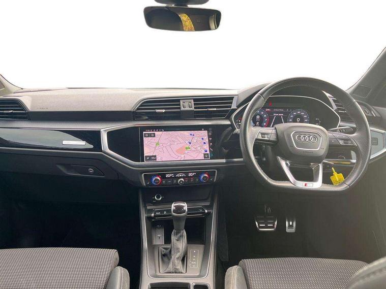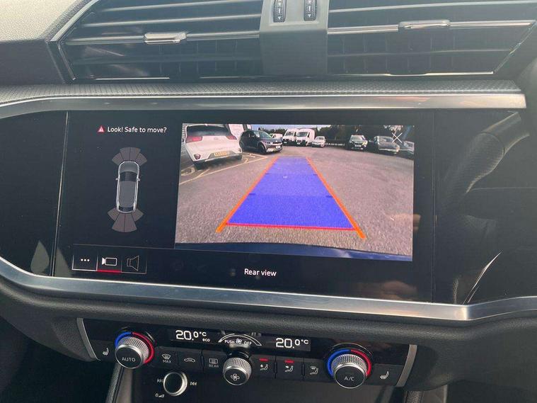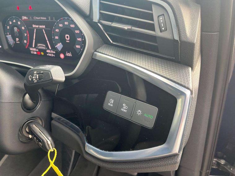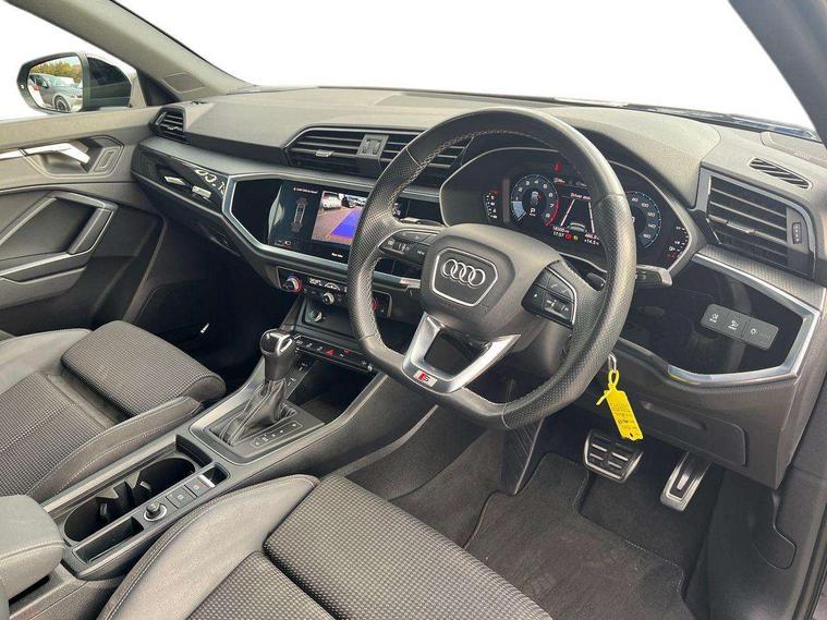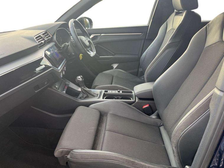 Audi connect safety and service (e-call), Audi drive select, Audi lane departure warning, Audi Virtual Cockpit - 10.25" display, Bluetooth interface, Camera based traffic sign recognition, MMI Navigation Plus with high resolution 10.1 inch touchscreen colour display, Power operated tailgate, Progressive steering, Service interval indicator, Smartphone interface includes wireless Apple carplay/Android Auto, Start stop system with recuperation, Voice control system with natural language interaction, 48V Mild hybrid technology, Sports suspension, 2 USB-C ports with charge and data functions, 6 passive loudspeakers, DAB digital radio module, Acoustic windscreen, Auto dimming frameless rear view mirror, Diffuser grille in grained matt black, Diffuser trim in selenite silver, Electrically folding, adjustable and heated door mirrors with integrated LED side indicators and kerb view function for passenger side, Front and rear electric windows, Front fog lights, Front side air inlets in selenite silver, Front underbody protection in manhattan grey paint finish, High gloss black finish B and C pillars, LED headlights with LED daytime running lights, LED rear lights, LED third brake light, Privacy glass dark tinted rear and rear-side windows (from B-pillar backwards), Rain and light sensors, Rear side wing doors, Rear underbody protection in matt black, Rear wiper, Variable front intermittent wipers, 12V socket in rear centre console, 3 seat bench in 2nd row, 40:20:40 folding with manual adjustment for 60:40 forwards/backwards position and backrest angle, Adjustable rear seat bench/backrest with centre armrest and cupholder, Black cloth headlining, Dual zone electronic climate control, Front and rear black floor mats with contrast stitching, Front and rear headrests, Front and rear roof module including reading lights, Front centre armrest, Glove compartment lighting, Height and reach adjustable steering wheel, Illuminated door sill trims with S logo, ISOFIX child seat mounting for front passenger with airbag deactivation and outer rear seat including top tether attachment point for outer rear seats, Luggage compartment light right in white, Luggage compartment sill protection in stainless steel, Manual front seats with height adjustment, Perforated leather gearknob, Single front passenger seat, Stainless steel pedals, Black styling pack - Q3, Non smoking pack - Q3, 3x3 point rear seatbelts, 6 airbags - Driver, front passenger, curtain and side windows, Audi pre-sense front with pedestrain and cyclist recognition, Electromechanical parking brake, Electronic stabilisation control including ABS, ASR and EDL, Front seatbelt reminder, Hill descent control, Hill hold assist, Manual child lock in rear doors, Pre sense basic, Seatbelt monitoring, Tyre pressure warning, Warning triangle and first aid kit, Anti theft alarm, Anti theft wheel bolts, Immobiliser, Remote central locking, Black dashboard, Detail dashboard around MMI touch colour display in glass look, black with surround in aluminium look, Leatherette door armrest, Piano black inlay, Tool kit, Tyre repair kit,