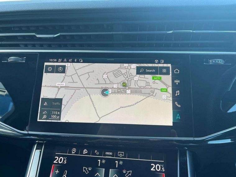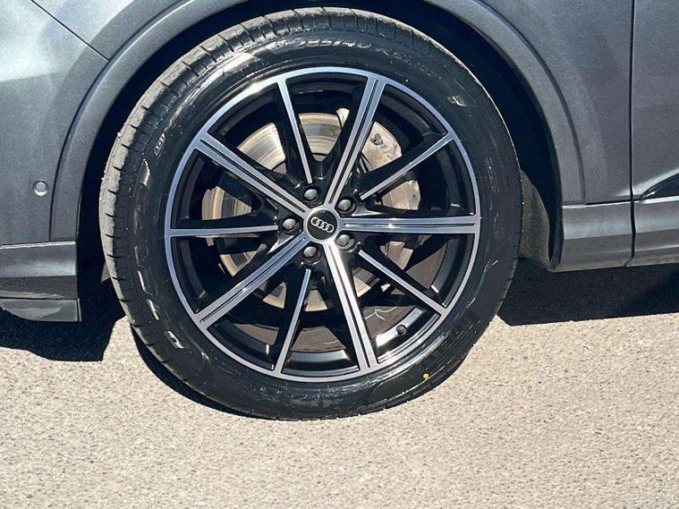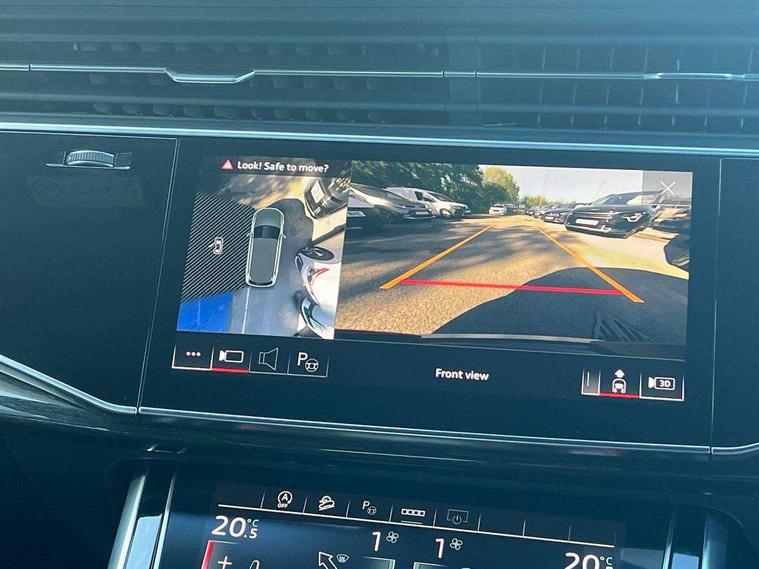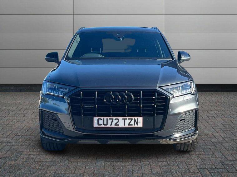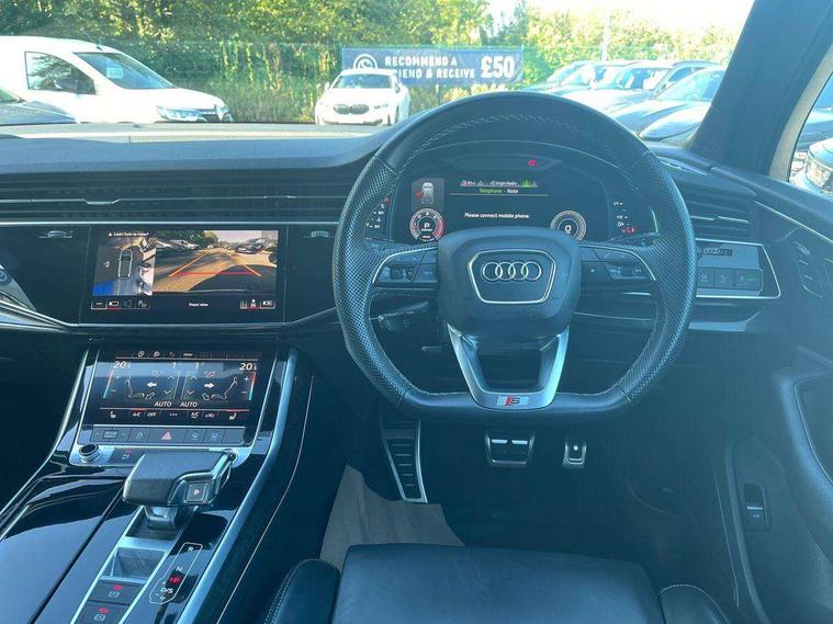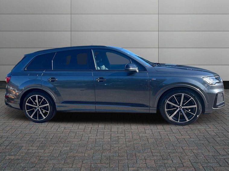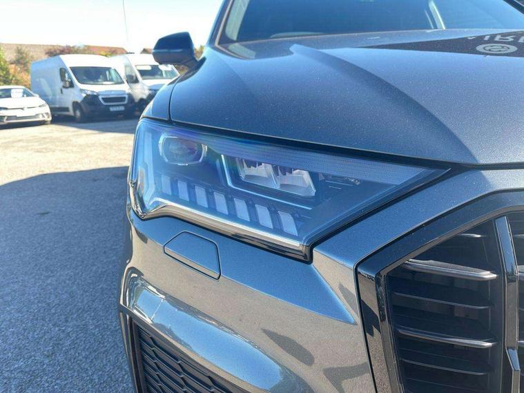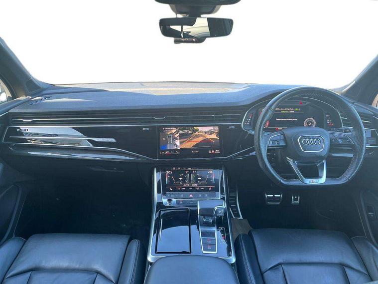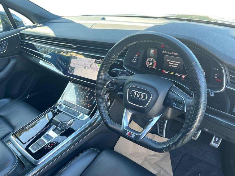 Audi connect safety and service (e-call), Audi connect with Amazon Alexa Integration, Audi drive select (Auto, Comfort, Dynamic, Efficiency, Individual, Off-road and All road), Bluetooth interface, Camera based traffic sign recognition, Electromechanical steering, MMI navigation plus with MMI touch screens includes 10.1" and 8.6" screens with haptic feedback, Natural voice recognition, Parking system plus with 360 degree display (front, rear and side sensors) - acoustic and visual park assist system, Power operated tailgate, Rear view camera, Smartphone interface includes wireless Apple carplay/Android Auto, Start/stop system, 48V Mild hybrid technology, Adaptive air sports suspension, Quattro all wheel drive with self locking centre differential, Audi music interface - front 2 USB-C ports with charger and data functions, Audi sound system with 6 channel amplifier, 180 watt amplifying capacity and 10 loudspeakers including subwoofer, DAB digital radio module, 3rd brake light, Audi matrix LED headlights with dynamic front and rear indicators, Auto dimming frameless rear view mirror, Black roof rails, Bumpers in contrast paint scandium grey finish includes door trim and wheel arch trim strips, inlays in door strip contain quattro embossing, Electrically adj heated/folding + automatically dimming exterior mirrors with memory + automatic kerb side function for passenger side exterior mirror, Heat insulating glass in windshield, Integrated LED indications in door mirrors, LED daytime running lights, LED rear tail lights, Privacy glass - dark tinted rear and rear side windows from B-pillar backwards, Rear side wing doors, Rear wiper, 2 seat bench in 3rd row, 3 seat bench in 2nd row, 4 zone deluxe automatic climate control, 7 seat layout with ISOFIX points for the front passenger seat and rear passenger seat, Black cloth headlining, Comfort front centre armrest, Electric adjustable front seat with 4 way lumbar support, driver memory functionality, Folding rear seats, Front head restraints, Front/rear floor mats, Heated front seats, Illuminated door sill trims with S logo, LED interior ambient lighting, Luggage compartment cover, Luggage compartment sill protection in stainless steel, Rear head restraints, Single front passenger seat, Stainless steel pedals, Sunvisors with illuminated vanity mirrors, Titanium black styling pack - Q7/SQ7, 3 point seatbelts on all rear seats, Audi pre sense front, Child locks on rear doors, Driver and front passenger, front side and curtain airbags, Electromechanical parking brake, Electronic Stabilisation Control (ESC) including ABS, ASR and EDL, Extended pedestrian protection measures, Hill hold assist, Seatbelt monitoring, Tyre pressure loss indicator, Warning triangle and first aid kit, Anti theft alarm, Anti-theft wheel bolts and wheel loosening detection, Keyless Go, Remote central locking, Polished oak trim with grey finish inlay, Tool kit, Tyre repair kit,
