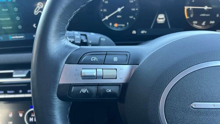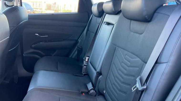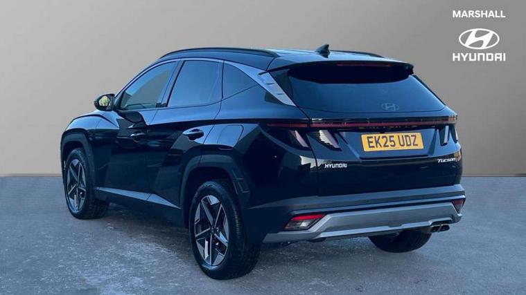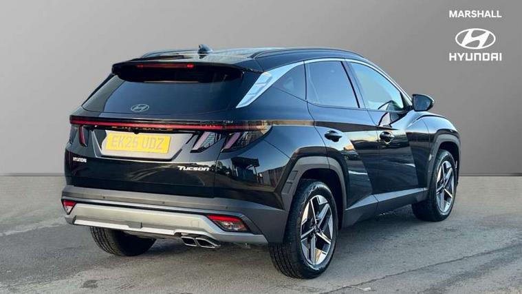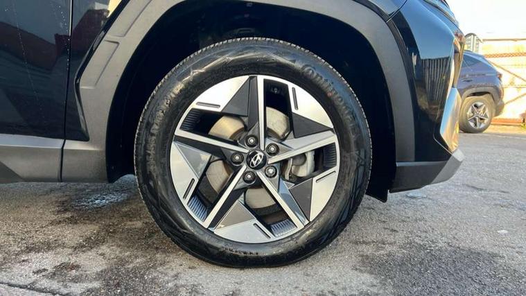 12.3" LCD display with driver's supervision instrument cluster, 12.3" widescreen navigation with bluelink and mapcare, Bluetooth system, Cruise control, Digital clock, Drive mode selector, Driver attention warning, E-call, Emergency stop signalling system, Forward Collision Avoidance Assist (FCA) - Car, Pedestrian and Cycle, Forward Collision Avoidance Assist Junction Turning (FCAJX), Front and rear parking sensors, Hyundai road side assistance, Intelligent speed limit assist, Lane follow assist, Lane keep assist, Over the air updates(OTA), PAS, Rear camera and guidance parking system, Rev counter, Smart power tailgate, Tailgate open warning light, Trip computer, Trip odometer, Voice recognition, Water temperature gauge, Windscreen washer fluid sensor and warning indicator, Wireless Apple CarPlay/Android Auto, Wireless phone charging pad, 2 front and 2 rear USB-C ports, DAB Digital radio, Krell premium audio system with 8 speakers and subwoofer, Steering wheel mounted audio/phone controls, Adjustable intermittent front windscreen wipers with aero wiper blade, Auto dimming rear view mirror, Automatic defog system, Automatic headlights with dusk sensor, Automatic windscreen wipers with rain sensor, Black wheel arches, Body colour bumpers, Body colour door mirrors with integrated indicators, Body colour exterior door handles, Electrically adjustable, heated and power folding door mirrors, Follow me home headlights, Front and rear electric windows with anti-trap mechanism and one touch control, Front fog lights, LED 3rd brake light, LED daytime running lights, LED Headlights, LED rear lights, Positioning Lights - LED, Privacy glass - Rear windows and tailgate, Rear side wing doors, Rear wash/wipe with intermittent wipe setting, Roof rails, Soft touch rear door paneling, Tinted glass with windscreen shade band, Trailer stability assist, 12V power outlets in front console and luggage compartment, 3 seat bench in 2nd row, 40/20/40 split folding rear seat, 64 colours interior ambient lighting, Adjustable head restraints (Up and down), Cupholders in rear armrest, Door courtesy lights, Driver and passenger sunvisors with illuminated LED vanity mirrors, Driver's seat electric adjustments, Dual zone climate control, Front and rear door pockets, Front armrest with storage box, Front centre console and door bottle holders, Front passenger's seat electric adjustments, Heated front seats, Heated rear seats, Heated steering wheel, Height/reach adjustable steering column, Illuminated/air conditioned glove compartment, ISOFIX child seat anchorage points attached on outer rear seats, Leather wrapped steering wheel and gear knob, LED interior lighting, Luggage compartment lighting, Luggage cover, Luggage hooks, Luggage net, Map and reading lights, Premium cloth/leather upholstery, Rear seat remote folding function, Rear side window sunblind, Reclining rear seats, Retractable load cover, Single front passenger seat, Sunglasses holder, Touch sensitive climate controls with temperature dials, TUCSON branded metal door scuff plate, Underfloor boot compartment, Trailer wiring package - Tucson, 3x3 point rear seatbelts, Active bonnet, Airbag - Front, front side, curtain and centre front airbags, Anti-lock brake system (ABS), Brake assist function, Childproof rear door locks, Curtain airbag roll over sensor, Downhill brake control, Electric parking brake, Electronic stability control, Front and rear seatbelt reminder, Front passenger airbag deactivation switch, Front seatbelt pretensioners, Hill start assist control (HAC), Multi-Collision braking, Outer rear seatbelt height adjustment, Seatbelt height adjustment for front seats, Traction control, Tyre pressure monitoring system with individual tyre pressure display - TPMS, Vehicle stability management, Deadlocks, Immobiliser, Locking wheel nuts, Remote control central locking, Smart key with keyless entry and engine start/stop button, Speed sensitive auto door locking, Thatcham category 1 alarm, 18" Alloy wheels, Tyre repair kit,
