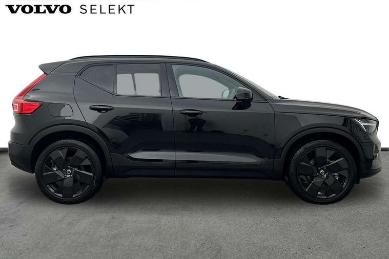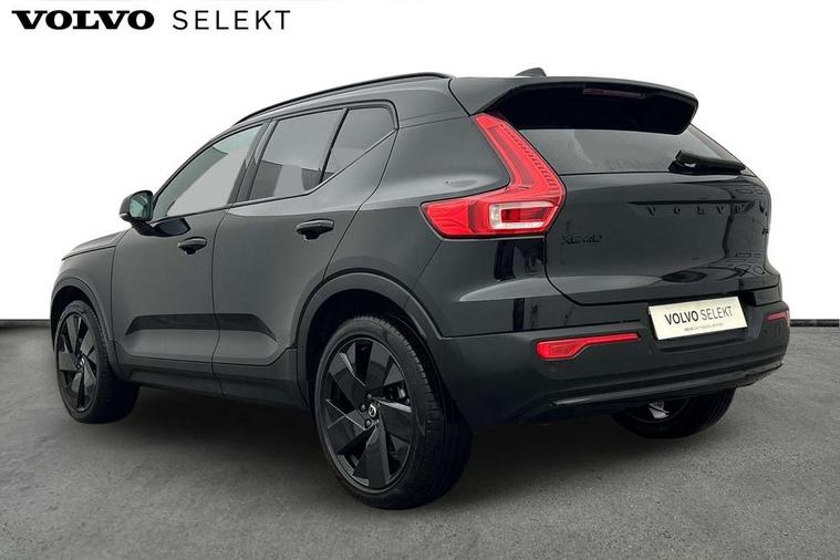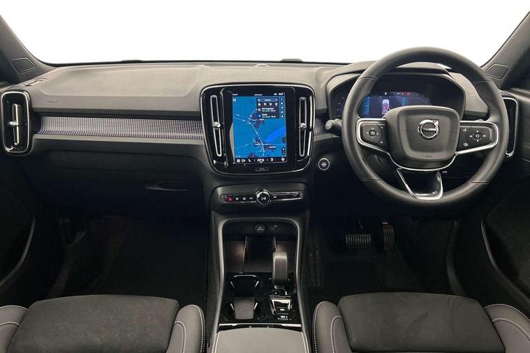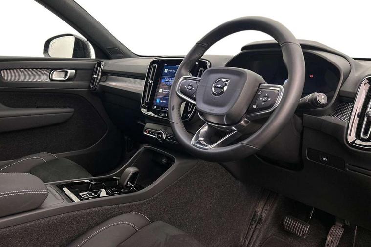 12.3" Progressive Driver Display, 9" centre console portrait touch screen, Adjustable steering wheel force, Android auto (Wired), Apple carplay (wired), Bluetooth handsfree system, Driver alert control, Driver assistance (pilot assist and adaptive cruise control), Driver awareness - Blind spot information system with steer assist, cross traffic alert with autobrake and rear collision warning and mitigation, E-call, Front park assist, Google automotive services - Enabled entertainment apps, navigation with google maps, voice recognition with google assistant, Hands free power tailgate, Intelligent speed assistance, Lane keeping aid, Oncoming Lane Mitigation, Rear park assist, Speed sensitive steering, Volvo cars services with app - Driving journal, emergency and breakdown call, engine remote start, remote door locking/unlocking and vehicle dashboard, Wireless/Inductive Mobile Phone Charging, Automatic transmission with start/stop and manual change functions, Dynamic chassis, DAB Digital radio, Steering wheel mounted remote controls, Adaptive brake lights with high level LED brake lights, Auto dimming feature for exterior door mirrors, Auto dimming interior mirror, Automatic headlamp levelling, Automatic LED Headlights + Active high beam incorporating daytime running lights, Colour coordinated auto folding and heated power door mirrors, Dark tinted windows - rear side windows and rear screen, Front aluminium tread plates, Front and rear electric windows, High gloss black front and rear skid plate, High gloss black front bumper deco, High gloss black front grille strikethrough and ironmark, High gloss black rear model, engine and volvo logo badges, High gloss black window trim, Home safe and approach lighting, Integrated roof rails in high gloss black, LED front fog lights, Puddle lights, Rain sensor with automatic windscreen wiper activation, Rear side wing doors, Rear wiper, Roof antenna, Roof spoiler, Visible VIN plate, 12V socket in front tunnel console and luggage compartment, 2-Zone electronic climate control with CleanZone air quality system and pollen filter, 3 seat bench in 2nd row, 3 Spoke tailored steering wheel with chrome trim, 60/40 versatile split folding rear seat, Centre console cupholders and storage, Charcoal headlining, Connect textile/microtech upholstery, Flexible load floor and grocery bag holder, Floor mats, Front cabin courtesy lights, Front door pocket, front cupholder, ambient front door, rear reading, rear courtesy, instrument panel and tailgate lighting, Front footwell illumination, Front headrests, Front reading lights, Front seat cushion extensions, Front side step illumination (under door), Glovebox bag hook, Heated front seats, Height adjustable passenger seat, Height/reach adjustable steering column, High gloss centre tunnel deco, Illuminated glovebox, Illuminated luggage compartment, Illuminated vanity mirrors + ticket holder, Integrated waste bin, Isofix attachments on outer rear seats, Load cover, Load protection net, Multi directional lumbar support for driver and passenger seat, Power driver seat with memory + exterior mirrors memory, Rear armrest with cupholders, Rear headrests, Single front passenger seat, Underfloor cargo storage, Climate pack without heated front seats - XC40, 3x3 point rear seatbelts, City safety with steering support with Pedestrian + cyclist + front collision warning with full auto brake and rear auto brake, Driver and passenger airbags, Drivers knee airbag, Electronic parking brake with auto hold, First aid kit, Front and outer rear seatbelt reminder and pretensioners, Front seats SIPS airbags, Hill descent control, Hill start assist, Inflatable curtain, Passenger airbag cut-off device, Power child locks on rear doors, Road sign information display, Run off Road Protection, SIPS (Side Impact Protection System), Slippery road and hazard light alert, Stability and Traction Control with Spin control, Engine Drag Control and Corner Traction Control, Tyre pressure monitoring system, Vehicle deceleration control with Anti-lock Brake System, Electronic Brake Distribution and Emergency Brake Assist, Warning triangle, WHIPS whiplash protection system - front, 2 x Key integrated remote control central locking including with deadlocking system and auto open/close windows, Anti-theft alarm including immobiliser/volume sensor + level sensor, Keyless drive includes keyless entry and keyless start, Locking wheel nuts, 20" 5 spoke high gloss black alloy wheels,