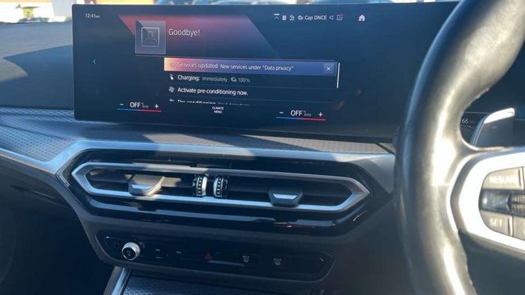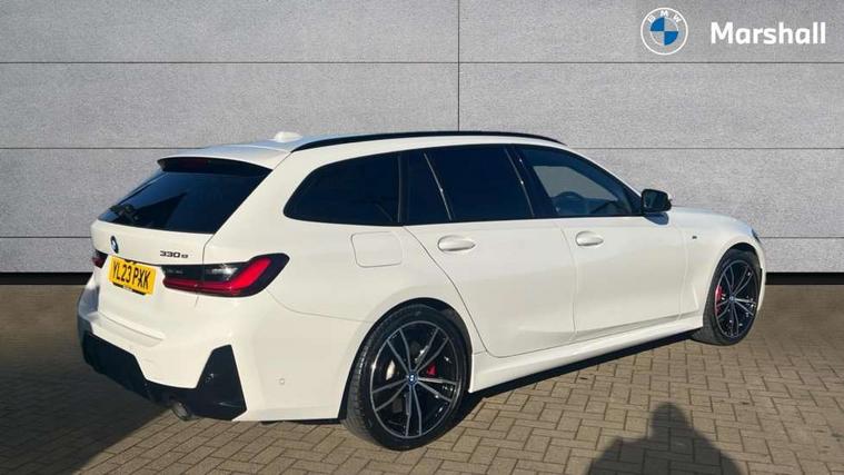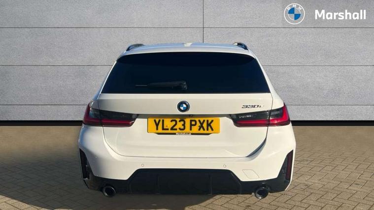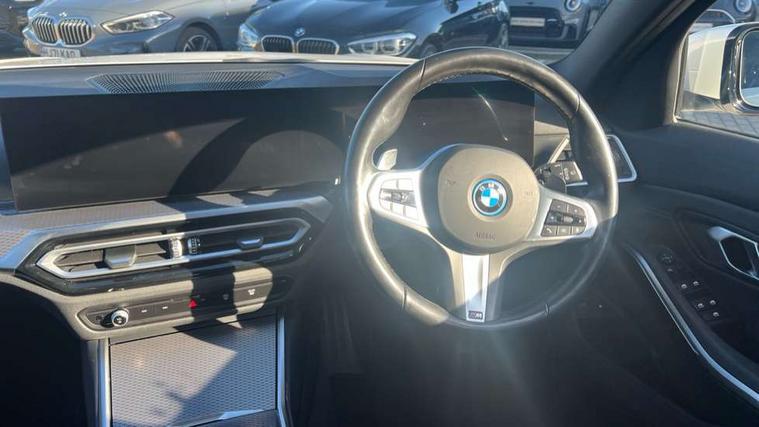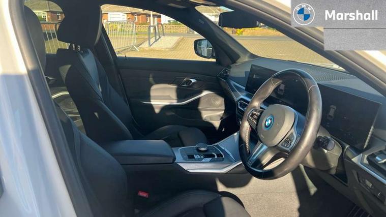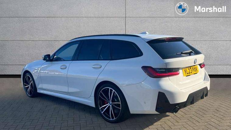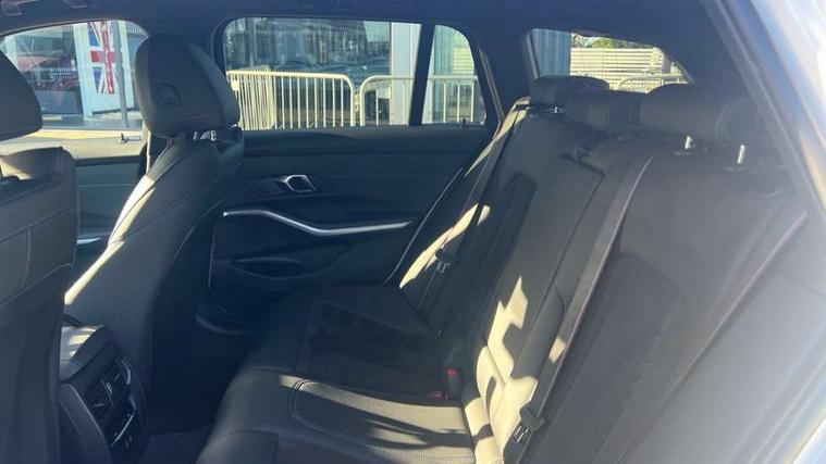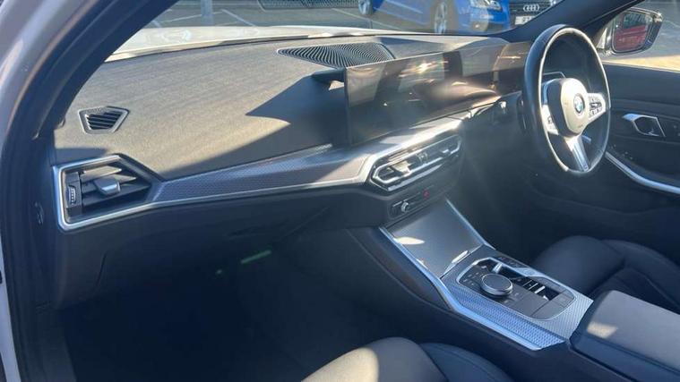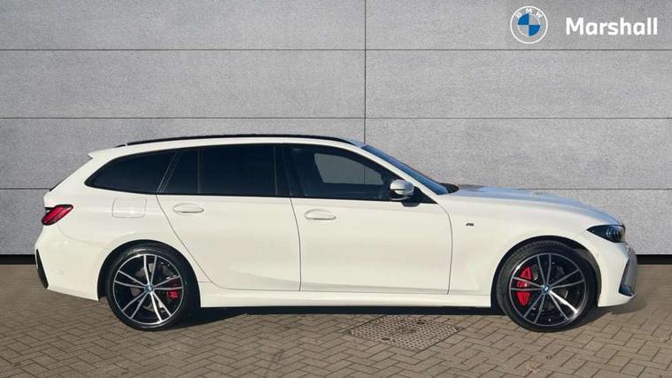 Active guard plus, Attentiveness assist, Automatic Start/stop button, BMW Iconic sounds electric, BMW iDrive, BMW Teleservices, Condition based service, ConnectedDrive Services, Driving experience switch, Live cockpit plus with Navigation + 12.3" instrument display + 14.9" display, Intelligent voice assist, 2 USB, 4G LTE connect, Oil sensor for level and grade, PAS, Preparation for driver assistance, Shifting point display, Variable sport steering, Double joint spring strut front axle, Fast charging cable - Mode 3, Flexible charger (Mode 2), Fuel tank breather system, Sport automatic transmission with steering-wheel mounted gearshift paddles and launch control, Standard suspension, DAB tuner, 3rd brake light, Acoustic glazing, Automatic headlight beam throw control with load dependent regulating reaction, dynamic compensation of braking dive and acceleration squat, BMW emblem, engine compartment lid and tailgate, Body colour roof fin, Door sill strips, Electric windows - front and rear, with open/close fingertip control, anti-trap facility and comfort closing, Follow me home headlight function, Front and rear bumper system with replaceable deformation elements, Front apron plastic in body colour, Fuel filler flap - right rear in body colour, Heated washer jets, High gloss shadow line exterior trim, High gloss shadow line roof rails, Illuminated bow type door handles in body colour drivers side with door lock, Interior rear view electrochromatic mirror with automatic anti dazzle function, LED rear lights, Licence plate panel integrated into front bumper and tailgate, Matt black B-pillar finsher, Matt black window recess cover, Model designation on right side of tailgate, One piece front bumper cover including towing eye cover in body colour, Rain sensor with automatic headlight activation, Rear side wing doors, Rear wiper, Reversing lights, Side frame decorative moulding black matt, Visible exhaust tailpipe finisher, Welcome lights in interior and door handle area, 12V power socket in front storage compartment, 2 front cupholder in centre console with clamping elements and matt black inlay, 3 seat bench in 2nd row, 3 zone automatic air conditioning, 40:20:40 split folding rear seat with loading system, Ambient inside door handle light, Ambient light design projected onto the left and right entering and exiting area, Ambient lighting front and rear with 9 selectable colours, Ambient storage compartment lighting in the centre console, Anthracite headlining, Armrest integrated in front and rear door trim + front centre console armrest, Battery in luggage compartment, BMW ID, Contour lighting in instrument panel and door trim panel, Cruise control operation in steering wheel, Driver backrest width adjustment, Folding rear centre armrest with 2 cupholders, Front and rear ambient footwell lighting, Front and rear door exit lighting (left / right), Front and rear headrests, Front and rear reading lights, Front and rear velour floor mats, Front sport seats, Heated front seats, Height adjustable mechanically and infinitely variable steering column, Illuminated armrest storage compartment, Illuminated glove compartment, Illuminated luggage compartment, Lashing eyelets in luggage compartment, M Sport multifunction leather steering wheel, Make-up mirror lights, Single front passenger seat, Standard seat for driver and passenger with manual adjustment, Sunvisors with vanity mirrors and ticket pocket, Toolkit located in luggage compartment, Connected pack professional - 3 Series Saloon/Touring, Interior and exterior mirror pack - 3 Series Touring/Saloon, M Aerodynamics package - 3 Series Saloon/Touring, M sport exterior styling pack - 3 Series Saloon/Touring, Storage compartment pack - 3 Series Saloon/Touring, 3x3 point rear seatbelts, BMW emergency call, Child locks on rear doors, Crash sensor activating of airbags, Unlocking doors, hazard warning lights, interior light, safety battery terminal, Driver and front passenger with seat occupancy detection for driver's and passenger side, Driver and passenger side airbags, body protection at side and airbags deploy from seat backrests, Dynamic brake control, Dynamic stability control + (DSC+) - Anti-lock Braking System (ABS) with brake assist and cornering brake control + Automatic Stability Control (ASC), Dynamic Traction Control - DTC, Electric parking brake including automatic hold function and automatic release of the parking brake when driving off, Electronic differential lock control (EDLC), Head airbags in 1st and 2nd row, head protection at side, curtain airbags open from headliner above 1st and 2nd row, Plastic fuel tank, Side impact protection, Tyre pressure monitoring with three level warning strategy, Ventilated front and rear disc brakes, Warning triangle and first aid kit, Alarm system, Centre lock switch, Closing system with central locking, Electronic vehicle immobiliser,