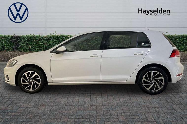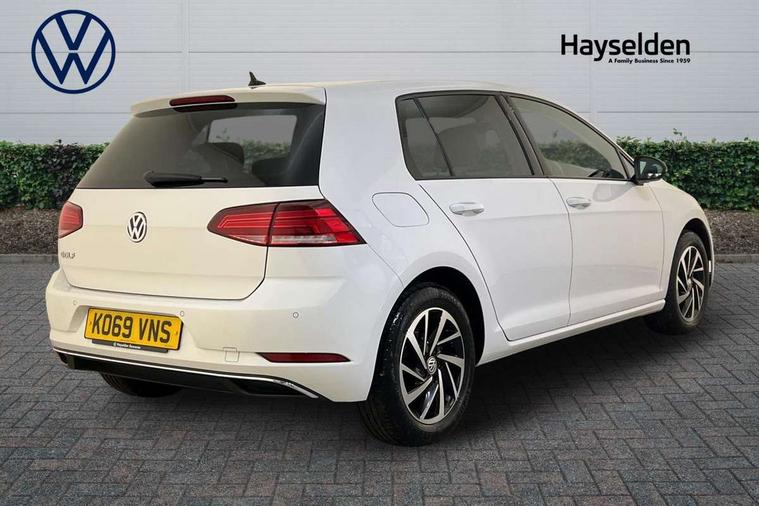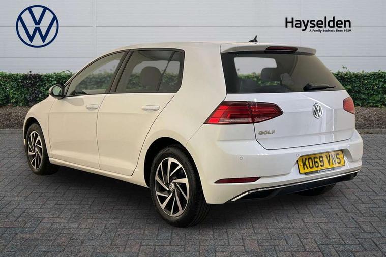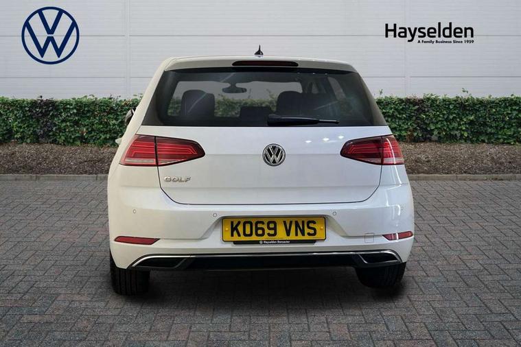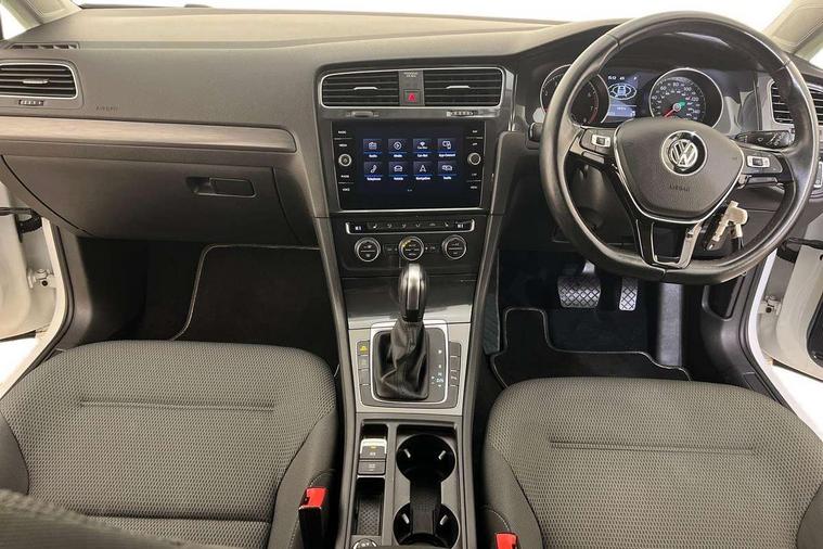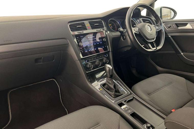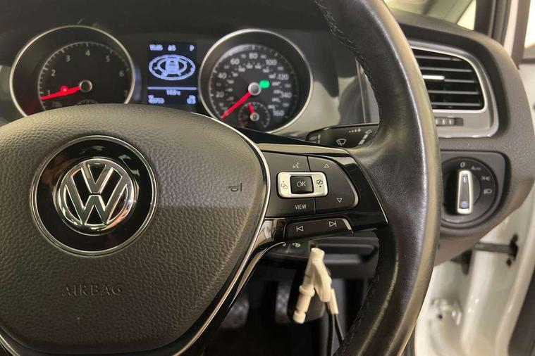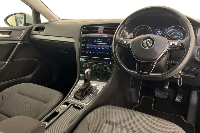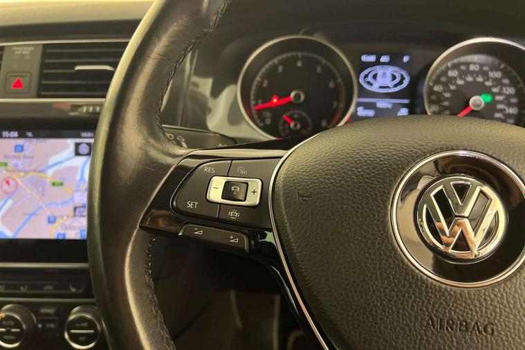 'Lights On' Reminder warning buzzer, ACC - Adaptive cruise control with front assist, forward collision warning, distance monitoring, city emergency brake and speed limiter, Bluetooth telephone and audio connection for compatible devices, Brake pad wear indicator warning light, Driver alert system, Driving Mode Selection with four preset modes - Eco, normal, sport or individual modes, Multifunction computer with visual gear change recommendation for fuel consumption, Power assisted speed sensitive electro-mechanical steering, Push tank flap, Speed limit display, Speedo, rev counter, electronic odometer, trip, service interval display, exterior temperature and fuel gauge, Stop/start system, Think blue trainer driver tips and journey analysis, Warning buzzer and light for front seatbelts unfastened, Battery regeneration during braking, XDS electronic differential lock, Composition media system, DAB Digital radio receiver, Driver Personalisation profile selection, MP3/WMA compatability, Multi device interface (MDI) via USB connection, Premium USB cable in choice of either Apple or Android smartphone compatibility, SMS Functionality, Title and cover art display, USB and SD card connectivity, Volkswagen media control, Black front air intake and radiator grille with chrome insert, Black rear diffuser, Body colour bumpers, Body colour door handles, Body colour door mirrors with integrated indicators, Dusk sensor + automatic driving lights, Electric front windows, Electric rear windows, Electrically adjustable and heated door mirrors, Fully galvanised body, Heated rear windscreen, High level 3rd brake light incorporating LED Technology, LED front fog lights with static cornering light function, Range adjustable headlights via infotainment system with LED daytime running lights, Rear fog lamp, Rear number plate lights incorporating LED technology, Rear tinted glass 65% light absorbing from B pillar backwards, Rear window aerial, Rear window wash/wipe with intermittent wipe, Reflectors in all doors, Tailgate with integrated rear roof spoiler, Windscreen wipers/ intermittent wipe + 4 position delay, 12V socket in luggage compartment, 3 rear headrests, 4 load lashing points in luggage compartment, 60/40 split folding rear seat backrest, Bag hook in luggage compartment x 2, Climate control - 2 zone electronic air conditioning with automatic air recirculation and allergy filter, Cooled glovebox, Cover for storage compartment in centre, Dust/pollen filter, Front and rear reading lights X 2, Front centre armrest with storage compartment and two rear air vents, Front seat back storage pockets, Grab handles front x 2, rear x 2 with integrated coat hooks, Height and reach adjustable steering wheel, Illuminated vanity mirrors, Instrument lighting white adjustable panel illumination, Interior light delay, Isofix preparation for 2 rear child seats, Load through provision with rear centre armrest and cupholders x2, Luggage compartment lighting, Overhead storage box, Pearl grey headlining, Storage box in luggage compartment, Storage compartment in roof console with cover, Storage compartments in centre console, Storage compartments in front doors, Storage compartments in rear doors, Stowable luggage compartment cover, Sun visors, Variable boot floor, height adjustable and removable, Convenience Pack - Golf, Mirror pack - Golf, Winter pack - Golf, 3 rear three point seatbelts, Airbags - Driver's and front passenger's, curtain airbag, Driver's knee, front side impact and passenger's airbag deactivation switch, Anti-lock Braking System (ABS) with Hydraulic Brake Assist (HBA), Automatic post collision braking system, Child locks on rear doors, Driver/Passenger optimised head restraints, Electronic parking brake with auto hold, Electronic stability control (ESC) including Electronic differential lock (EDL) and ASR (Traction control) with deactivation via infotainment system, Front ventilated disc brakes and rear disc brakes, Pre crash preventive occupant protection, Three point height adjustable front seatbelts with tensioners, Tyre pressure loss indicator, Alarm with interior protection and deactivation via infotainment system, Electronic engine immobiliser, Brushed dark silver decorative inserts in dash and door panels, Chrome plated air vent surround, Chrome-plated light switch surround, Polar night black decorative inserts in centre console, Steel space saver spare wheel,