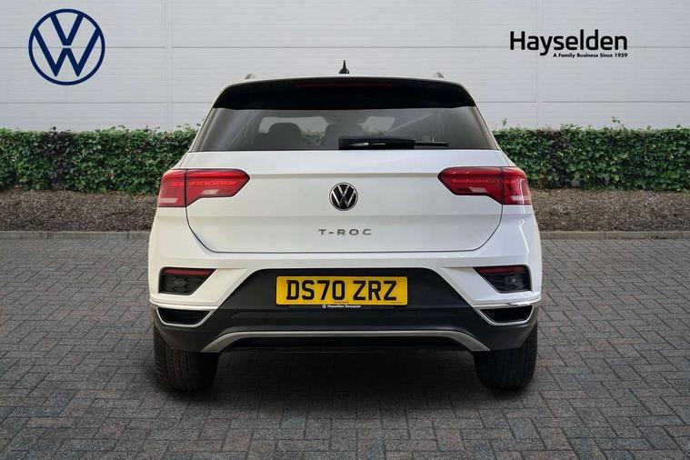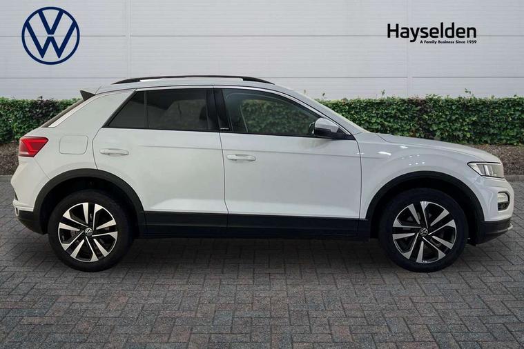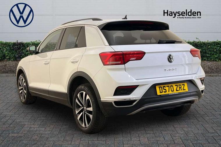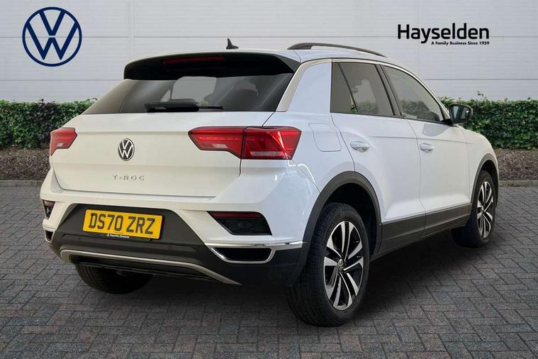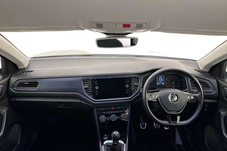 App-Connect, 'Lights On' Reminder warning buzzer, Adaptive cruise control with front assist, radar sensor controlled distance monitoring, city emergency braking, Automatic start/stop system, Bluetooth telephone and audio connection for compatible devices, Car information display, Driver tips and journey analysis, Dusk sensor, Emergency call service, Lane assist with warning text instrument cluster, Modified key software - reduce switch off time for key status change to Long no motion, Multifunction computer with visual gear change recommendation for fuel consumption, Power assisted speed sensitive steering, Ready 2 Discover system with 8" display including streaming and internet, Service interval indicator, Think blue trainer driver tips and journey analysis, Ultrasonic front and rear optical and audible parking sensors, Voice activation, Warning sound and light for doors and tailgate open, Warning sound and light for front seatbelts unfastened, Wireless app connect for apple carPlay, Battery regeneration during braking, 4 X 20 watt output, Centre arm rest including USB type C interface and USB charging socket, DAB Digital radio, Diversity antenna for FM reception, Front and rear 6 speakers, Front USB type C Interface 2X and USB charging socket, Multi device interface (MDI) with USB connection, Music playback - MP3, WMA and AAC files, Premium USB cable in choice of either Apple or Android smartphone compatibility, SD card slot, Simultaneous pairing of 2 compatible mobile devices, Single CD player, glovebox mounted, SMS functionality - read, compose and send SMS messages using touch-screen display, Title and cover art display, Auto dimming interior rear view mirror, Automatic hazard lights activation under emergency braking, Black grained lower door protectors, Black grained wheel arches, Black roof rails, Body colour door handles, Body coloured bumpers, Body coloured door mirrors with integrated indicators, Chrome plated radiator grille inserts, air vent surrounds and light switch surrounds, Darkened 65% privacy glass in side and rear window, Electrically foldable, adjustable and heated door mirrors with puddle lights and reverse activated kerb-view adjustment on passenger's door mirror, Front and rear electric windows, Front fog lights with static cornering function, Front windscreen wiper with intermittent wipe and 4 position delay, Fully galvanised body, Halogen headlights, range adjustable via infotainment system with automatic headlight activation and separate LED daytime running lights, Heated rear window, High level 3rd brake light, LED rear number plate lights, Manual coming/automatic leaving home lighting function, Rain sensor, Rear wash/wipe with intermittent wipe setting, United badge on B-pillar, United logo projection, Volkswagen roundel, 12V socket in centre console storage area, 3 rear head restraints, 4 load lashing points in luggage compartment, Brushed stainless steel pedals, Climate control - 2 zone electronic air conditioning with automatic air recirculation and allergy filter, Drawer under drivers seat, Front + rear carpet mats, Front centre armrest with storage compartment, longitudinal and height adjustable and two rear air vents, Front comfort seats with manual height adjustment, Front cupholders x 2, Front seat back storage pockets, Glovebox, Height adjustable front seats, Height/reach adjust steering wheel, Illuminated vanity mirrors, Instrument lighting, white adjustable panel illumination, Isofix easy fit child seat preparation for 2 outer rear seats, LED interior light with switch off delay/dimmer and 2 front/rear LED reading lights, Load through provision with single cup holder when folded down, Luggage compartment cover, removable, Luggage compartment lighting, Split folding rear seat backrests with centre armrest, Storage compartment in left and right luggage area, Storage compartment in rear doors, Storage compartments in driver and front passenger doors, Three spoke multi-function leather trimmed steering wheel and gearknob, United cuzo cloth upholstery, United door sills, White ambient lighting, Winter pack - T-Roc, 3 rear three point seatbelts, ABS, Curtain airbags, Driver and front passenger safety-optimised head restraints, Drivers and front passengers airbags with passengers deactivation switch, Drivers seatbelt reminder, Electronic parking brake with auto hold, Electronic stability control (ESC) includes ASR, EDL, EDTC and trailer stabilisation function, Front seat side impact airbags, Predictive pedestrian protection, Rigid safety cell with front and rear crumple zones, Three point height adjust front seatbelts + pretensioners, Tyre pressure loss indicator, Ventilated front and rear disc brakes, Volkswagen roadside assistance, Alarm with remote central locking and interior protection, Electronic engine immobiliser, Remote central locking with 2 remote folding keys, Remote tailgate unlocking using key fob, Altantic blue united decorative inserts, 17" Dublin alloy wheels in black high sheen finish with anti theft wheel bolts, Tyre mobility set,