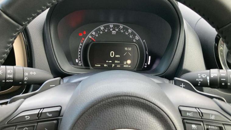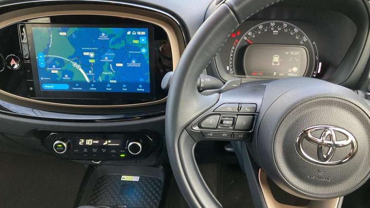 4.2" TFT colour screen, Adjustable speed limiter, Analogue speedometer, Bluetooth connectivity, Digital tachograph, Driver attention alert system, eCall emergency call system, ECO-driving indicator, Electric power steering, Front and rear parking sensors with auto brake, Intersection turn assist, Key reminder warning, Noise reduction kit, Pre collision system with emergency steering assist, Remote boot door release on key, Reversing camera with static guide lines, Smart entry and push button start, Speed limit display, Start and stop, Wireless charger, Wireless Smartphone Integration includes Apple CarPlay and Android auto, Vehicle Stability Control (VSC), 4 speakers, 9" HD multimedia display touch screen with Toyota smart connect, DAB digital audio broadcast, USB connector, Auto headlights, Auto wipers, Automatic headlights cut-off, Automatic high beam On/Off switch, Bicycle towing hook, Black fog light surrounds, Black side protection mouldings, Black wheel arch mouldings, Body colour door handles, Body coloured front bumper, Boot door scuff plate, Eclipse black rear bumper, Electric heated door mirrors, Follow me home headlights, Front and rear underruns in silver, Front fog lights, Front power windows, Gloss black door mirrors, Gloss black upper front grille, Headlight cut-off reminder, LED daytime running lights guide, LED front light guide, LED High mounted stop lamp, LED projector headlights, Manual day/night rear view mirror, Manual headlight levelling, Pagoda roof, Power adjustable door mirrors, Privacy glass, Rain sensor, Rear combination lights LED bulb type, Rear side wing doors, Rear windscreen defogger, Rear windscreen wiper, Remote hazard lights system, Short antenna, Variable intermittent windscreen wipers, 12v power outlet - front, 2 seat bench in 2nd row, 3 spoke leather steering wheel, 50/50 split folding rear seat, Adhesive roof headlining, Adjustable speed limiter switch on steering wheel, Audio and telephone switches on steering wheel, Auto air conditioning, Black roof lining, Body colour satin anodised insert on steering wheel, Boot light, Centre room light, Chrome interior door handles, Chrome surround on air conditioning buttons, Clean air filter, Floor mats, Front and rear cup holders, Front head rest deco art, Front head restraints, Gear shift indicator, Height adjustable driver seat, Intelligent adaptive cruise control switch on steering wheel, ISOFIX child restraint system on rear seats, Lane departure alert switch on steering wheel, Leather gearshift knob, Light blue ambient lighting in centre console, Manual tilt steering wheel, Manually reclining and sliding driver seat, Manually reclining and sliding front passenger seat, Multimedia switches on steering wheel, Paddle shift levers on steering wheel, Partial synthetic leather upholstery, Pollen filter, Rear door pockets, Rear head restraints, Remote air-conditioning system, Satin silver insert on gear shift knob, Single compartment glovebox with lights, Single front passenger seat, Soft tonneau cover, Sun visors with mirror on driver and passenger side, Voice recognition switch on steering wheel, Toyota safety sense pack - Aygo X, Anti lock braking system + Electronic brake force distribution, Child safety door lock, Emergency brake light signal (EBS), Hill start assist control (HAC), Passenger airbag on/off switch, Seat belt reminder for front and rear seats, Supplement restraints system (SRS) - 6 airbags, Traction control, Tyre pressure warning system, Immobiliser, Remote power door locks, Black wheel centre caps, Tyre repair kit,